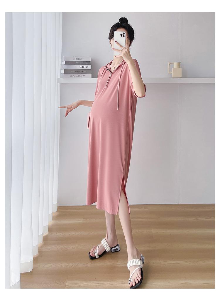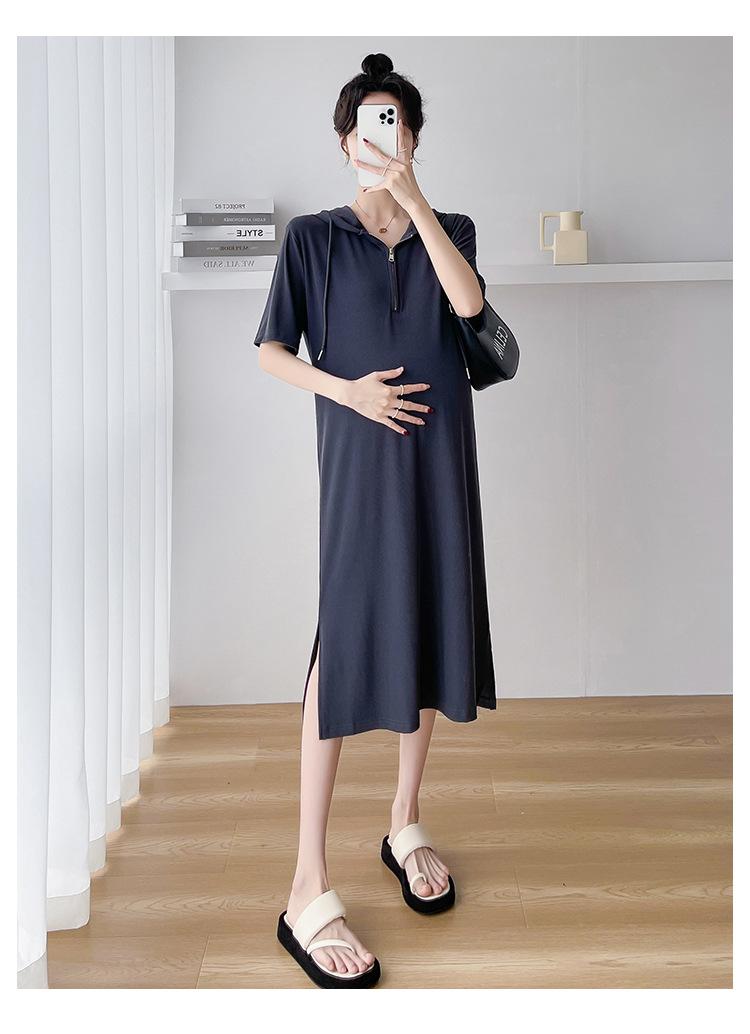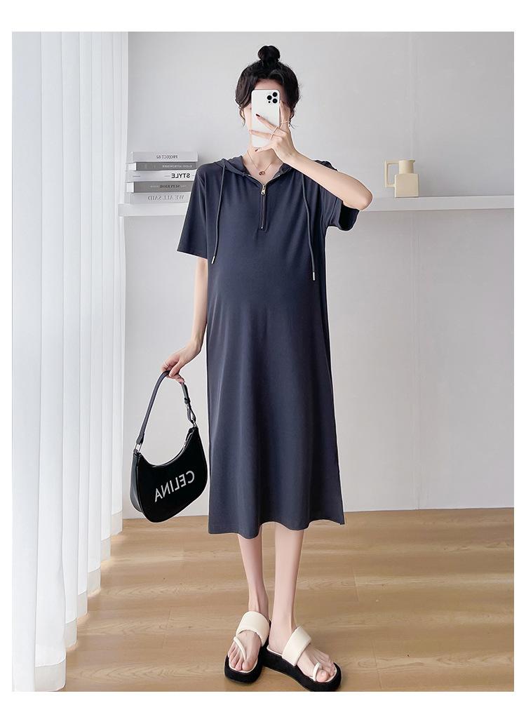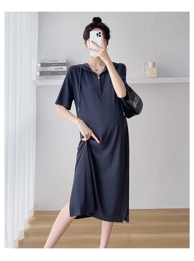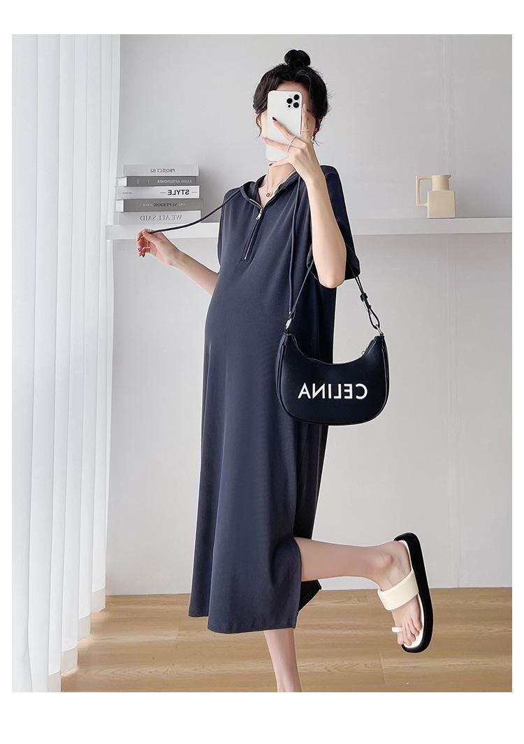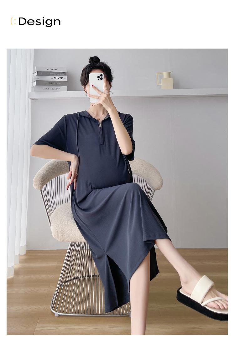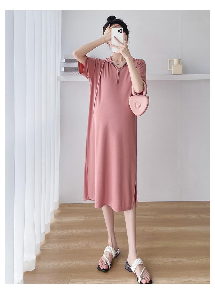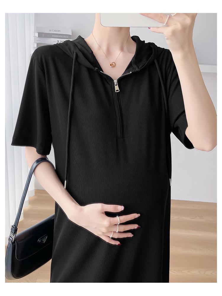 Ropa de maternidad verano nuevo estilo coreano temperamento a la moda largo medio cremallera de lactancia vestido para mujeres embarazadas