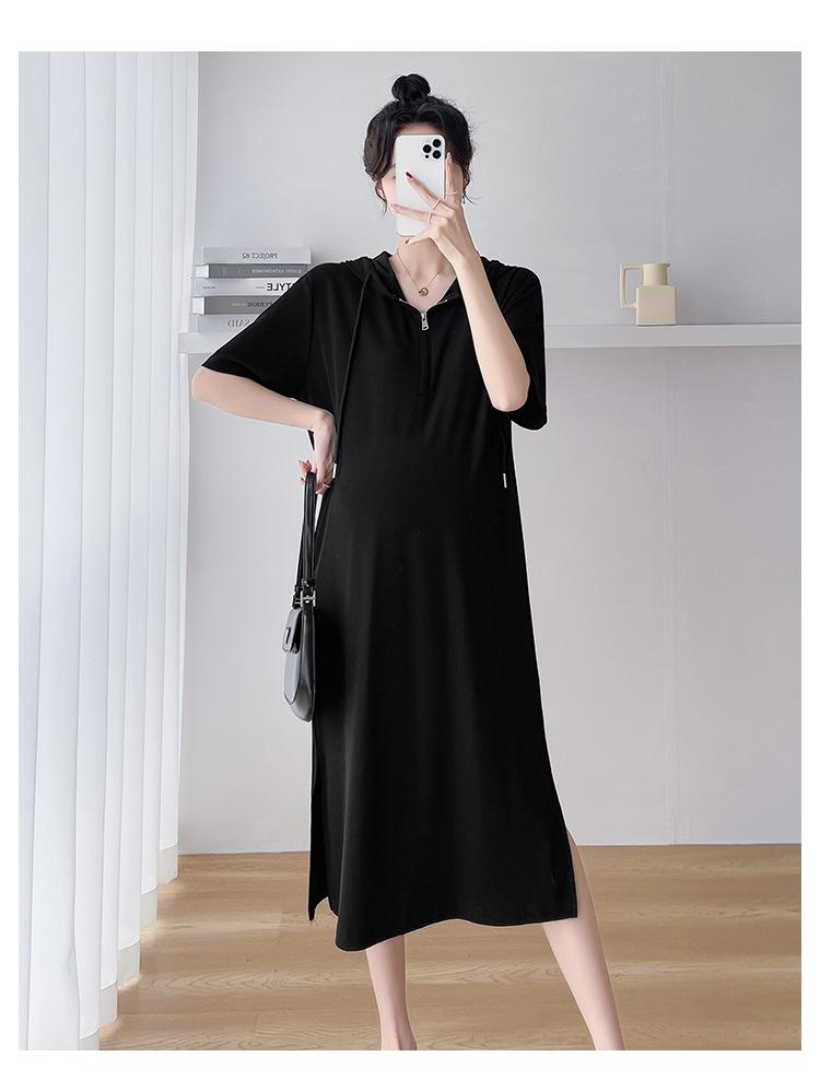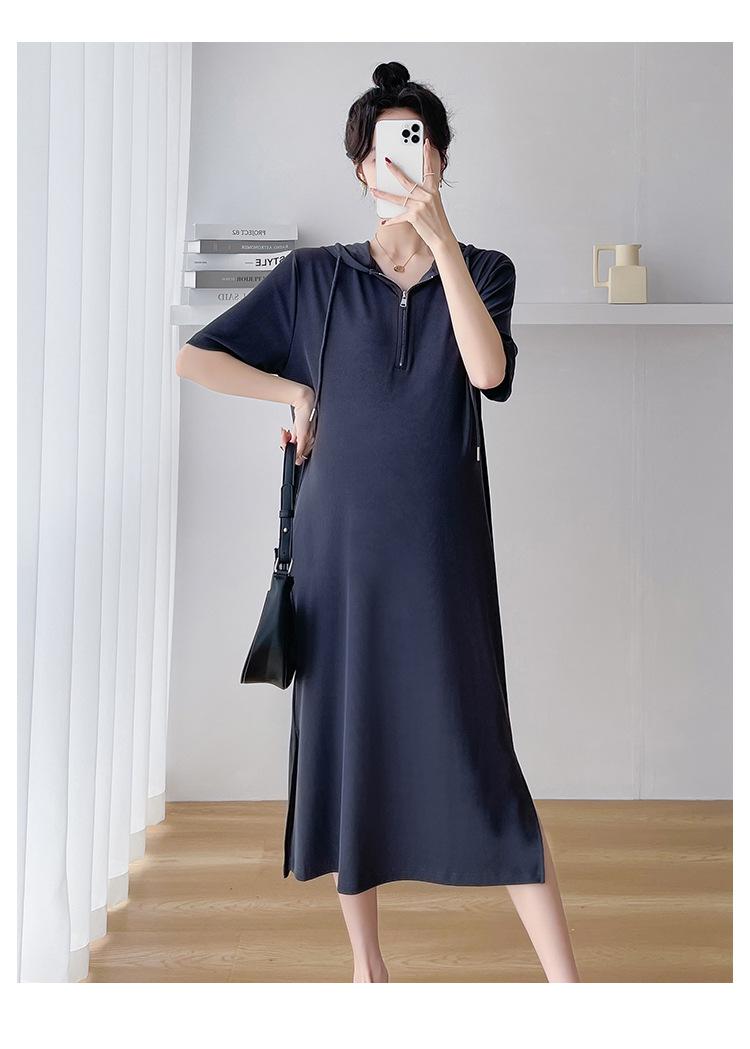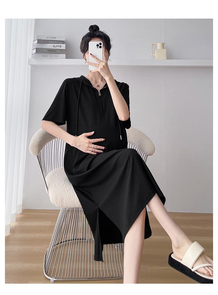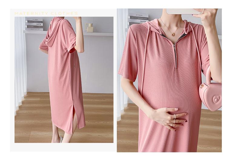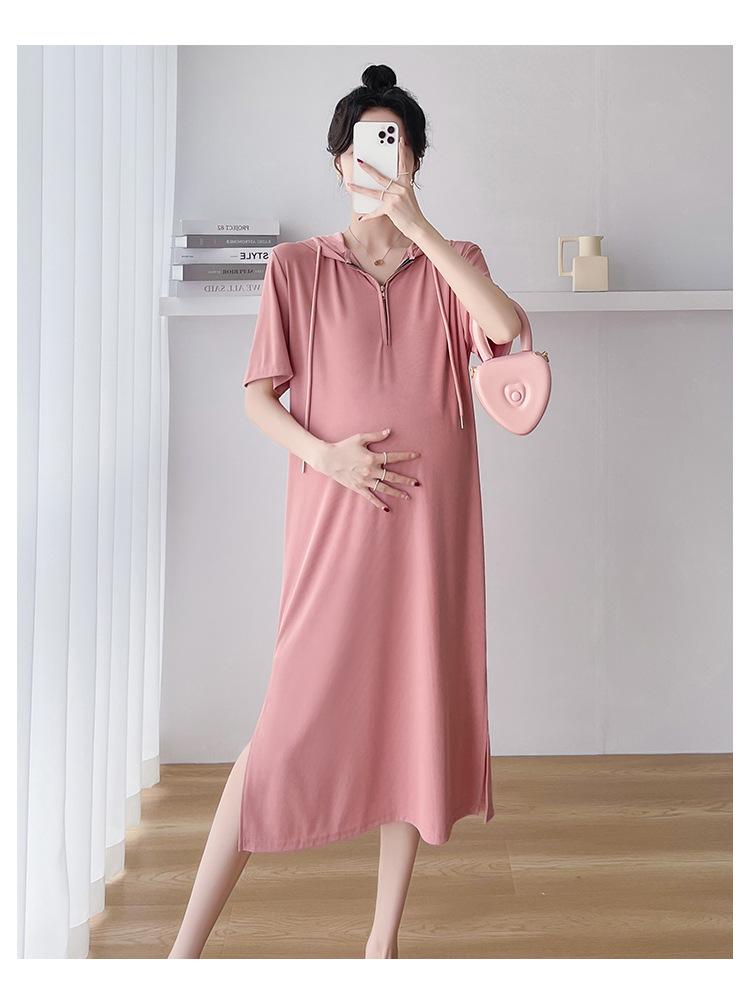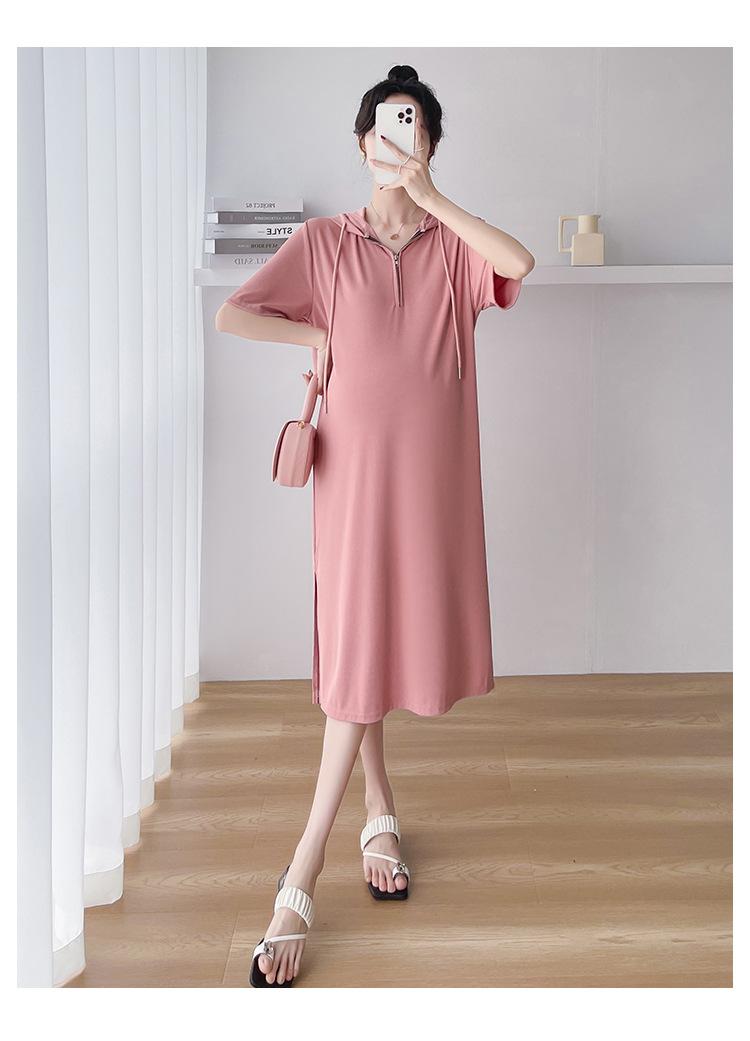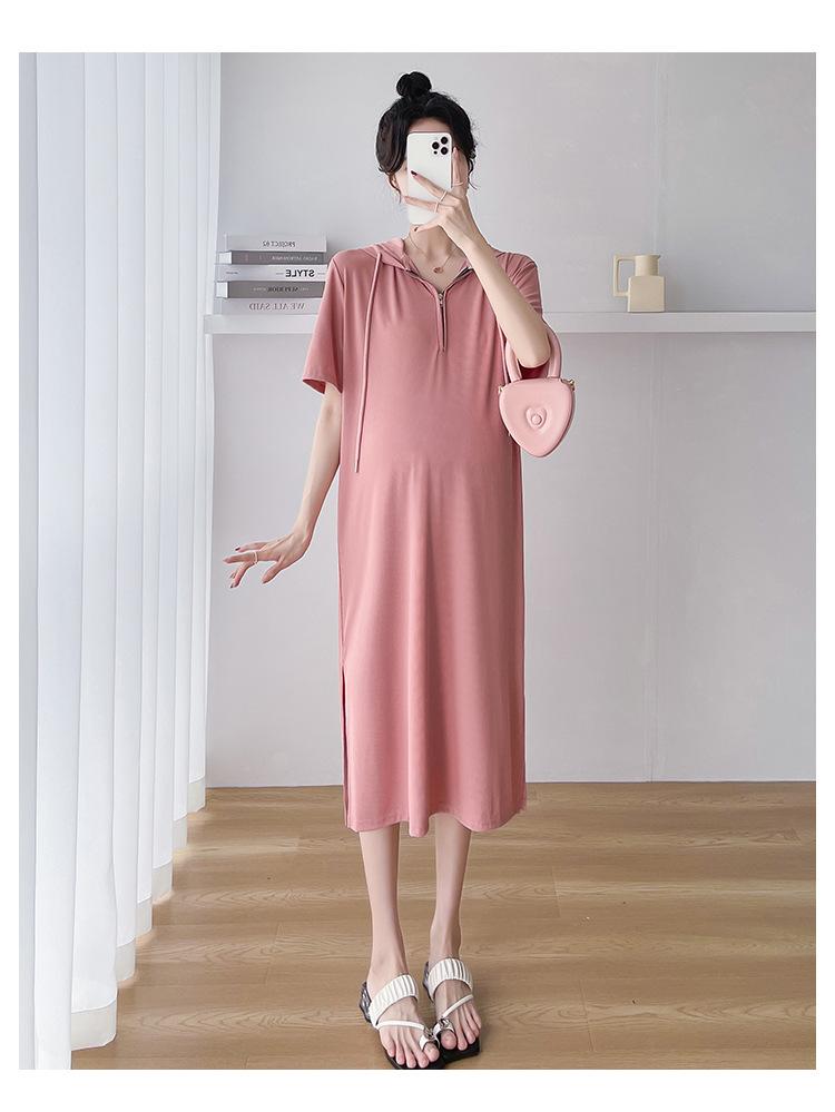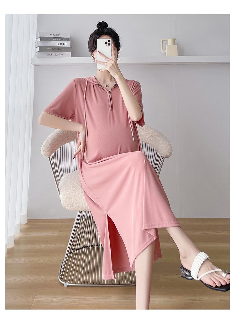 Ropa de maternidad verano nuevo estilo coreano temperamento a la moda largo medio cremallera de lactancia vestido para mujeres embarazadas
