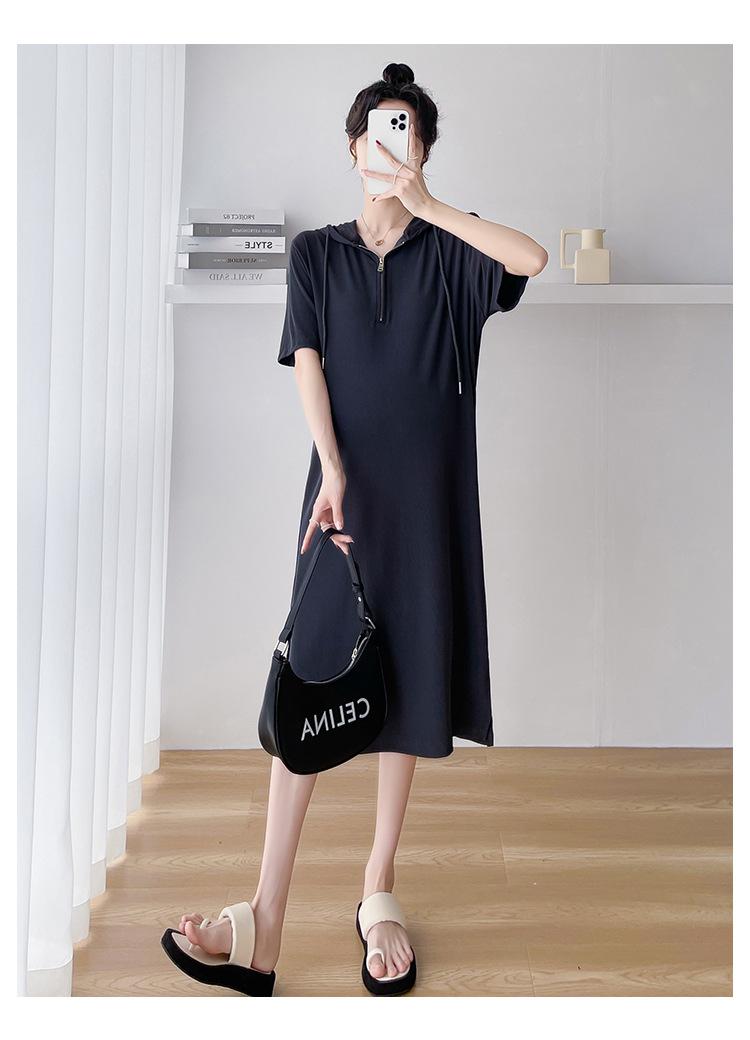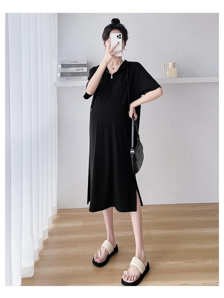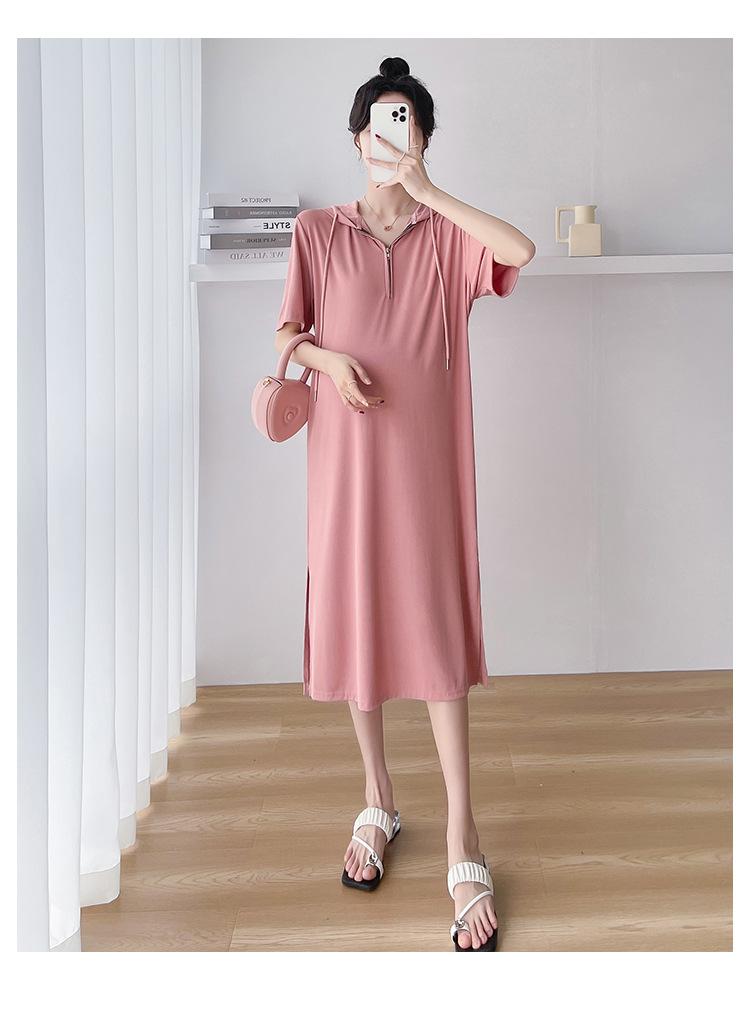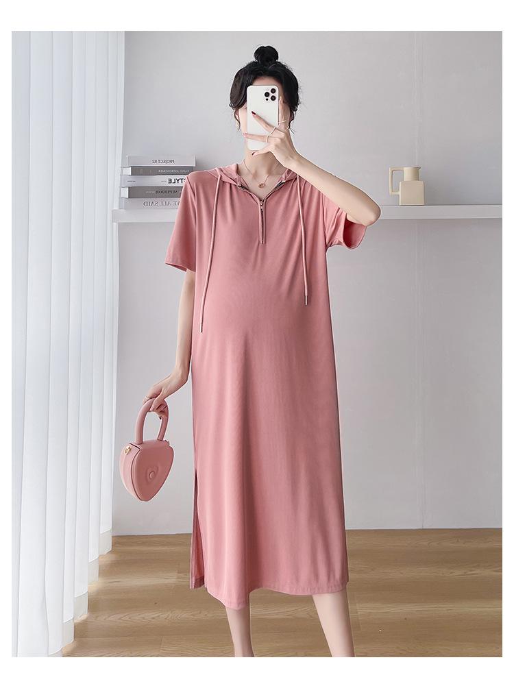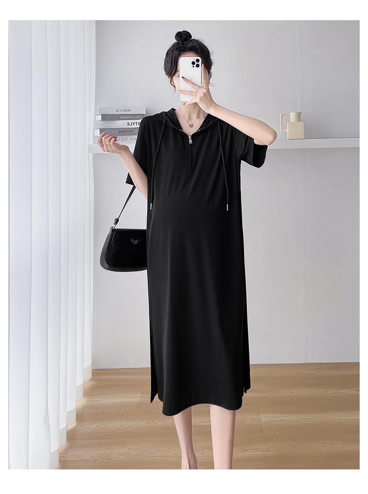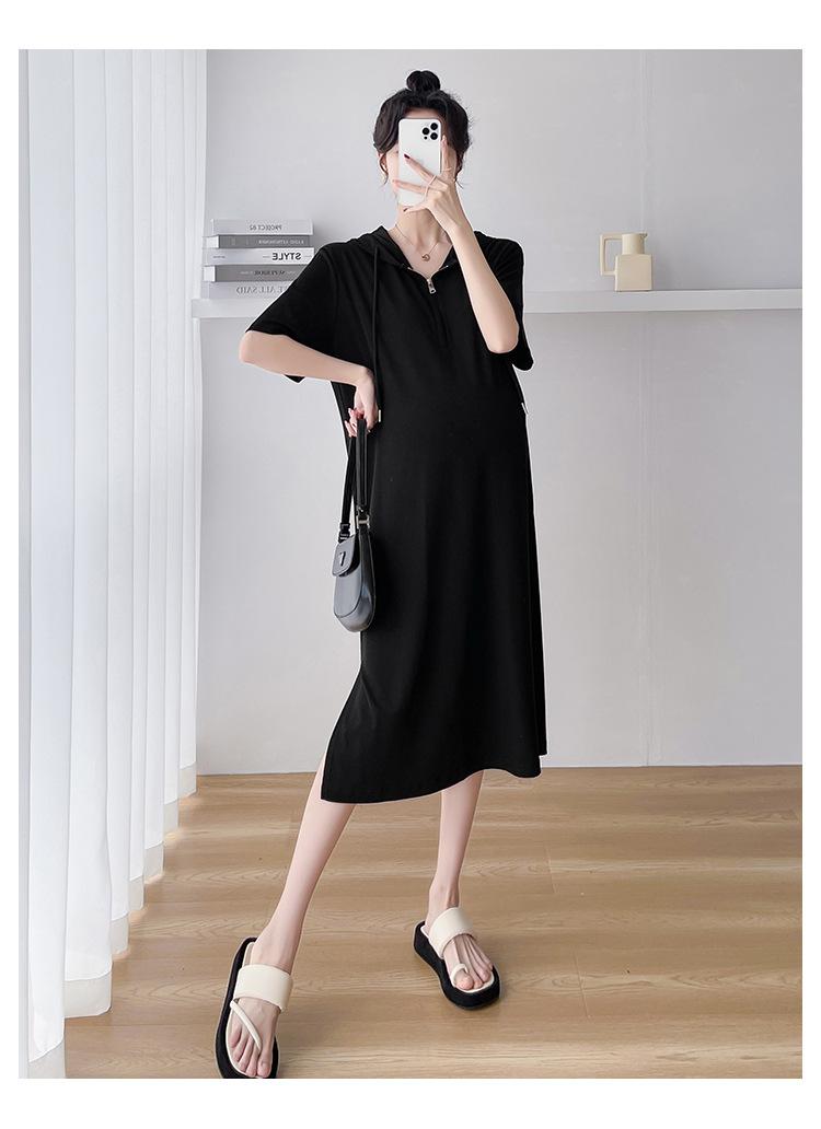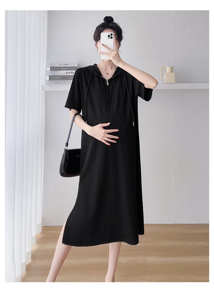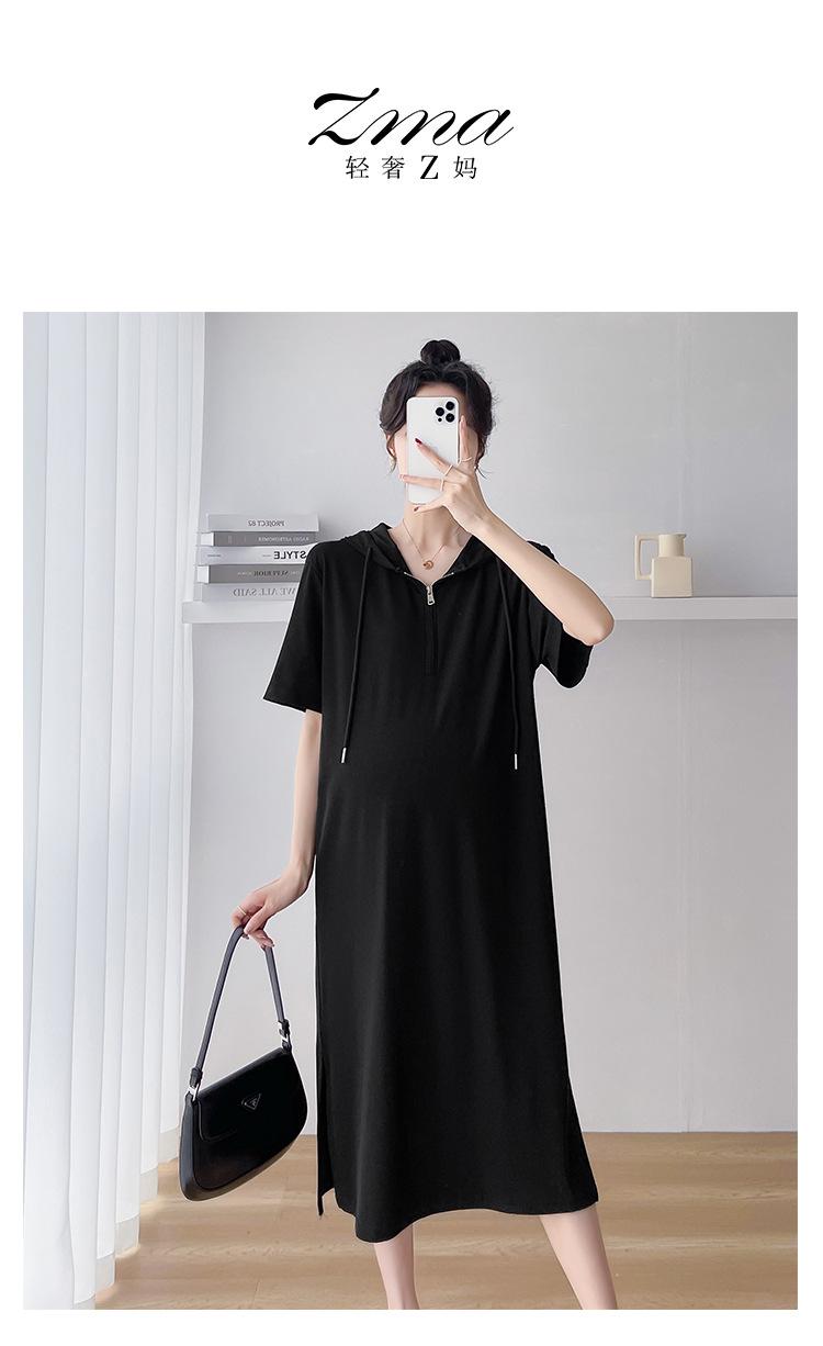 Ropa de maternidad verano nuevo estilo coreano temperamento a la moda largo medio cremallera de lactancia vestido para mujeres embarazadas