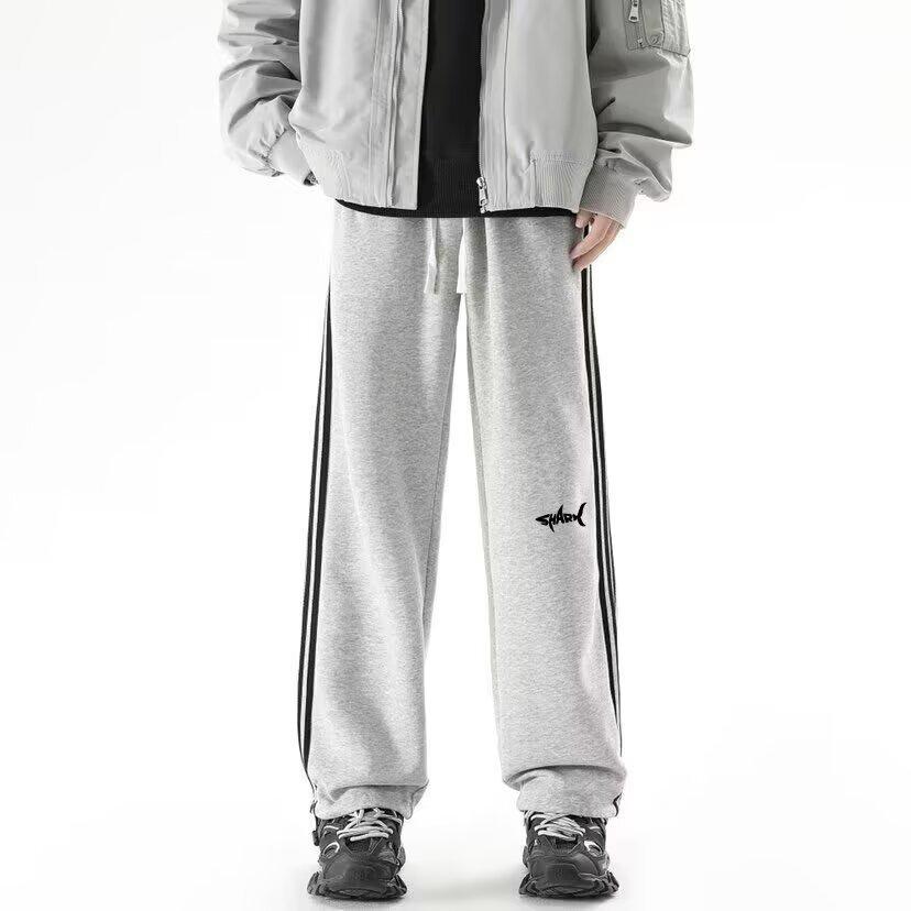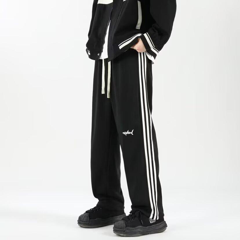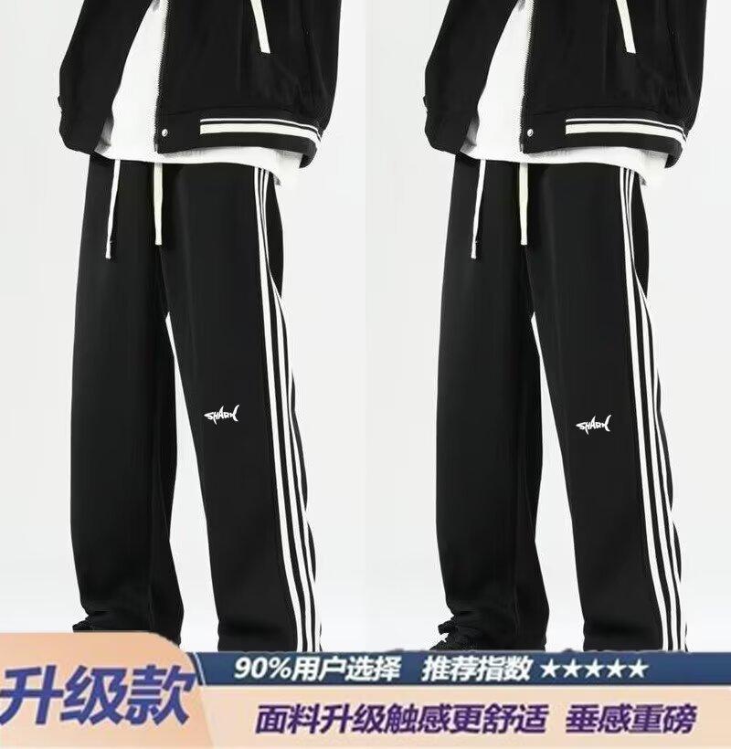 Pantalones Patchwork de Marca Trendy de Jazz de Danza Callejera Americana para Mujer Otoño Nuevo Cintura Alta Tres Rayas Casual Pierna Ancha Pantalones de Chándal Tendencia