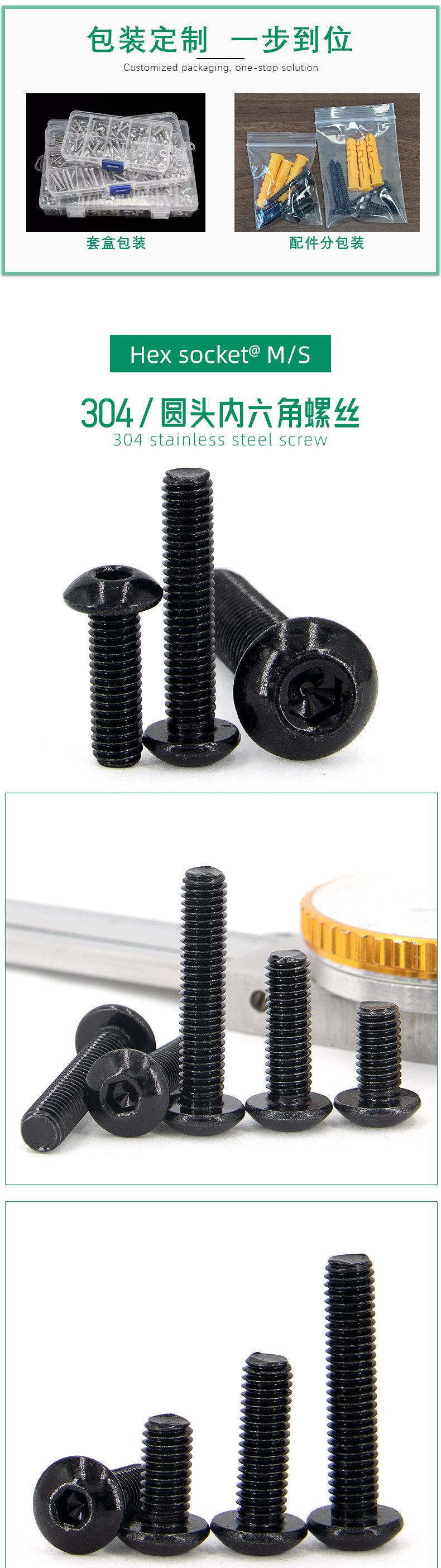 Tornillos de Máquina de Acero Inoxidable 304 Zinc Negro Cabeza Redonda Hexágono Interior Iso7380 Tornillos de Vaso Redondo Hexágono Interior M2-M10