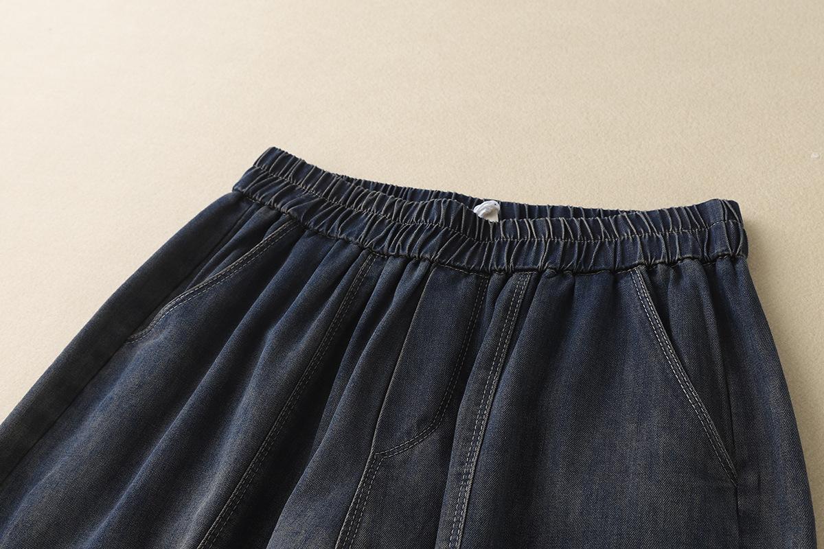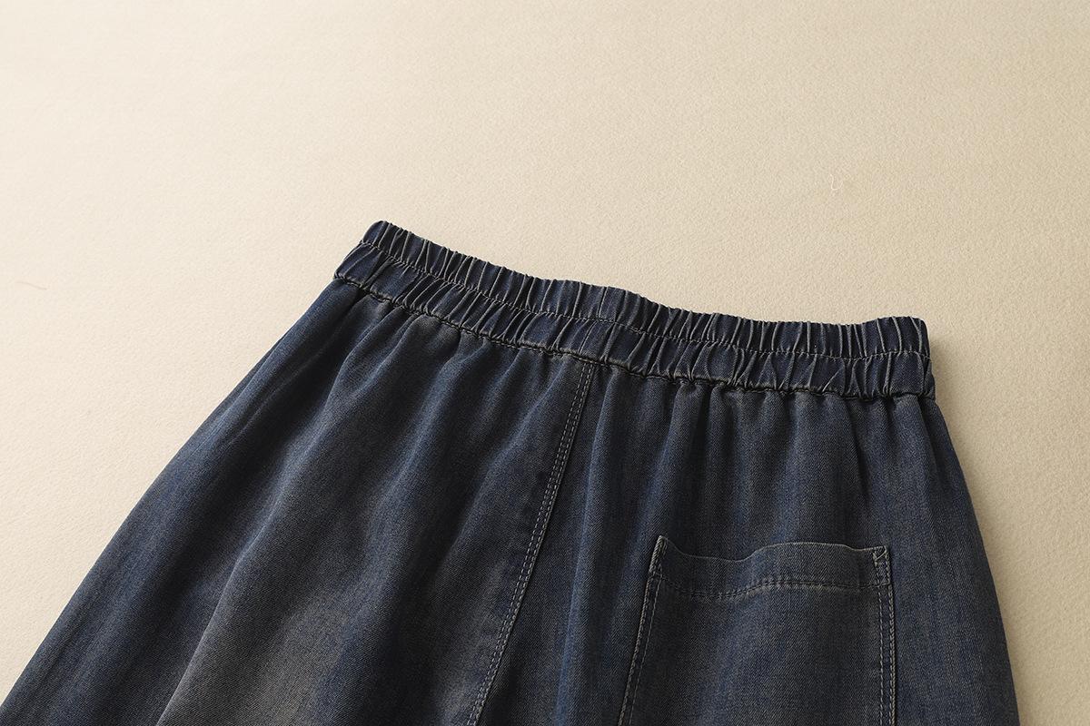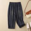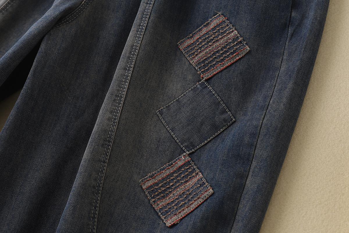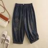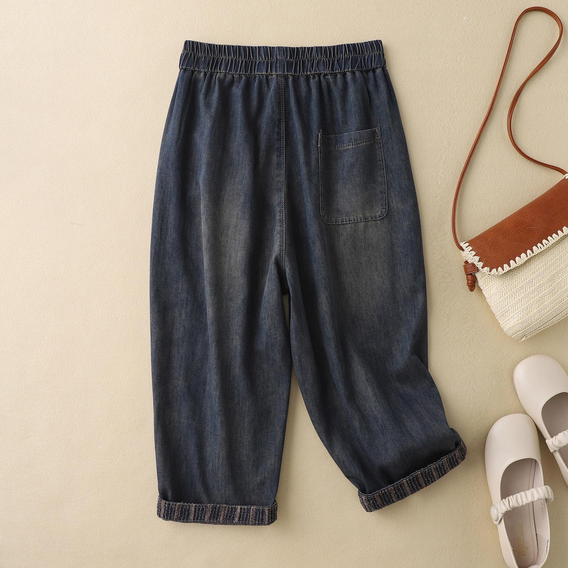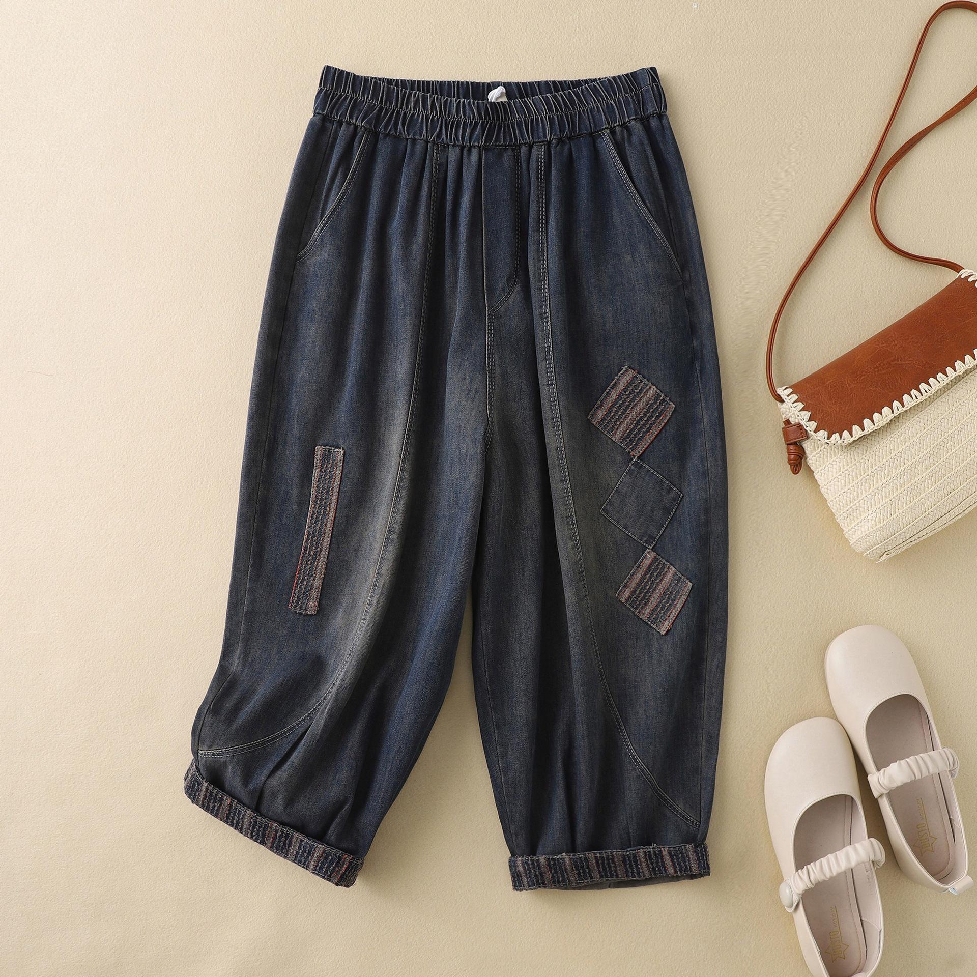 Jeans Patchwork de Moda para Mujer 2025 Verano Nuevo Talla Grande Retro Cintura Elástica Sueltos Harem Zanahoria Pantalones Recortados