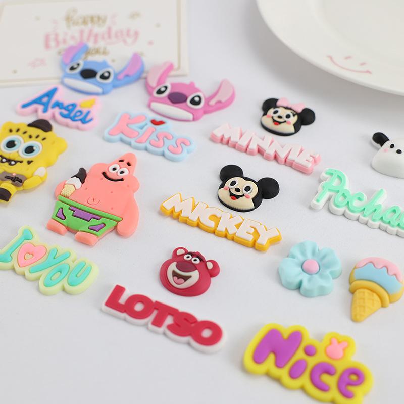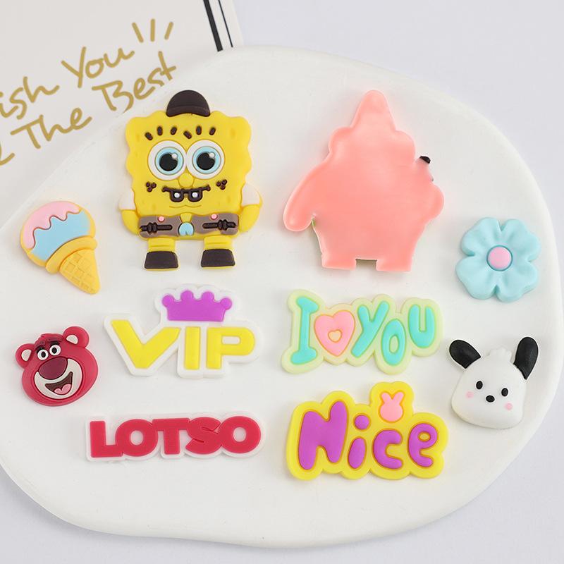Soft glue: small fang spongebob 4.4x3.4cm, Soft glue: small cone pie big star 4.3x3.7cm, Soft glue: small blue...