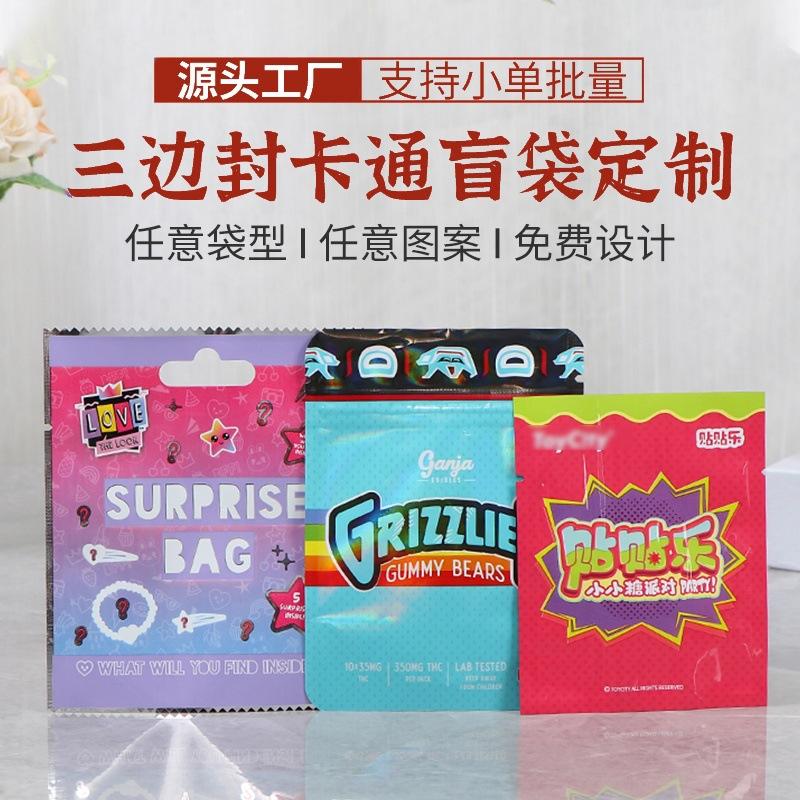 Bolsa Ciega de Dibujos Animados Bolsa Autosellante Bolsa de Embalaje de Juguete Personalizada Colgante de Pegatina Bolsa Ciega Tarjeta Bolsa de Embalaje Sellado por Tres Lados de Papel de Aluminio