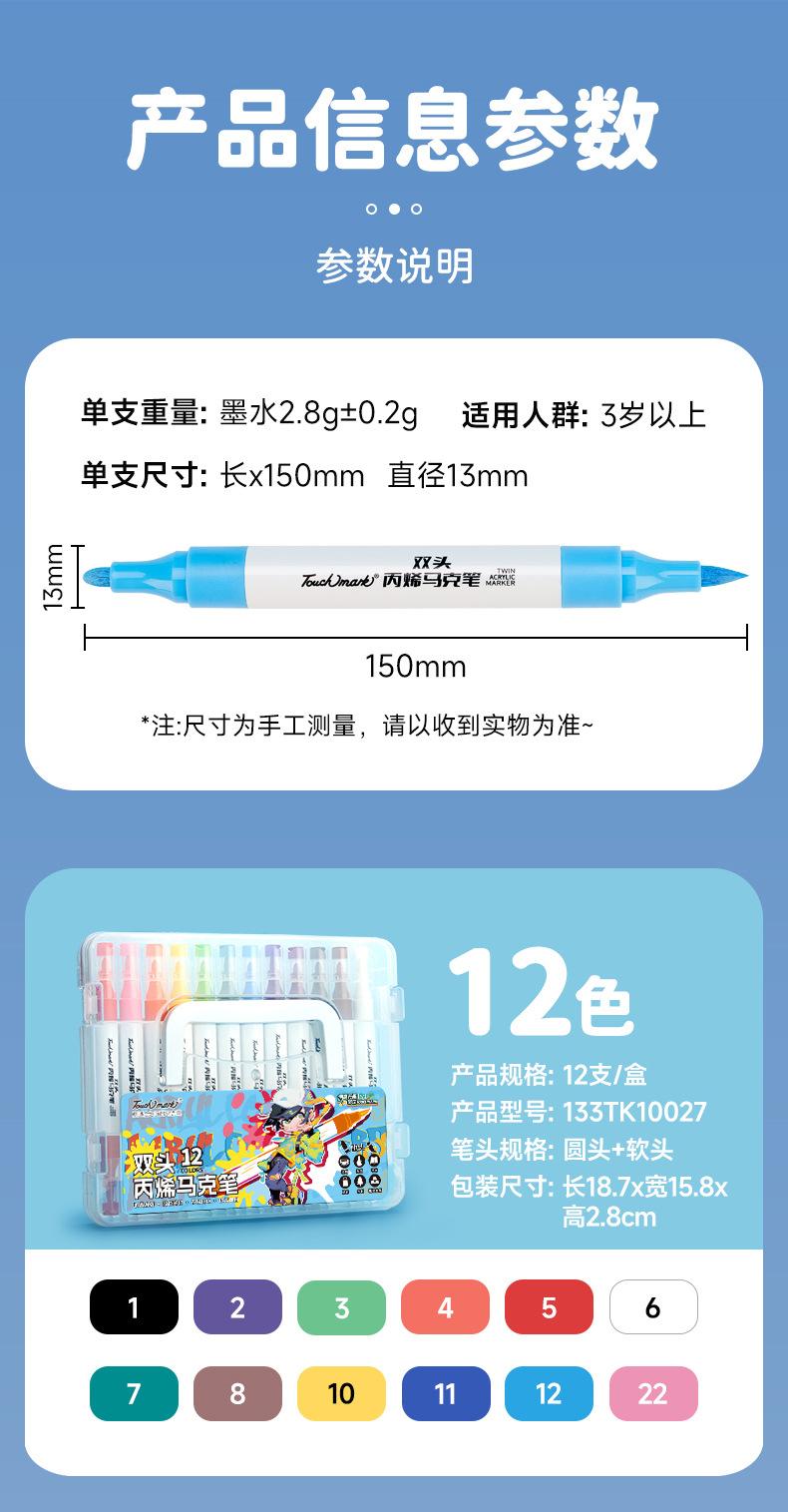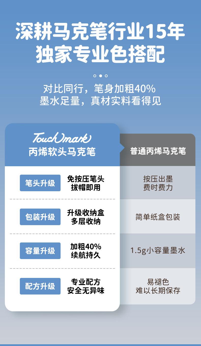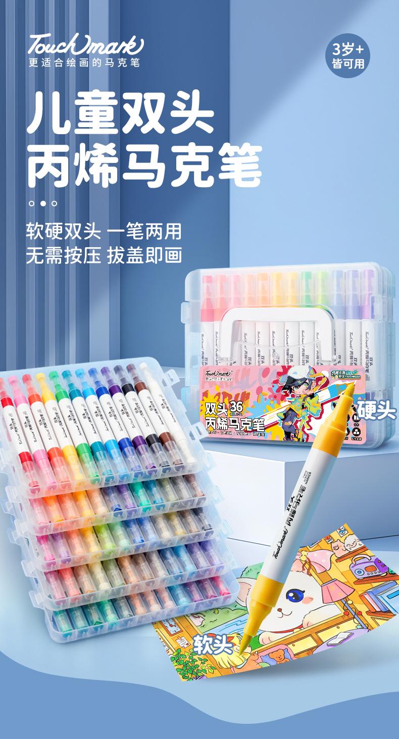 Marcador acrílico de doble punta suave y dura touchmark para estudiante, punta suave, bolígrafo acrílico, opaco, lavable, bolígrafo de pintura