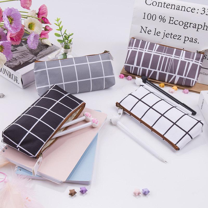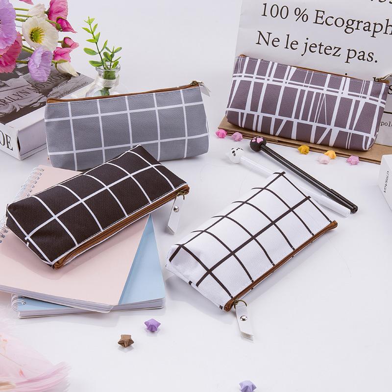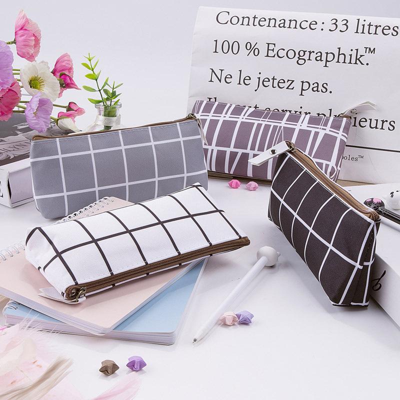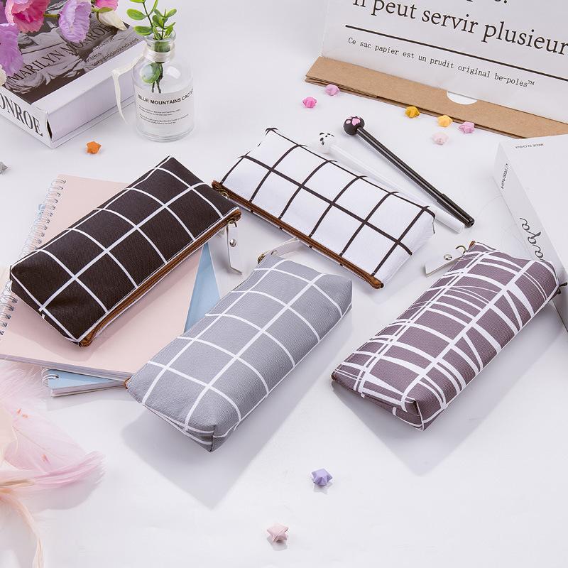 Estuche de lona a rayas pequeño y fresco de papelería de aprendizaje de nuevo estilo, simple, creativo, para estudiantes, hombres y mujeres, caja de papelería al por mayor, personalizado