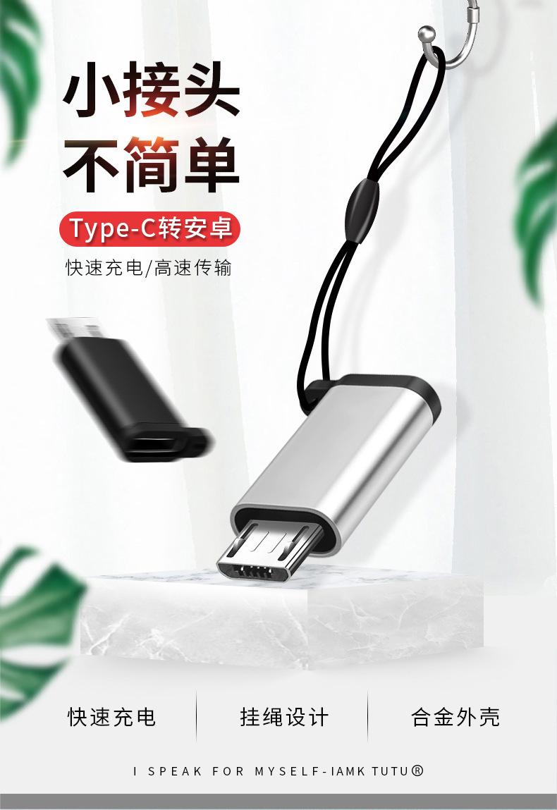 Tipo-c a Micro carga rápida datos con adaptador de deducción Android TYPEC adaptador para teléfono móvil aleación de aluminio