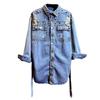 Estación europea 2023 primavera y otoño camisa casual estilo coreano para mujer estilo Hong Kong camisa de cintura ajustada remache rasgado abrigo de mezclilla moda