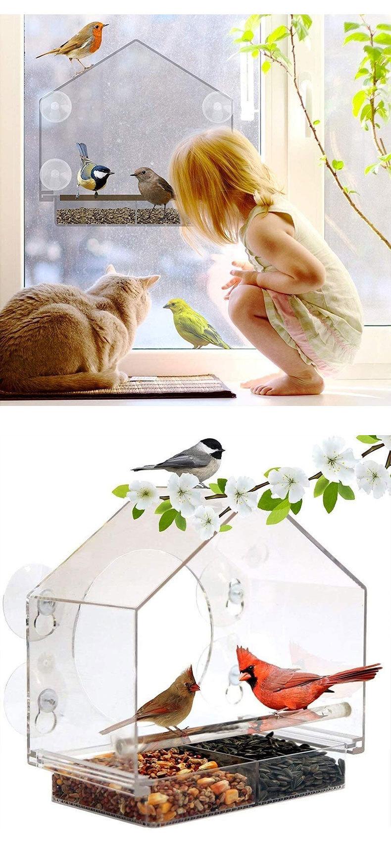 Jaula Acrílica para Pájaros Loro Comedero Transfronterizo para Pájaros Comedero para Pájaros Pequeños Jaula Transparente para Pájaros Montada en la Pared Jaula Villa para Pájaros