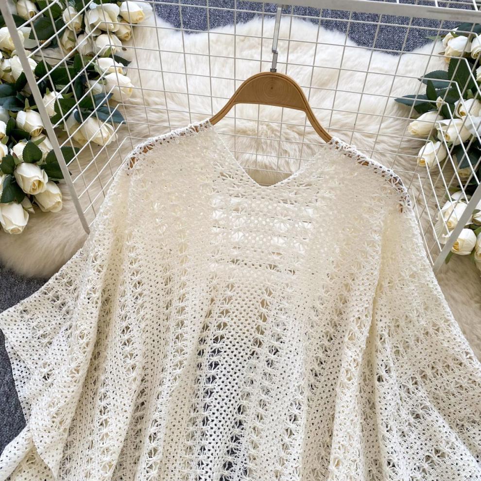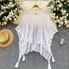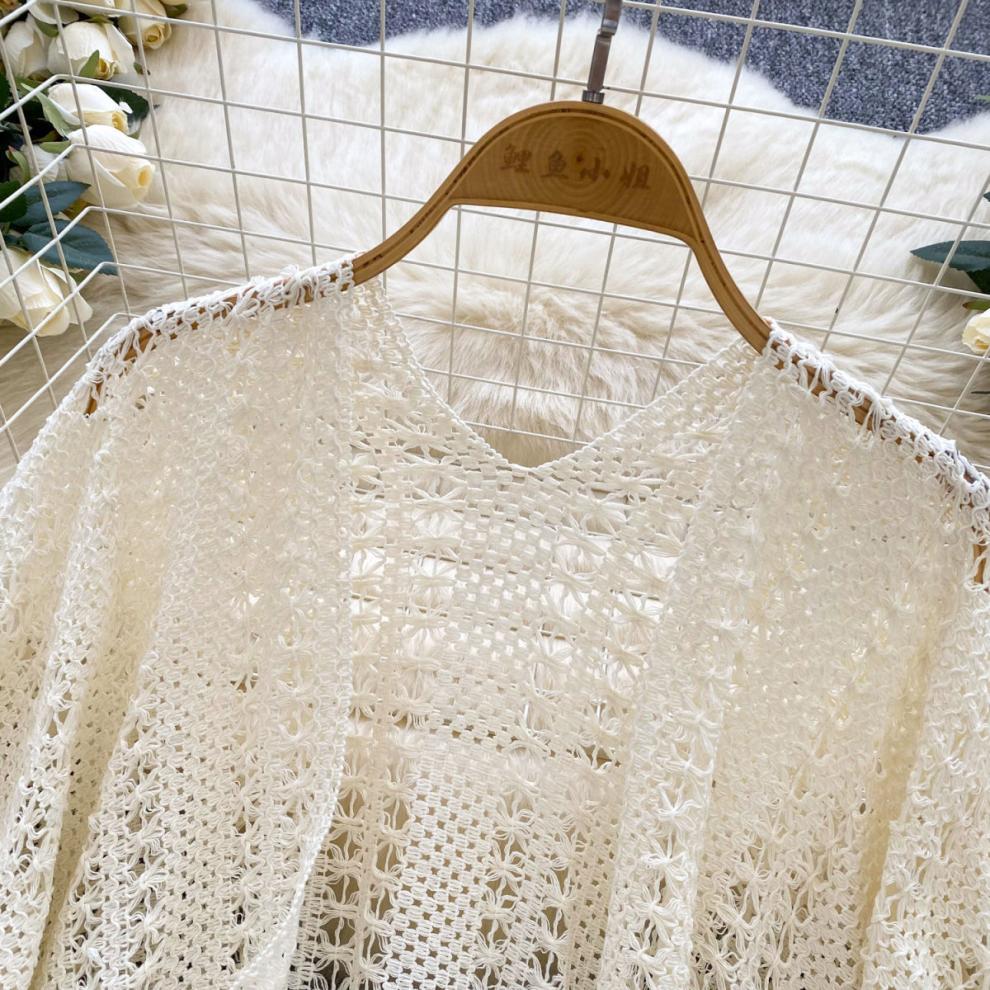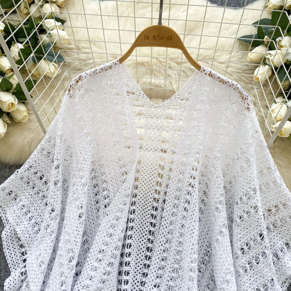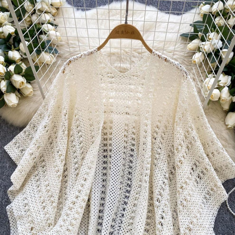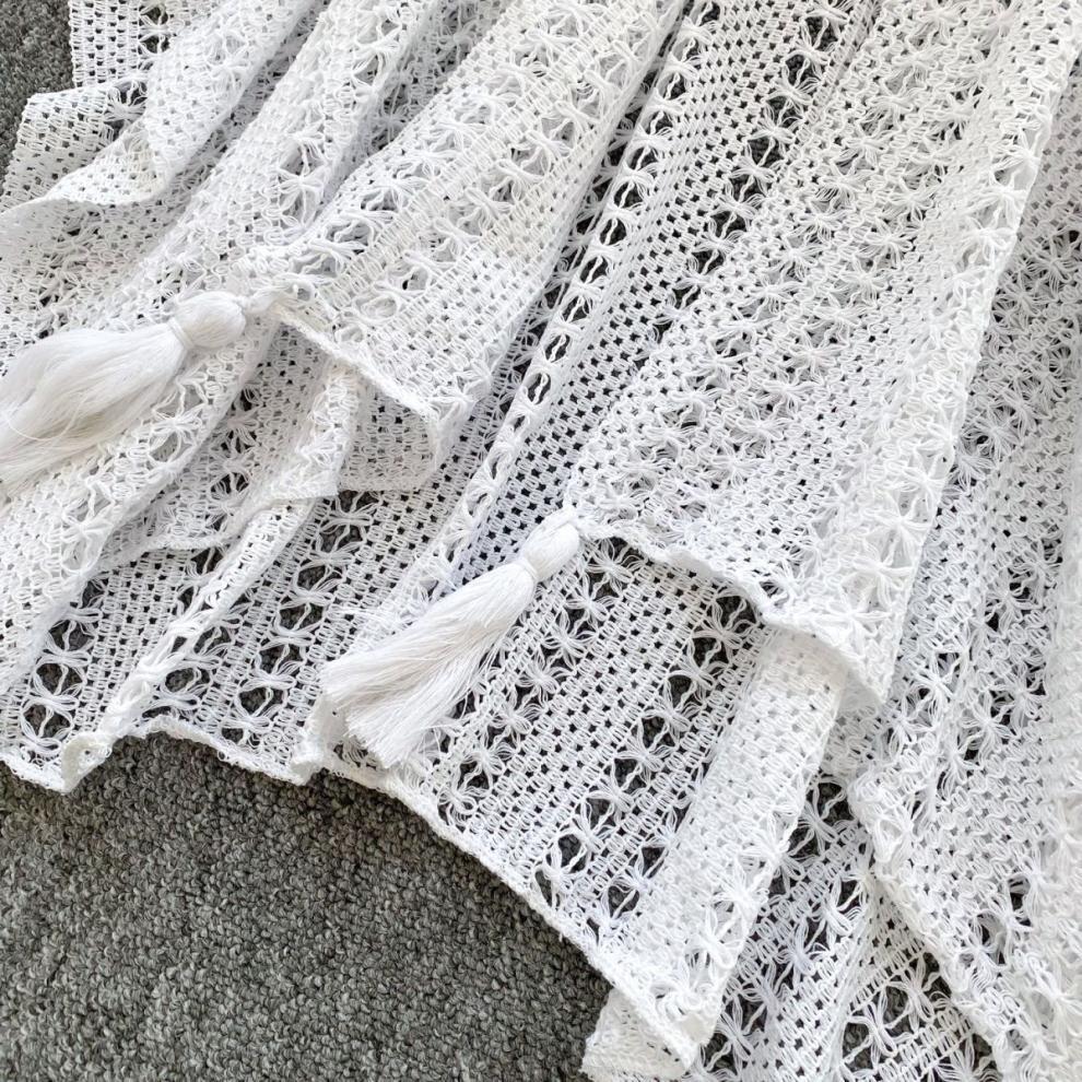 Dulce Abrigo Chal Tejido Mujer Verano Viaje Vacaciones Retro Suelto Irregular Calado Borla Cárdigan