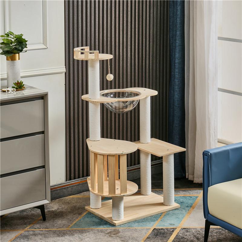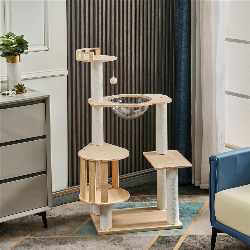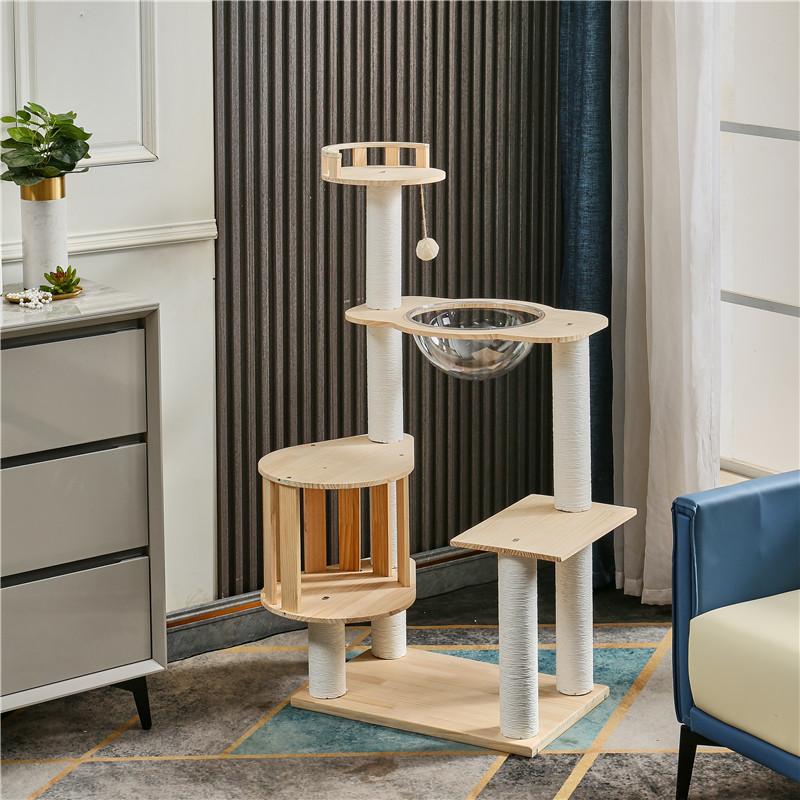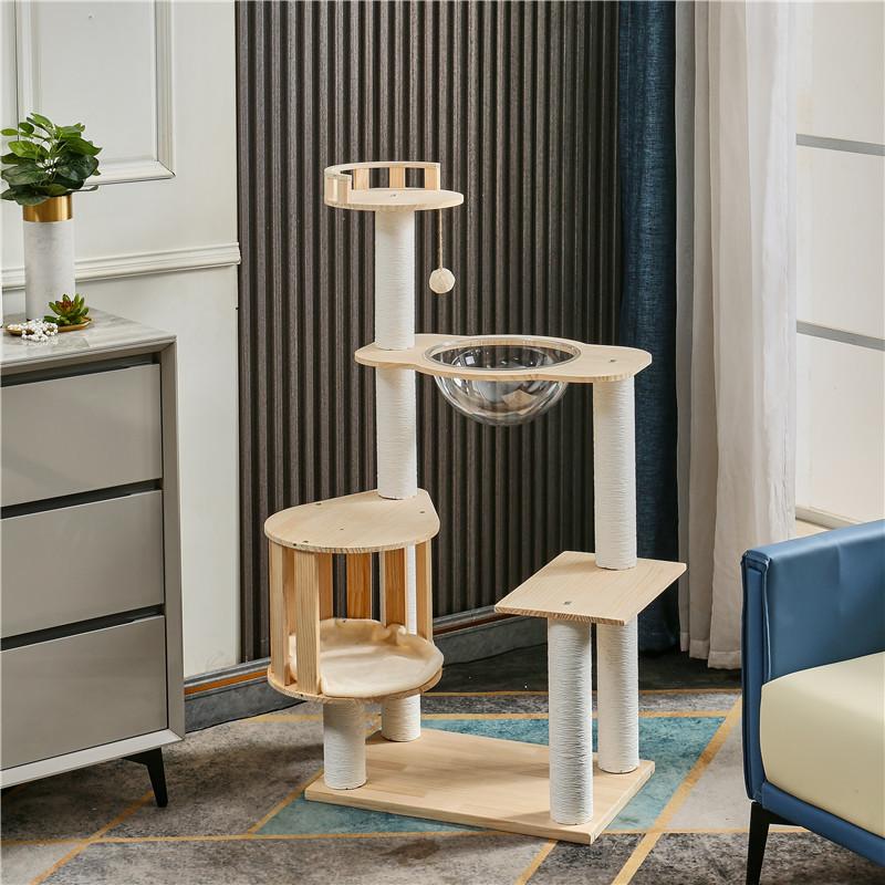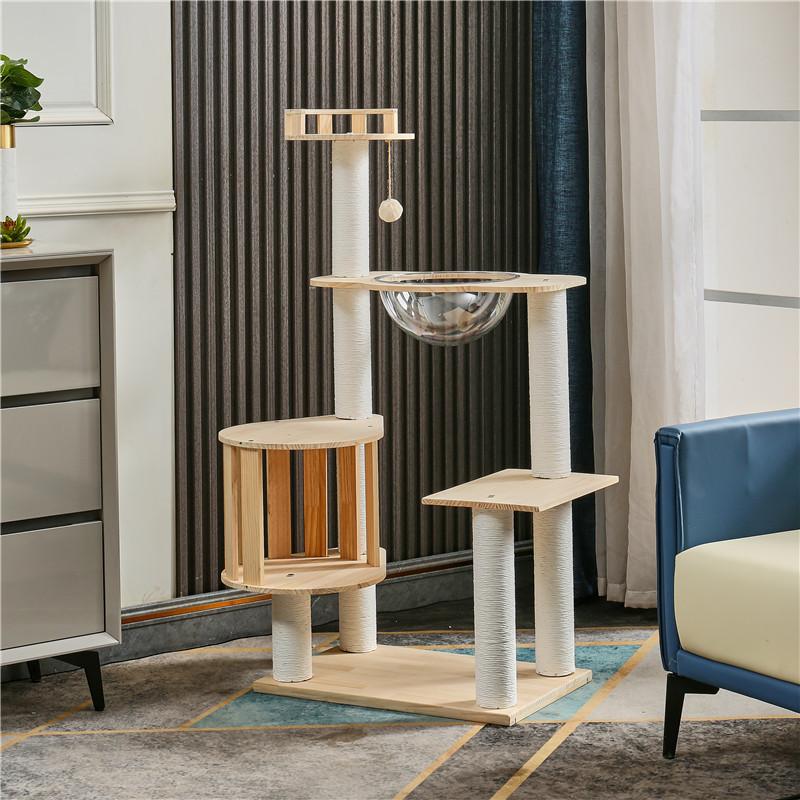 Rascador de Madera para Gatos, Estructura para Trepar Gatos, Nido para Gatos, Árbol para Gatos Integrado de Gran Altura, Estante para Gatos Cápsula Espacial, Juguetes de Entretenimiento para Mascotas