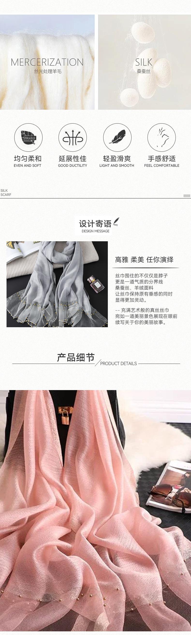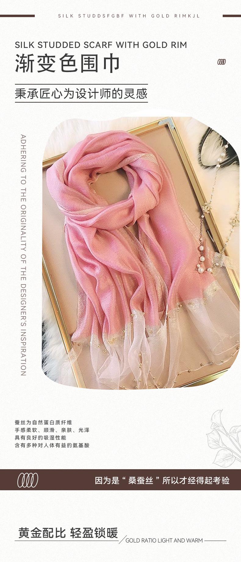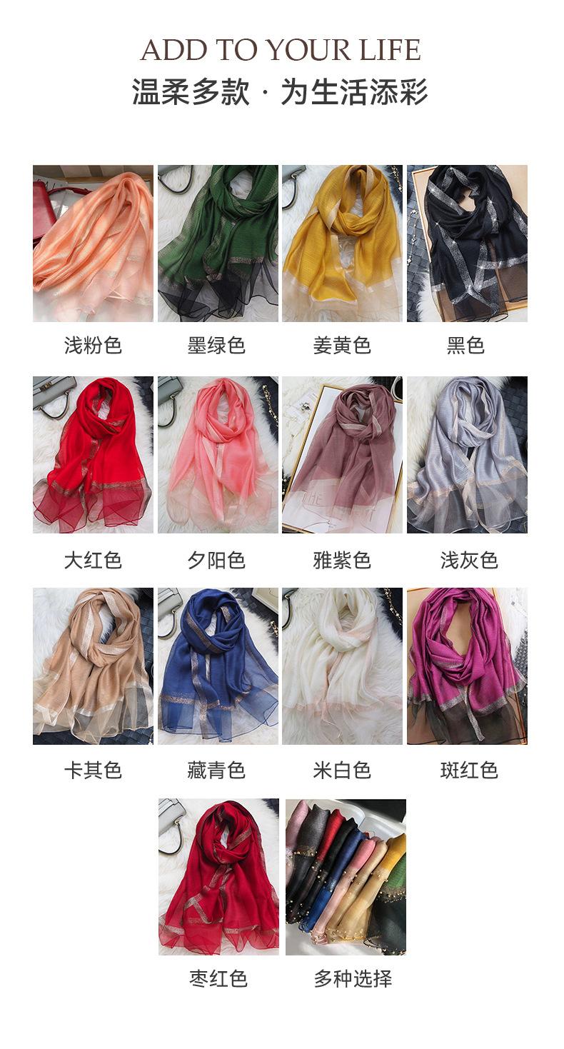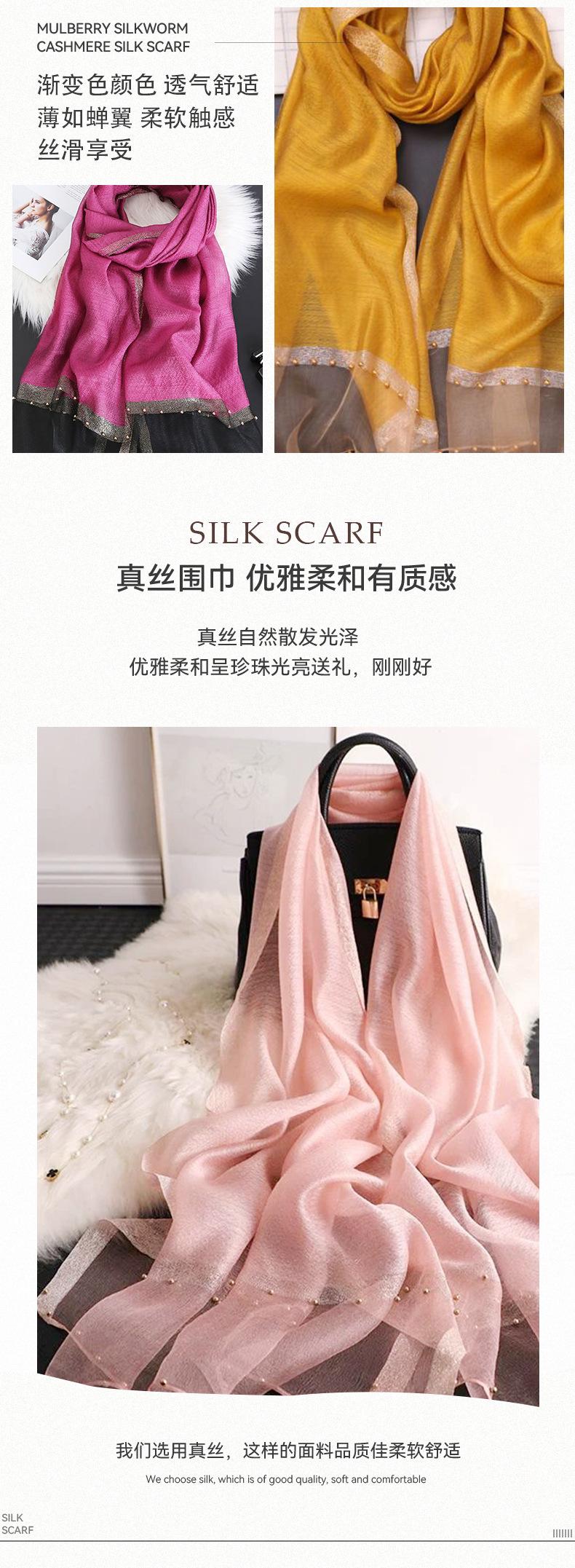 Bufanda de Protección Solar de Verano para Mujer Estilo Coreano Combinable Seda Color Sólido Chal para Aire Acondicionado Bufanda Fina con Cuentas de Phnom Penh Bufanda para Mujer