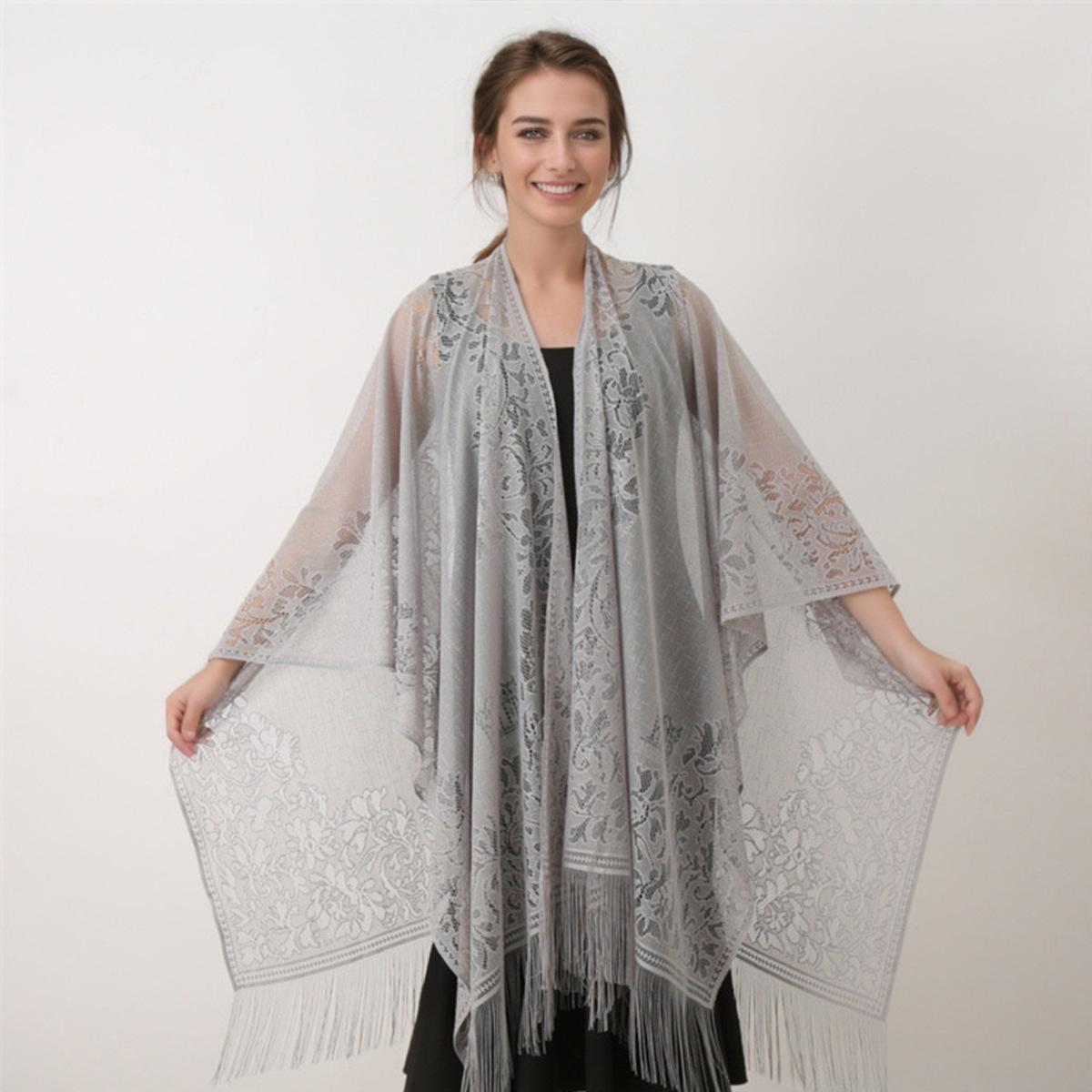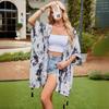 24 Explosiones Transfronterizas Toalla de Playa Europea y Americana Chal Grande Manga de Seda Dorada y Plateada Abertura Protector Solar Vacaciones Bikini Blusa