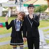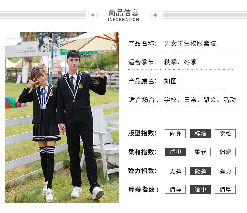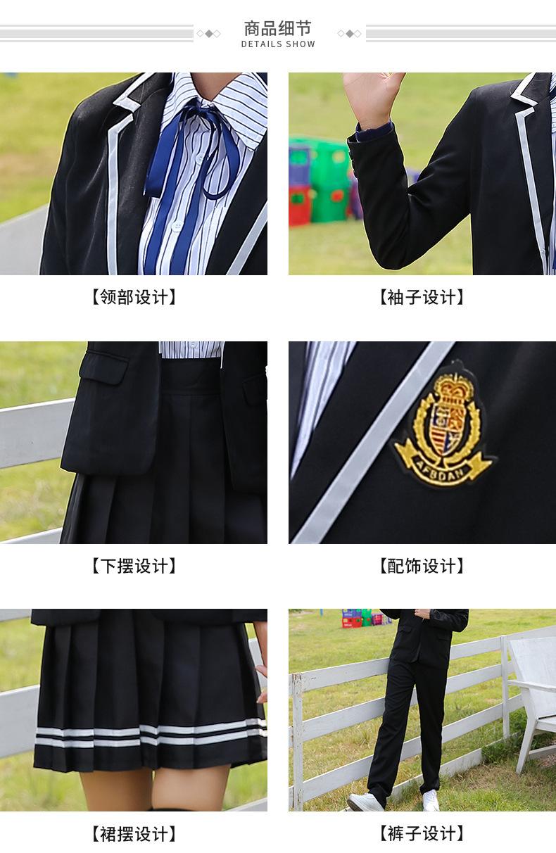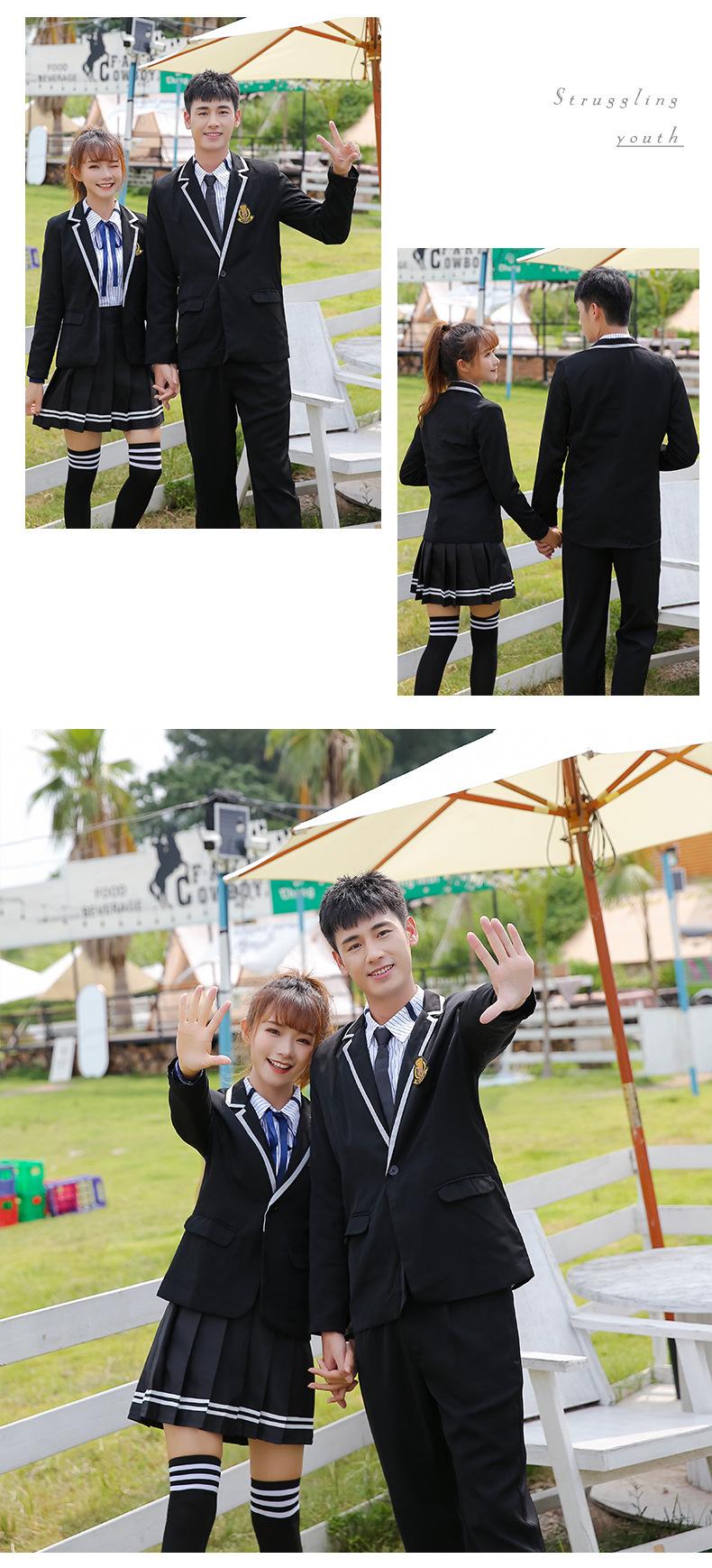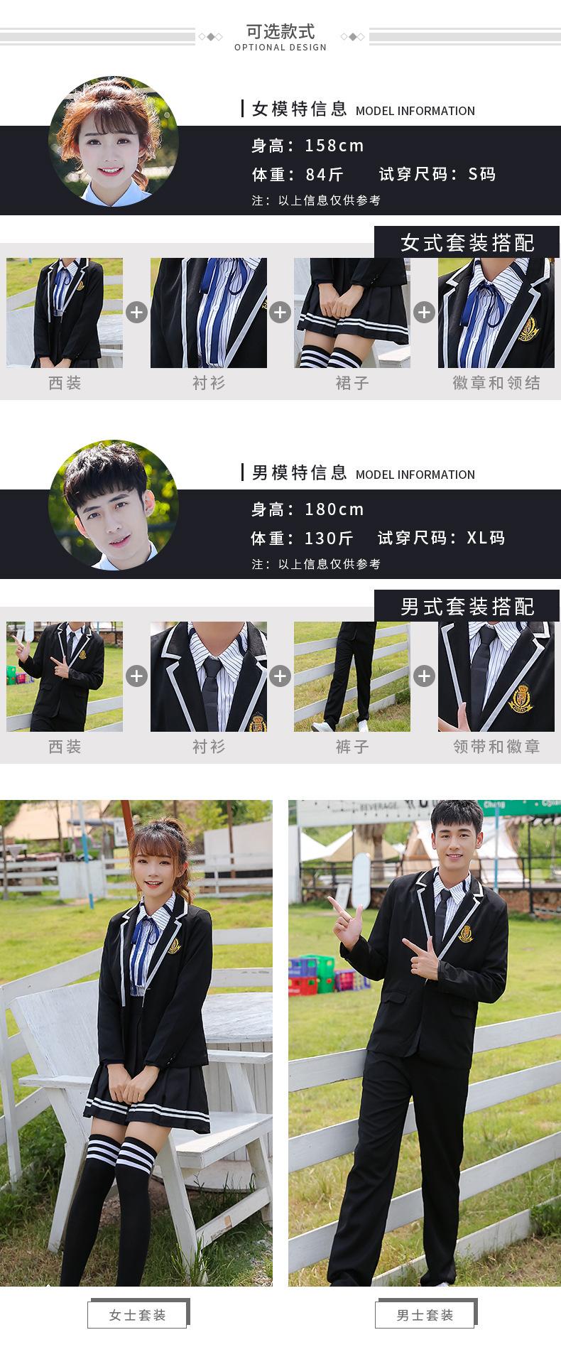 Women's black suit + thin black long sleeve + black striped skirt + Blue Ribbon, Men's black suit + thin black...