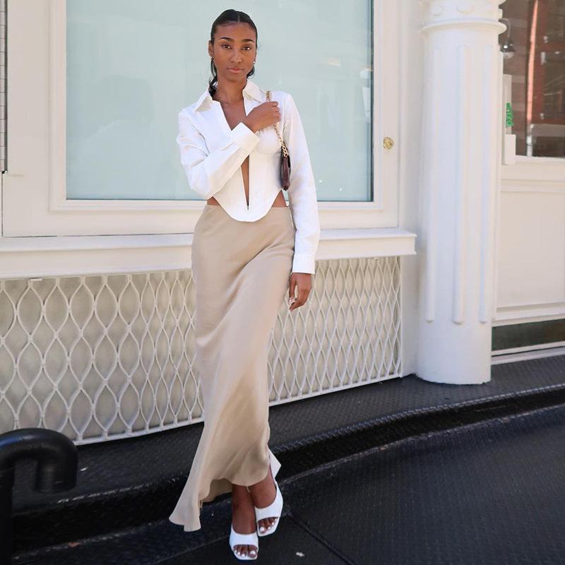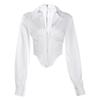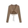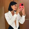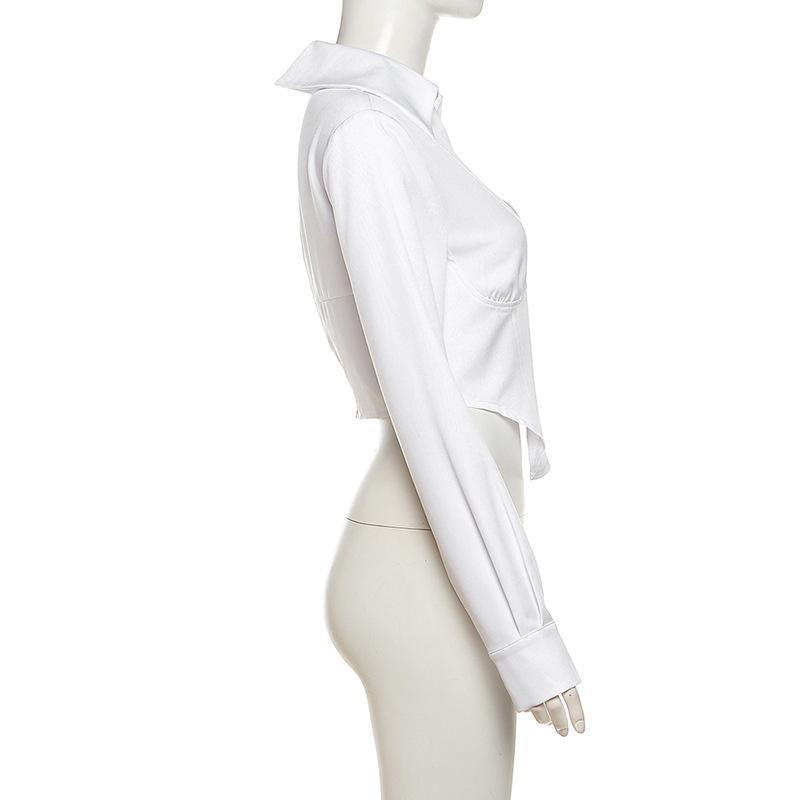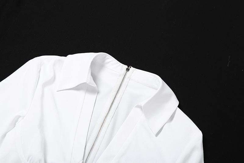 Estilo europeo y americano 2023 nuevo cárdigan de solapa de moda de color sólido para mujer, cremallera, sexy, calado, escote en V profundo, corte bajo, camiseta ajustada