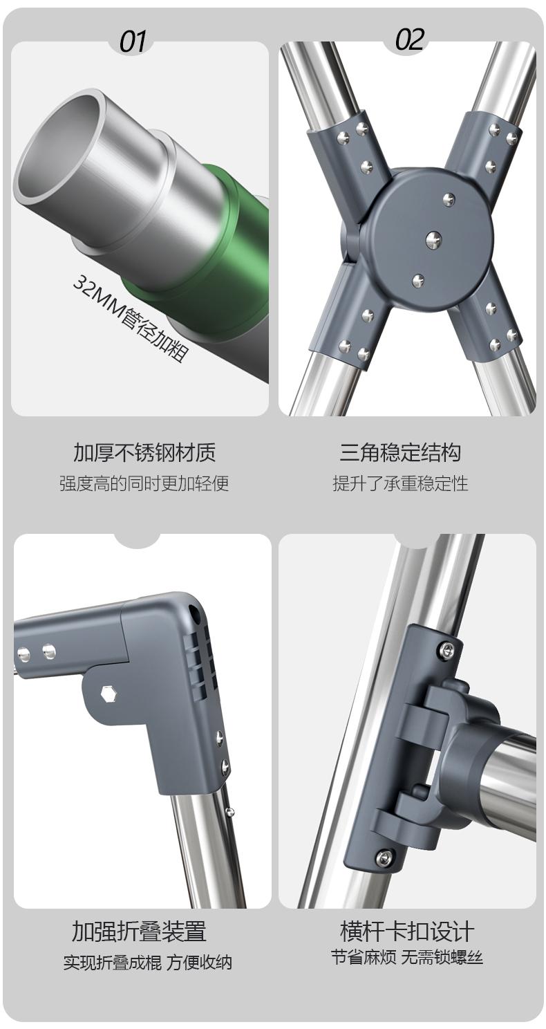 Nuevo Tendedero Plegable de Acero Inoxidable de Pie para Piso Interior Hogar Balcón Barra para Secar Ropa Colgador de Ropa Telescópico Exterior Tendedero para Edredones