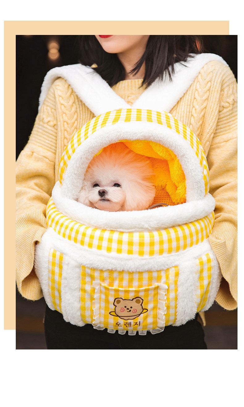 Bolsa para paseo de perro mascota mochila para gato bolso con forma de animal cálido portátil de gran capacidad bolsa para gato otoño e invierno