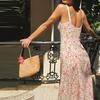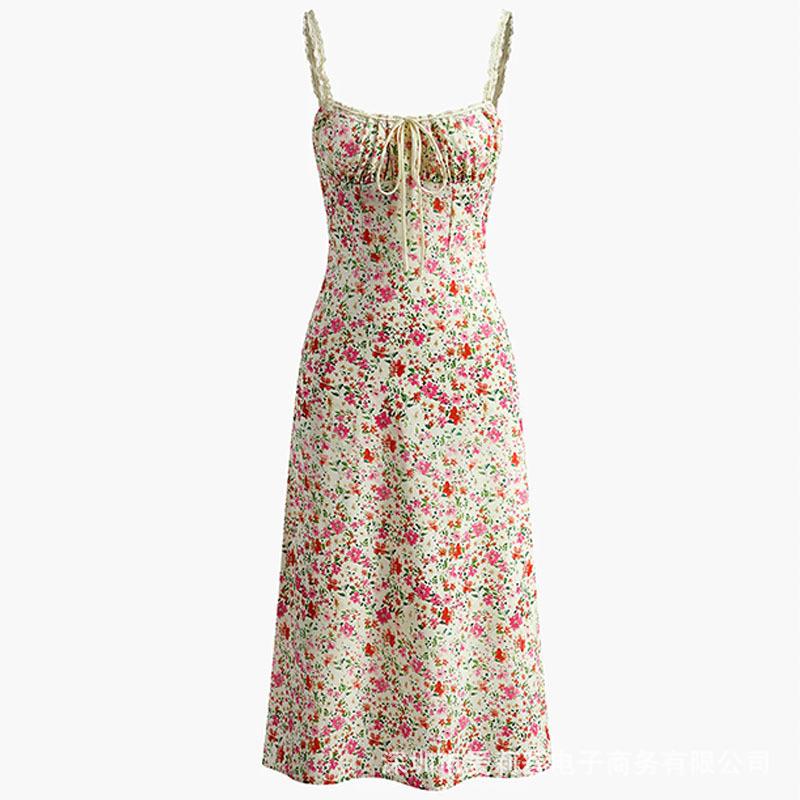 2025 Nuevo Estilo Vacacional Francés Transfronterizo Dulce Espalda Descubierta Moda Deseo Puro Encaje Patchwork Tirantes Espagueti Vestido Floral