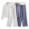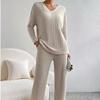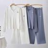 Conjunto de Moda 2025 Transfronterizo Suelto Cuello POLO Bordado Tejido Top Cintura Alta Pantalones de Pierna Ancha
