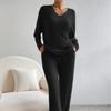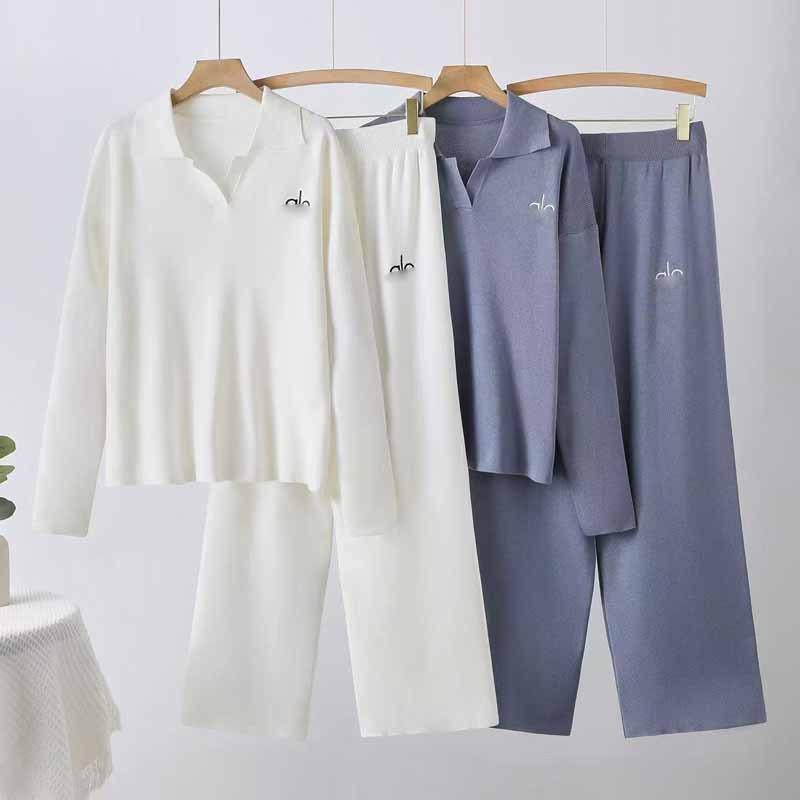 Conjunto Transfronterizo 2025 Top de Punto con Bordado de Letras y Cuello Polo Suelto, Pantalones de Pierna Ancha de Cintura Alta, Conjunto de Moda