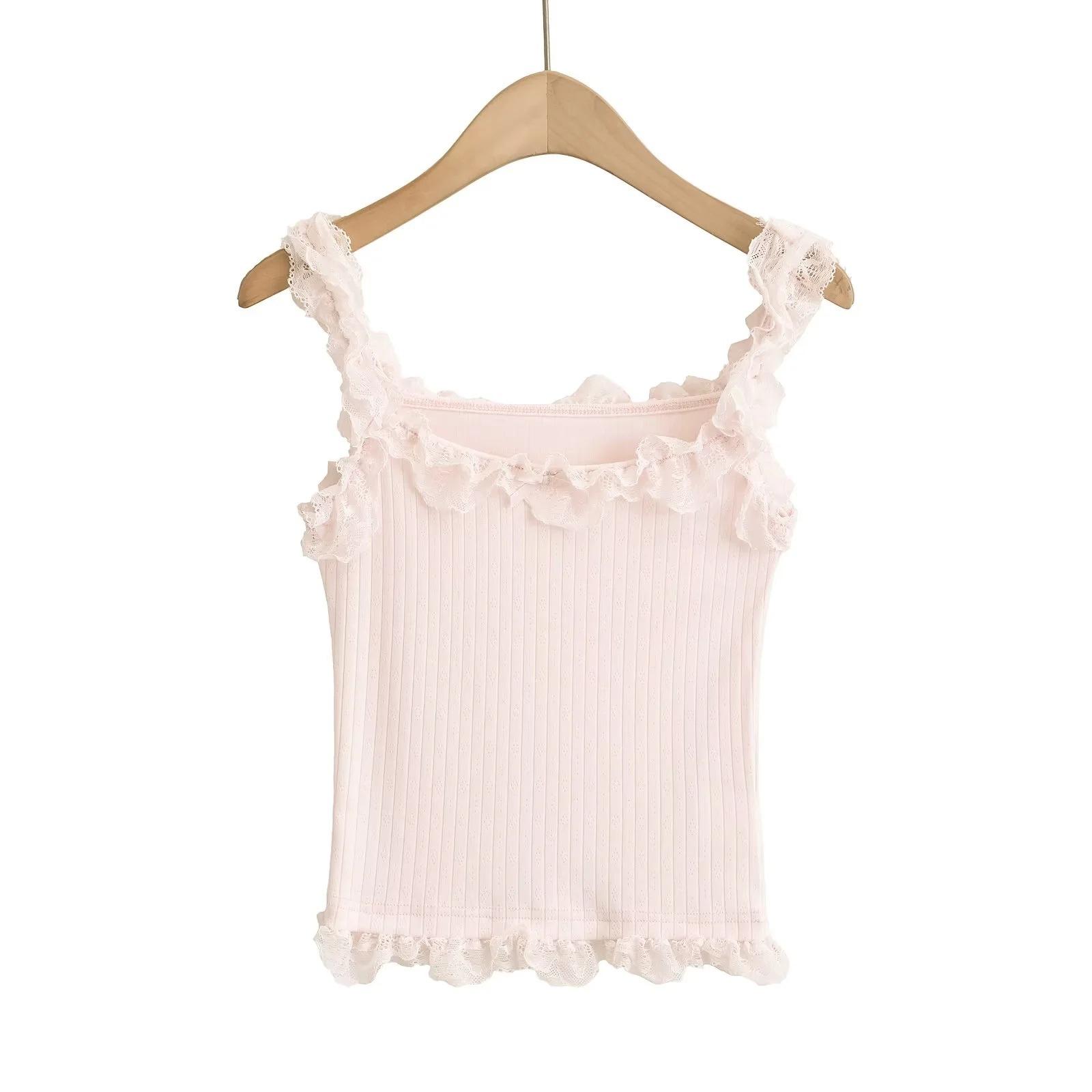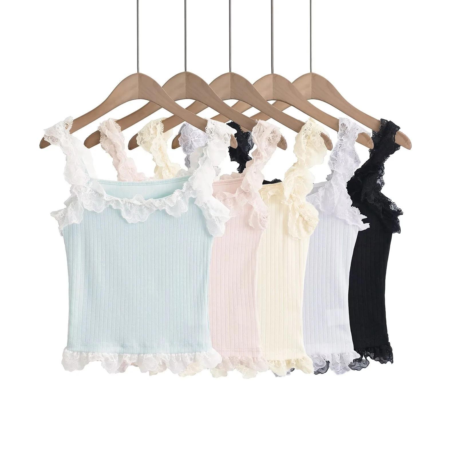Encaje Ajustado Sisa Raya Colorido Dulce Ropa Exterior Tirantes Estilo Europeo y Americano Verano Mujer Elástico Corto Chaleco
