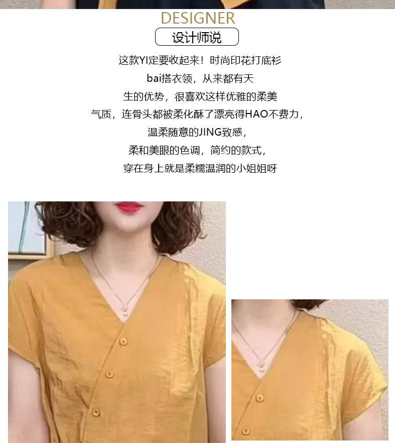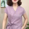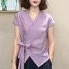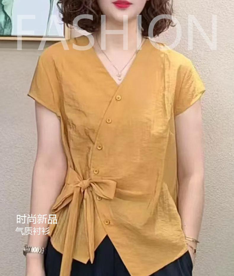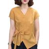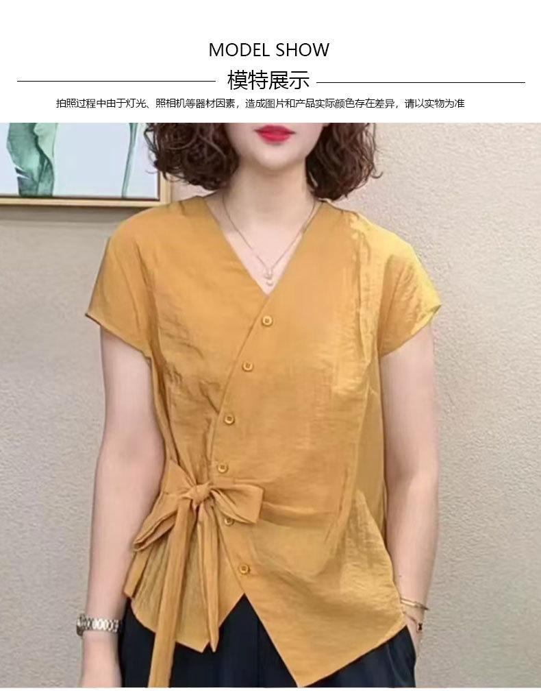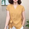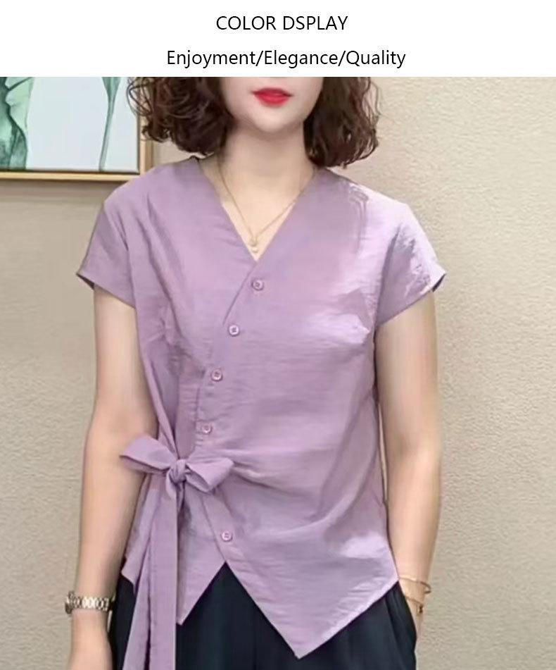 Camisa de Color Sólido con Cuello en V para Mujer 2025 Verano Nuevo Estilo Coreano Moda Moderna Irregular con Cordones Estilo Extranjero Versátil Look Adelgazante Top