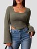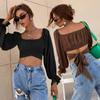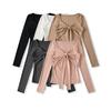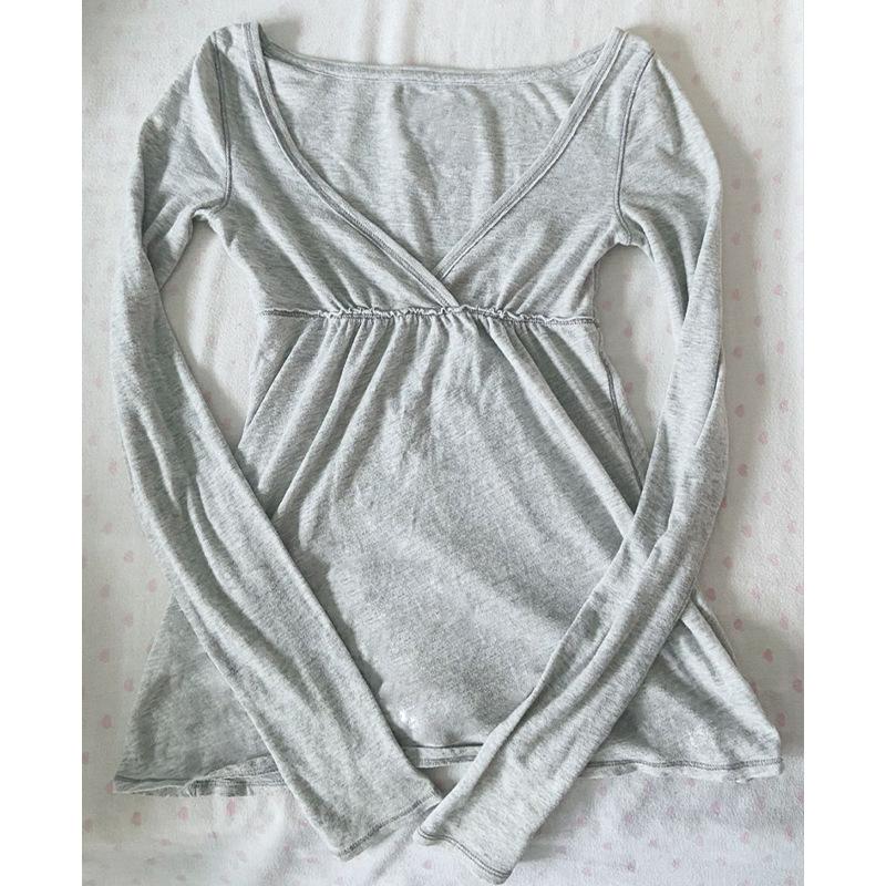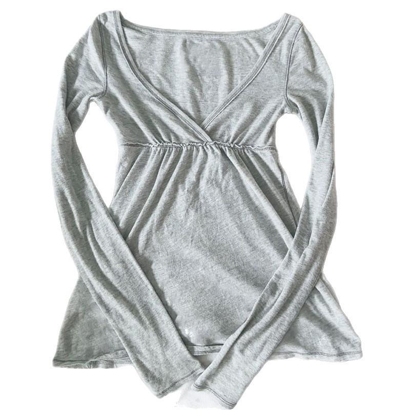 2025 Otoño/Invierno Nuevo Europeo y Americano Gris Cuello en V Bajo Sexy Minimalista Color Sólido Moda Manga Larga Top para Mujer Venta al por Mayor