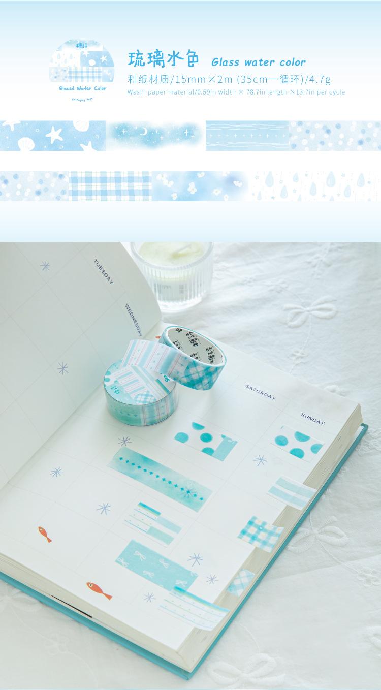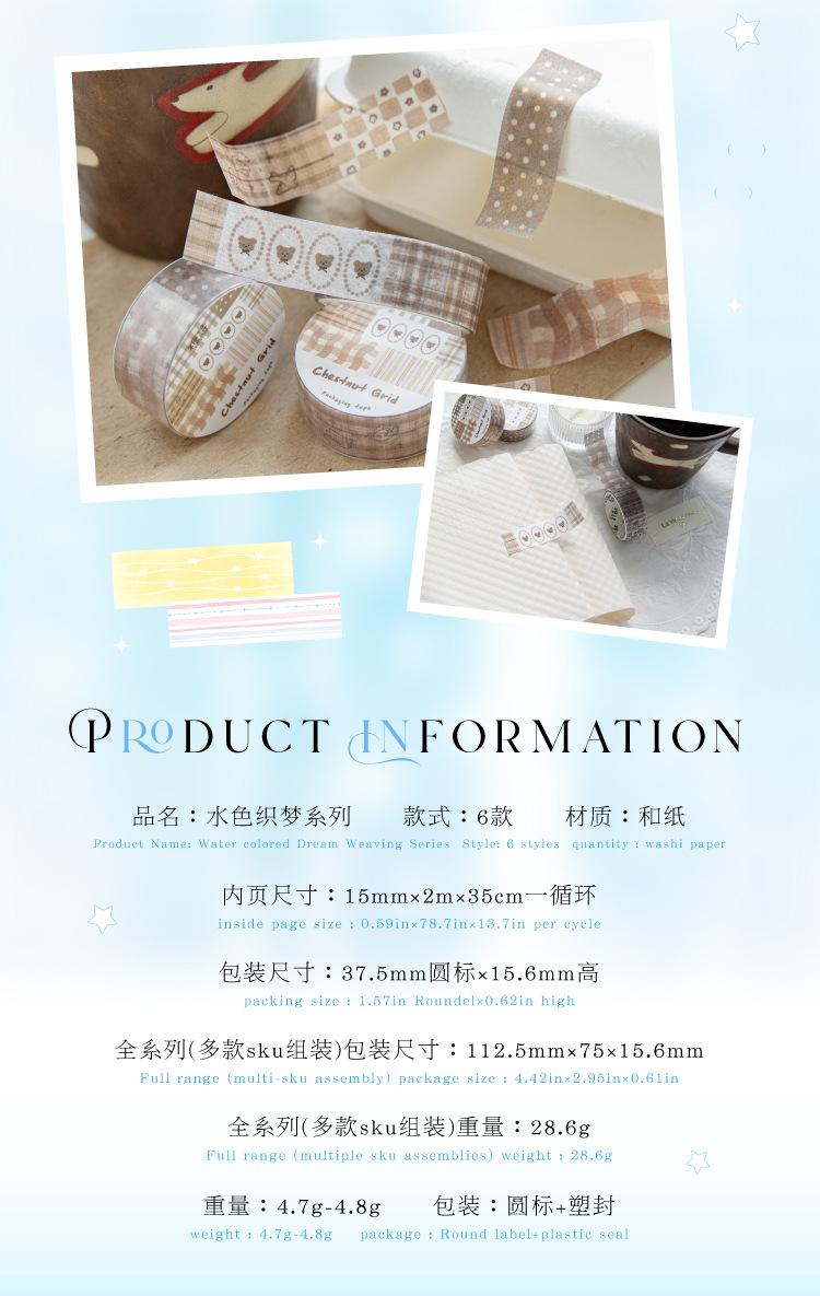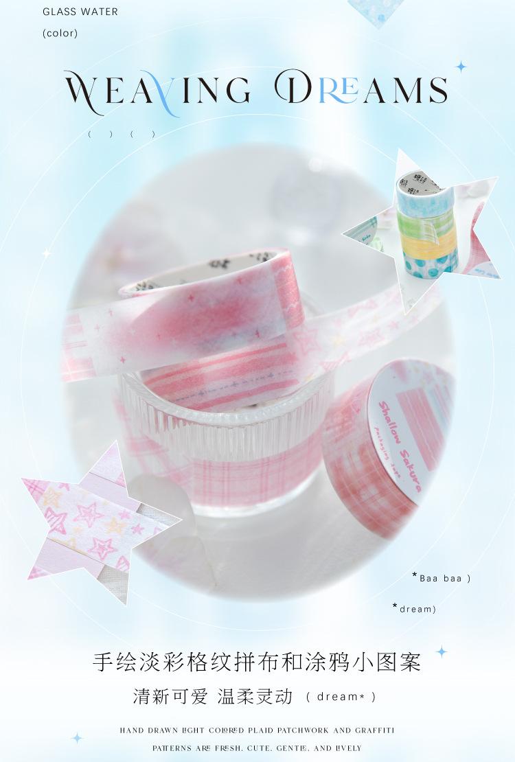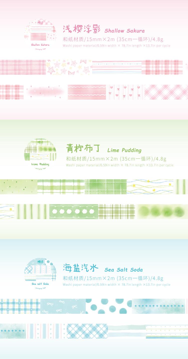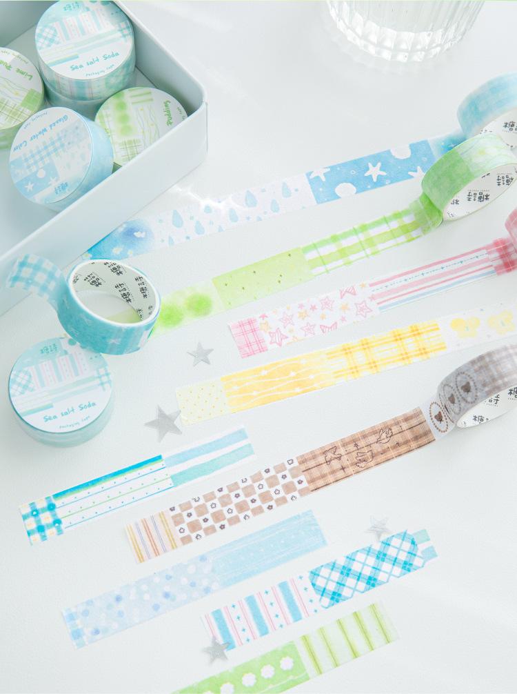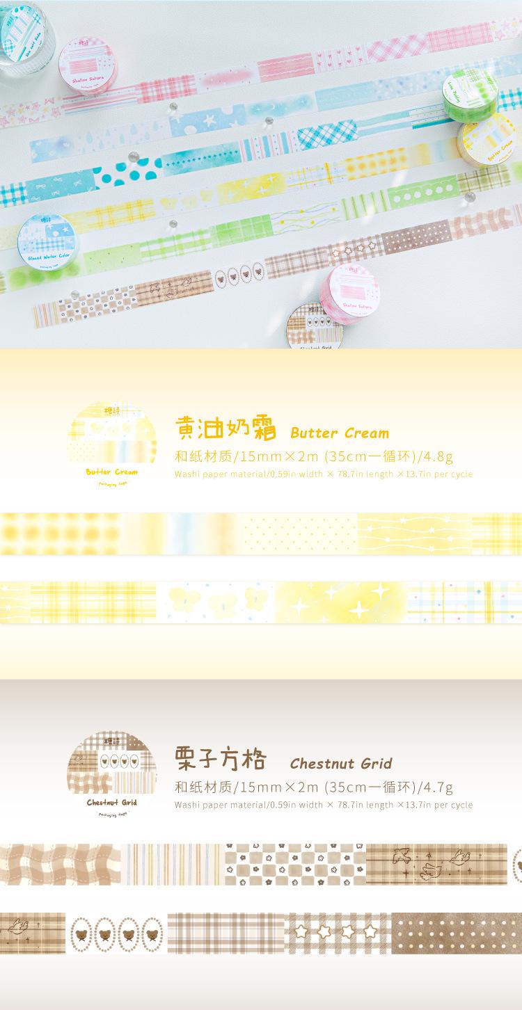Cinta Washi Poesía de Azúcar Transfronteriza Serie Sueño Acuarela Color Claro Cuadros Patchwork Graffiti Material Decorativo de Diario Sticker de Bucle