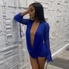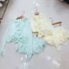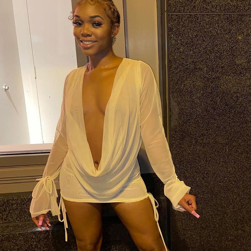 Conjunto de dos piezas europeo y americano con escote en V profundo transparente nuevo plisado de malla para mujer verano color sólido cuello cowl blanco amarillo rojo