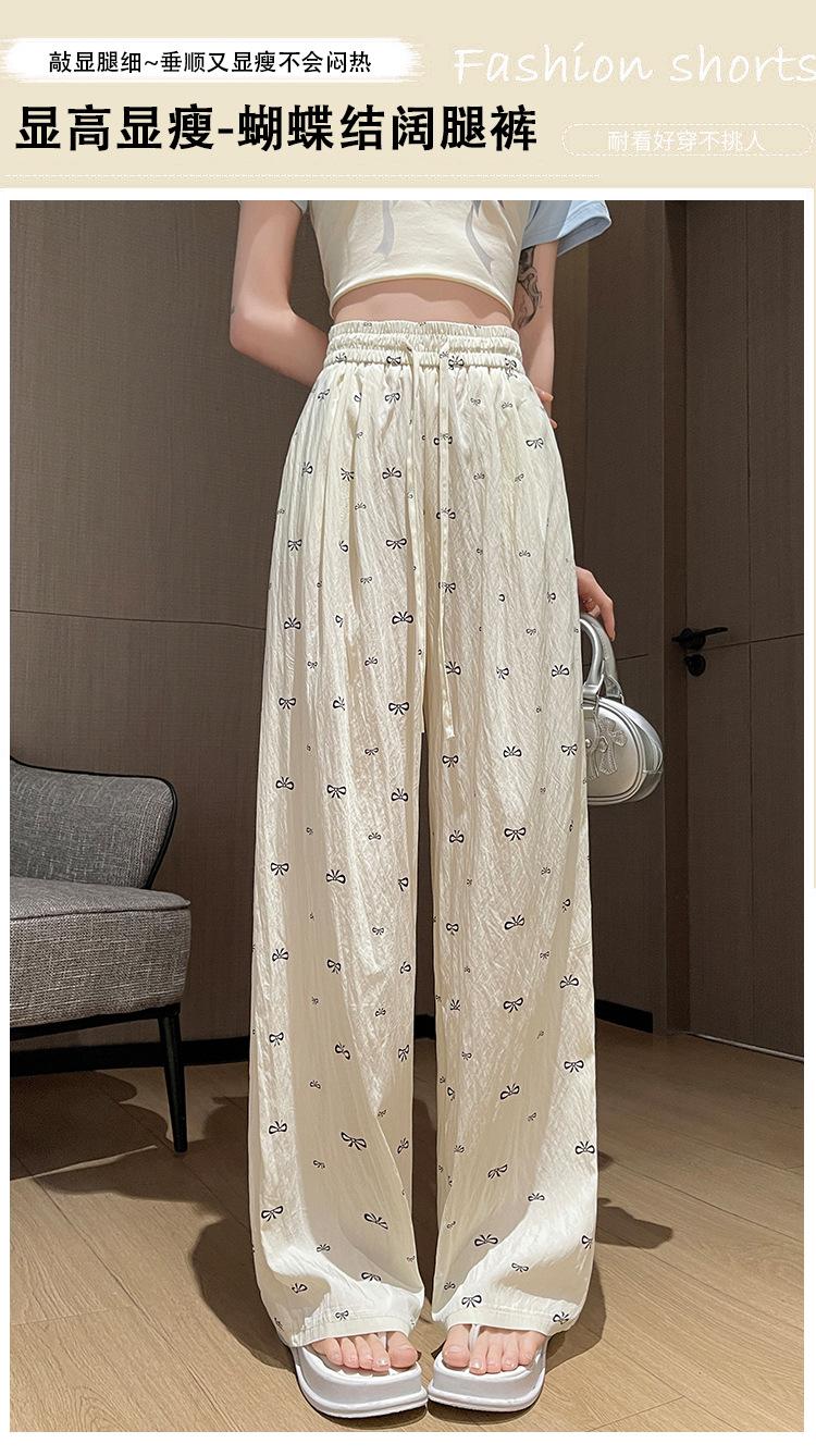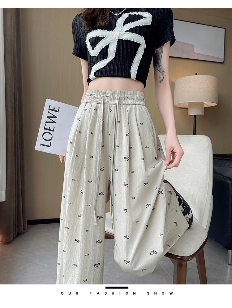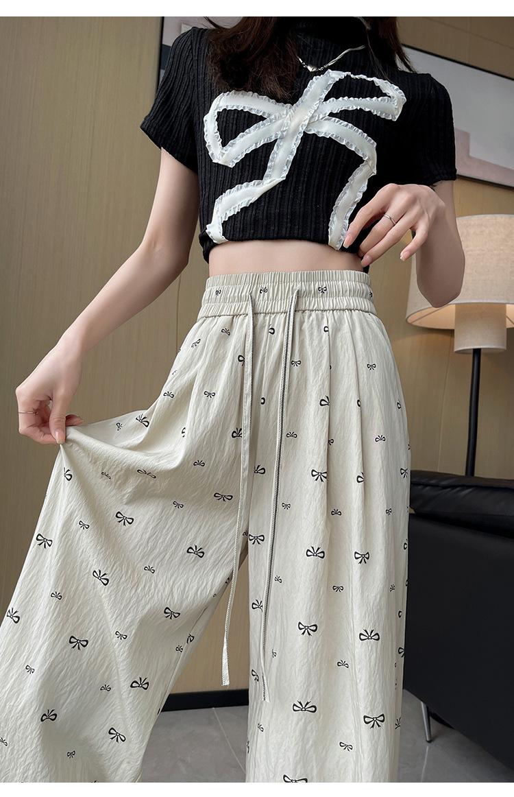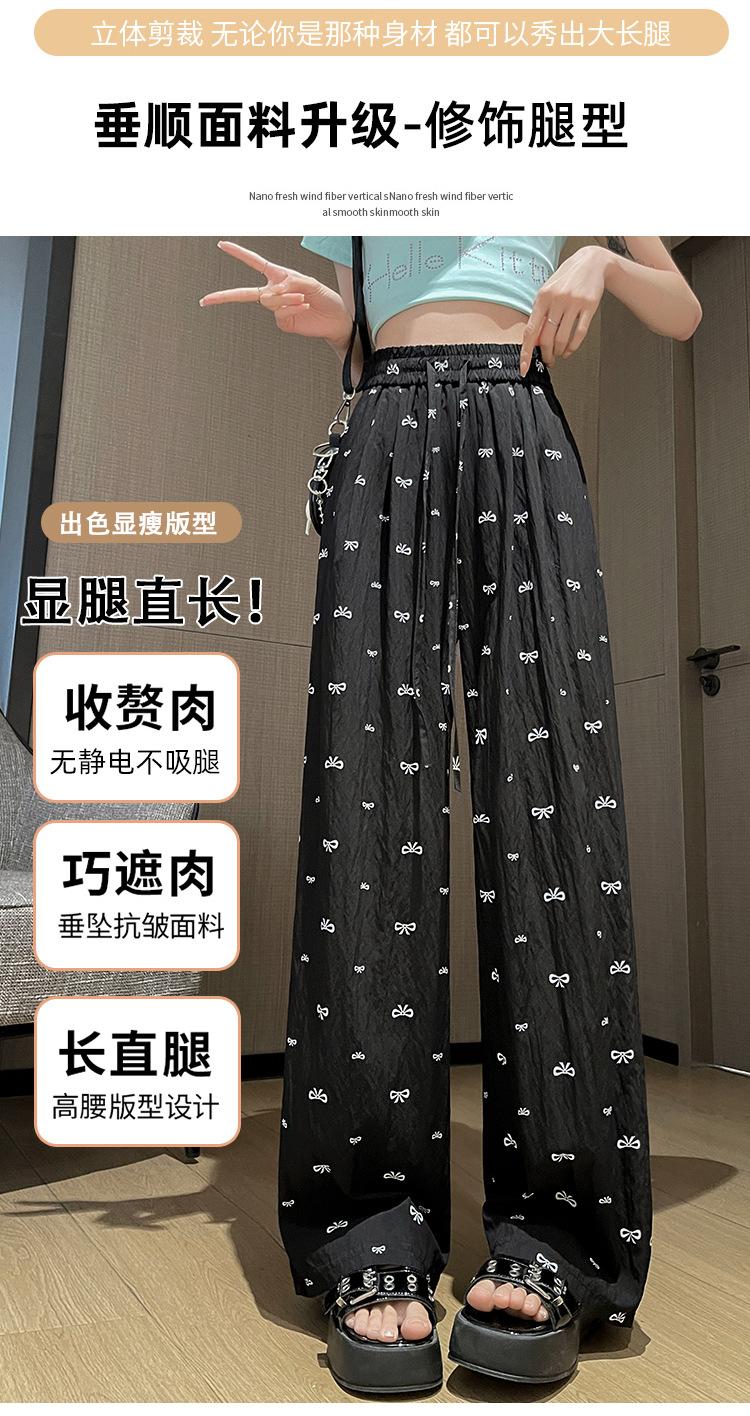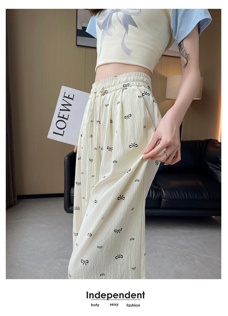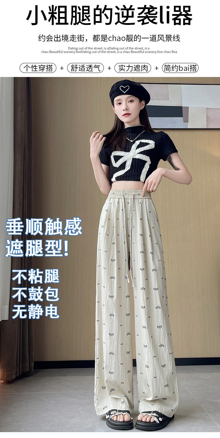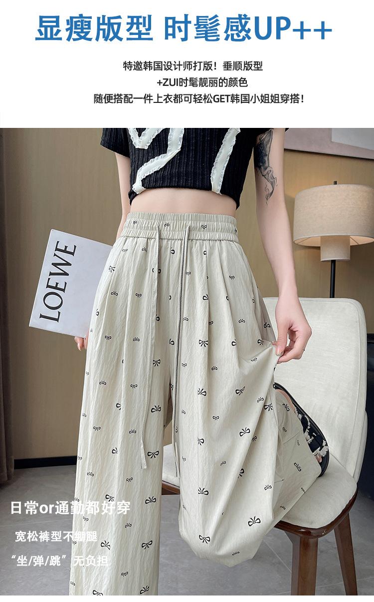 Pantalones de Pierna Ancha con Lazo Blanco Estilo Coreano para Mujer Verano Delgados Helados Cintura Alta Protección Solar Rectos