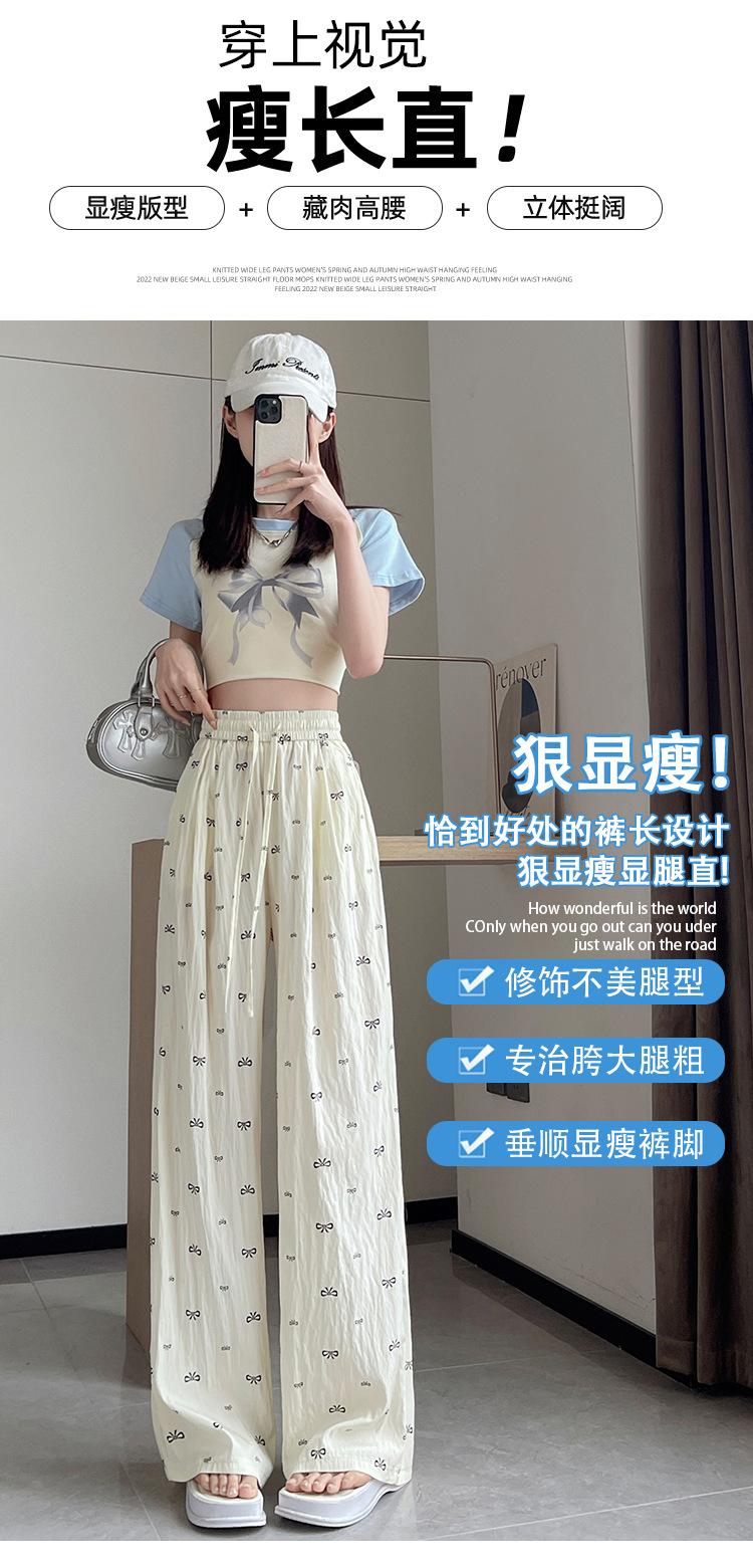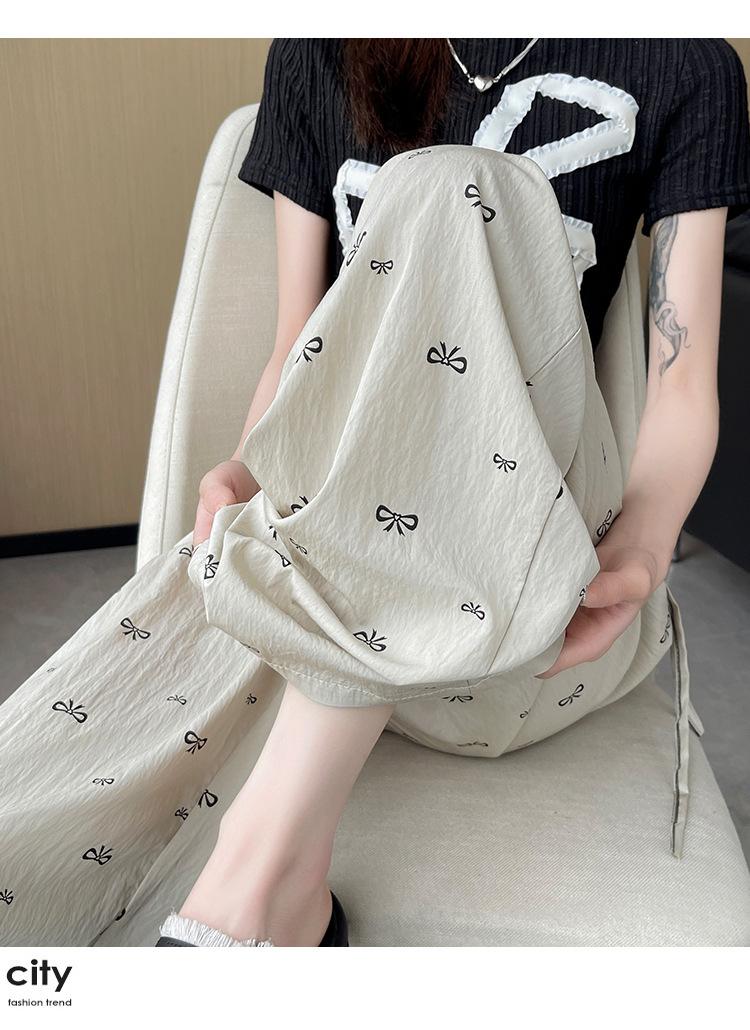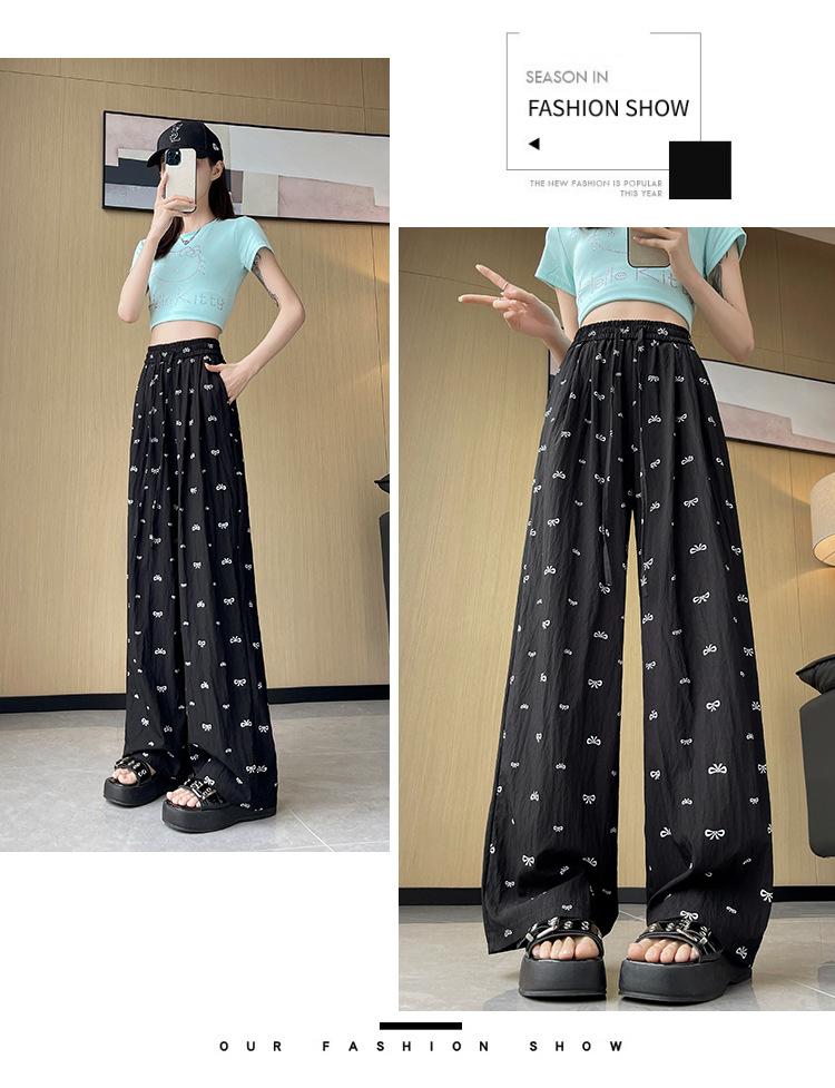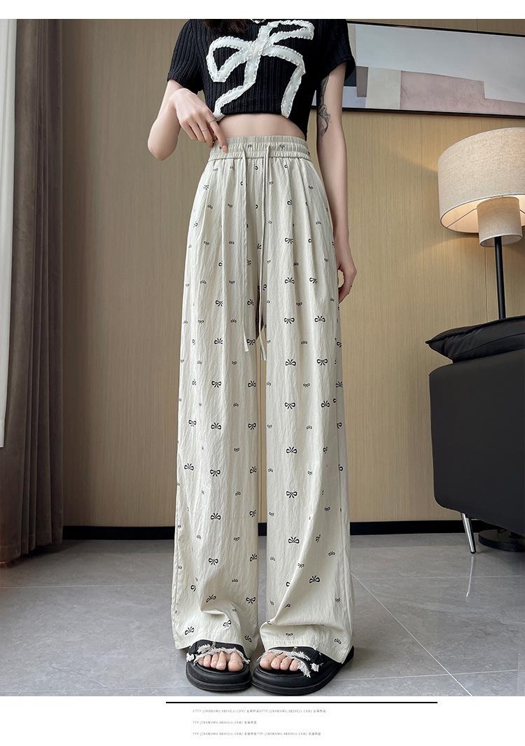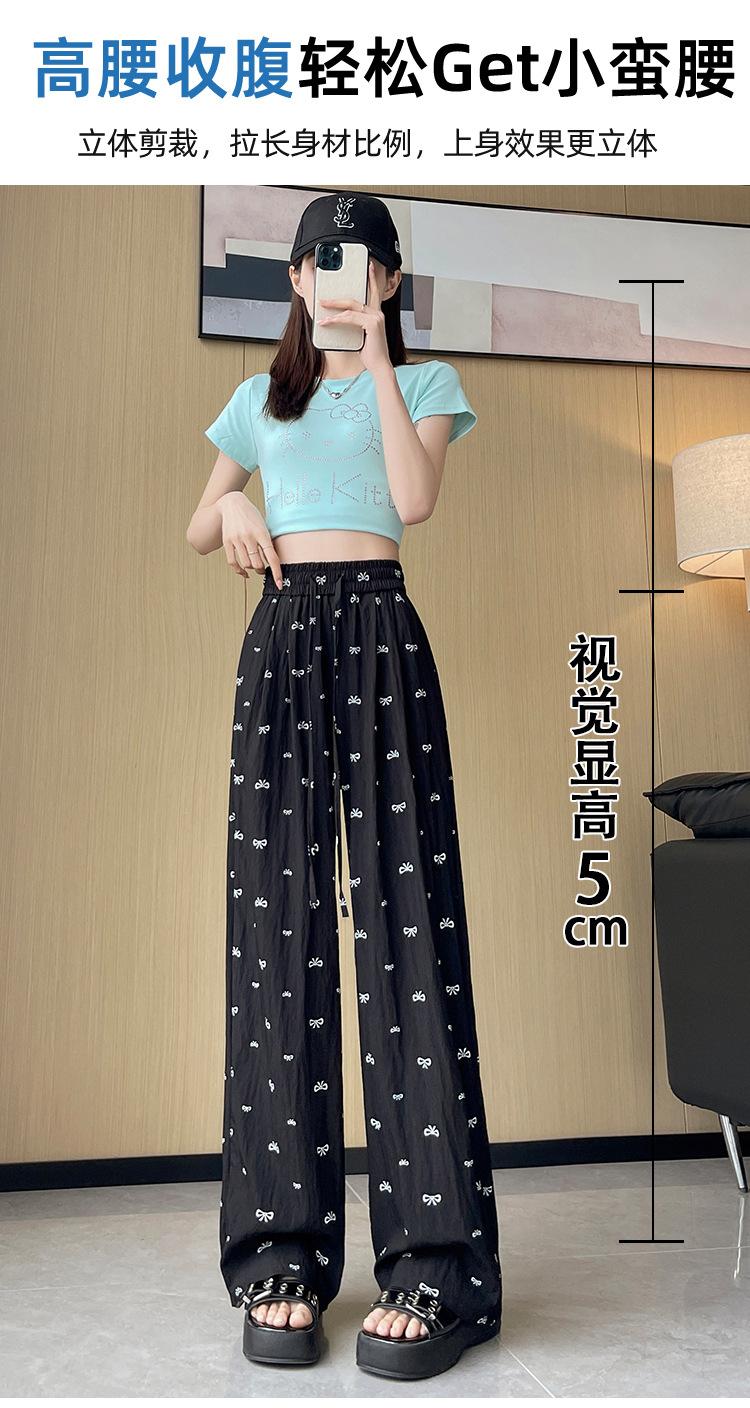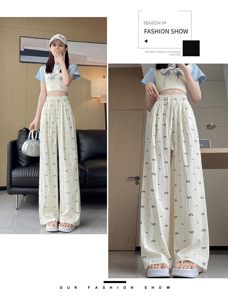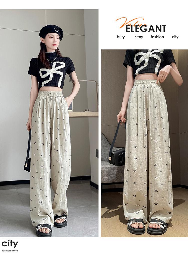 Pantalones de Pierna Ancha con Lazo Blanco Estilo Coreano para Mujer Verano Delgados Helados Cintura Alta Protección Solar Rectos