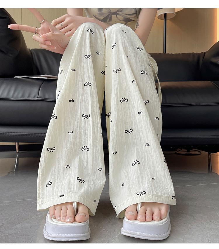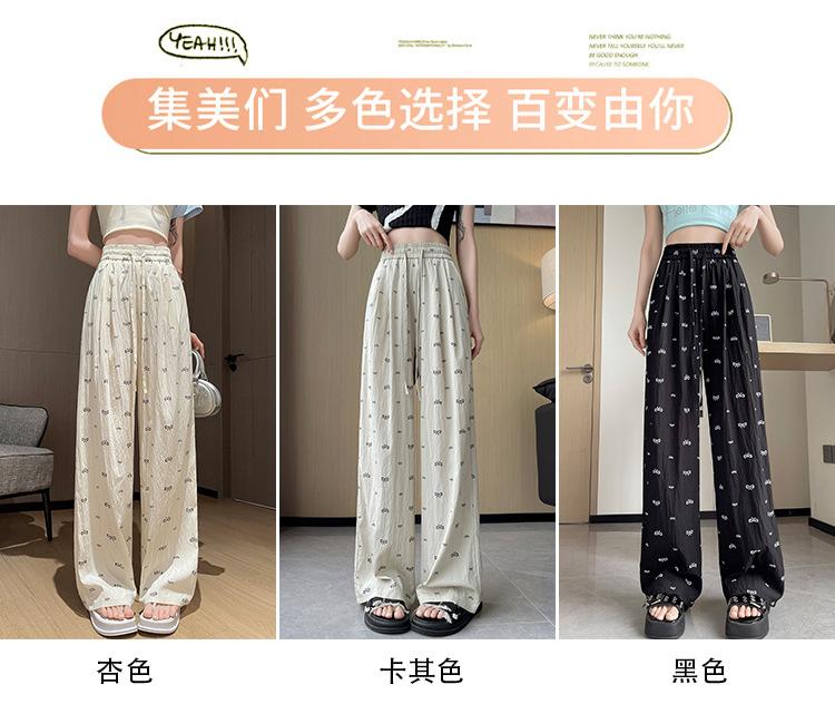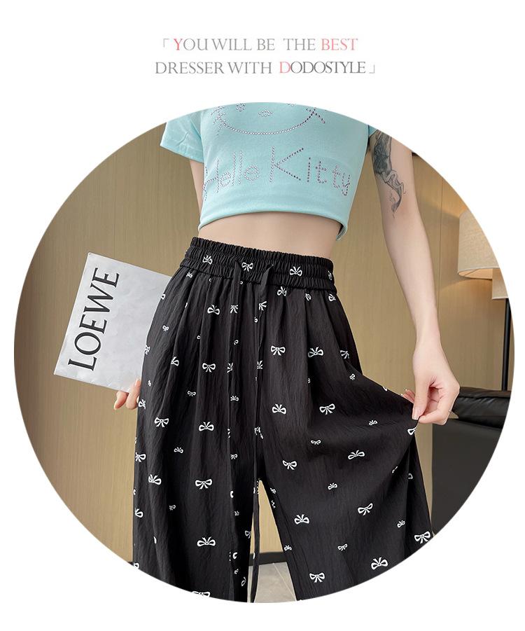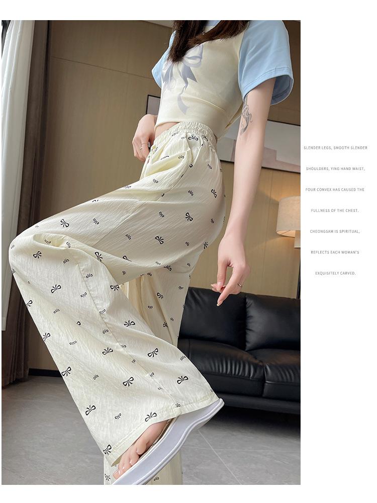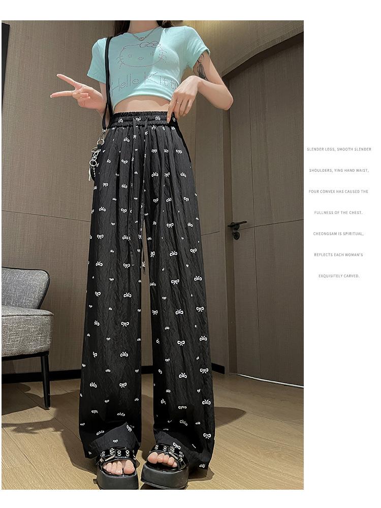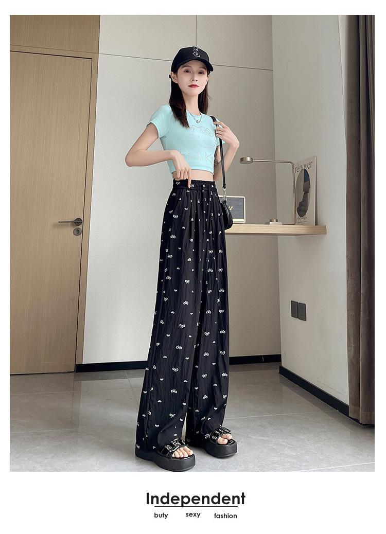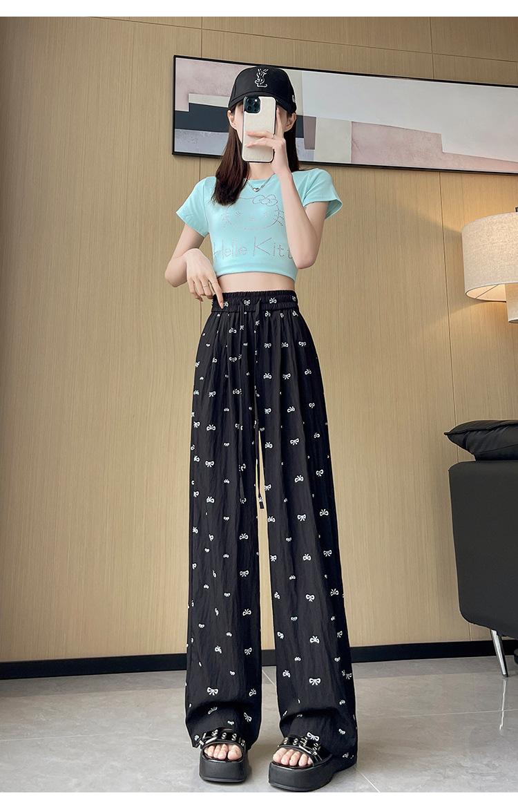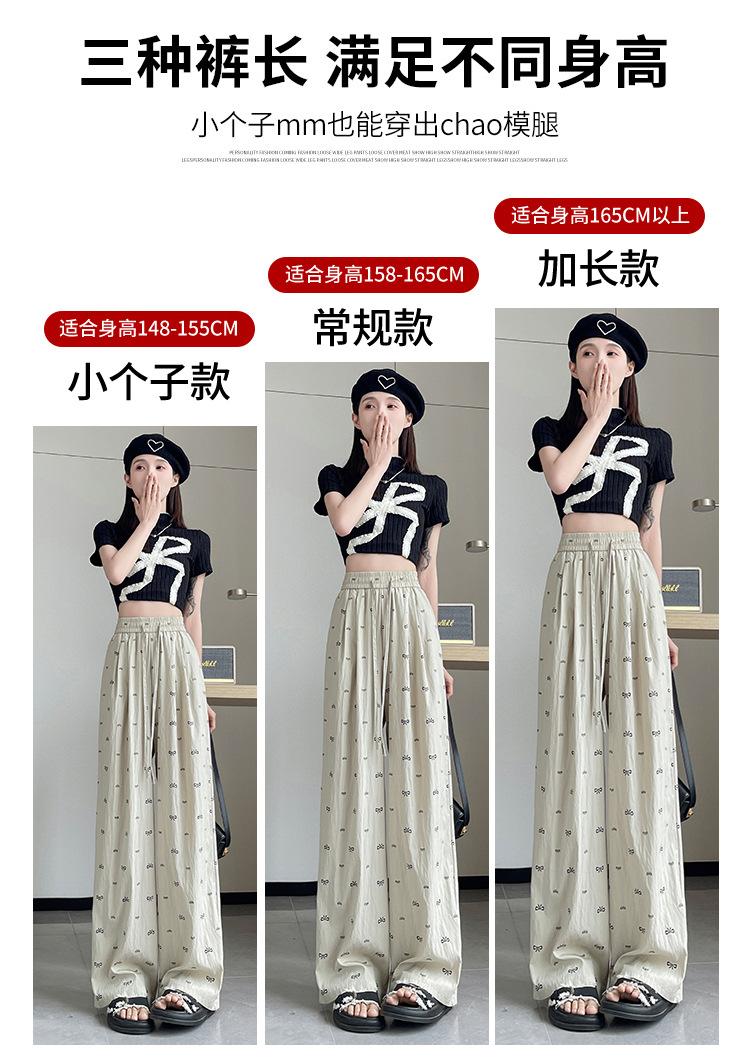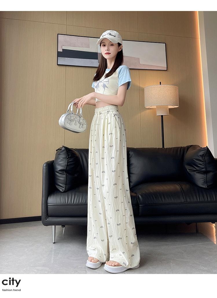 Pantalones de Pierna Ancha con Lazo Blanco Estilo Coreano para Mujer Verano Delgados Helados Cintura Alta Protección Solar Rectos