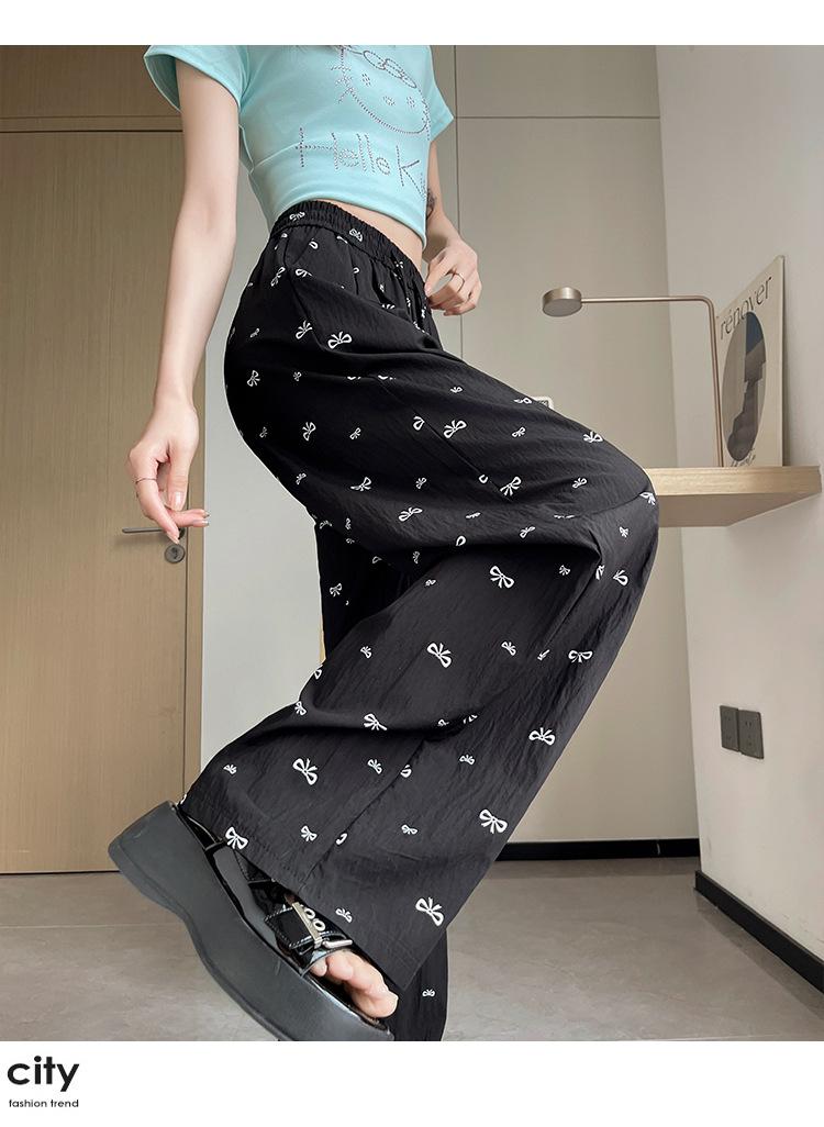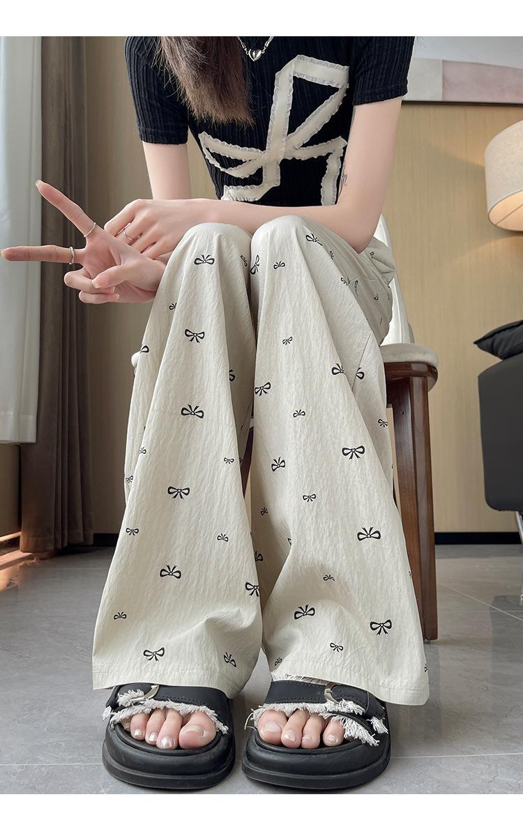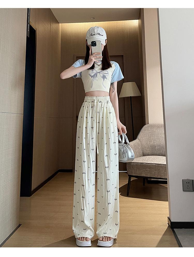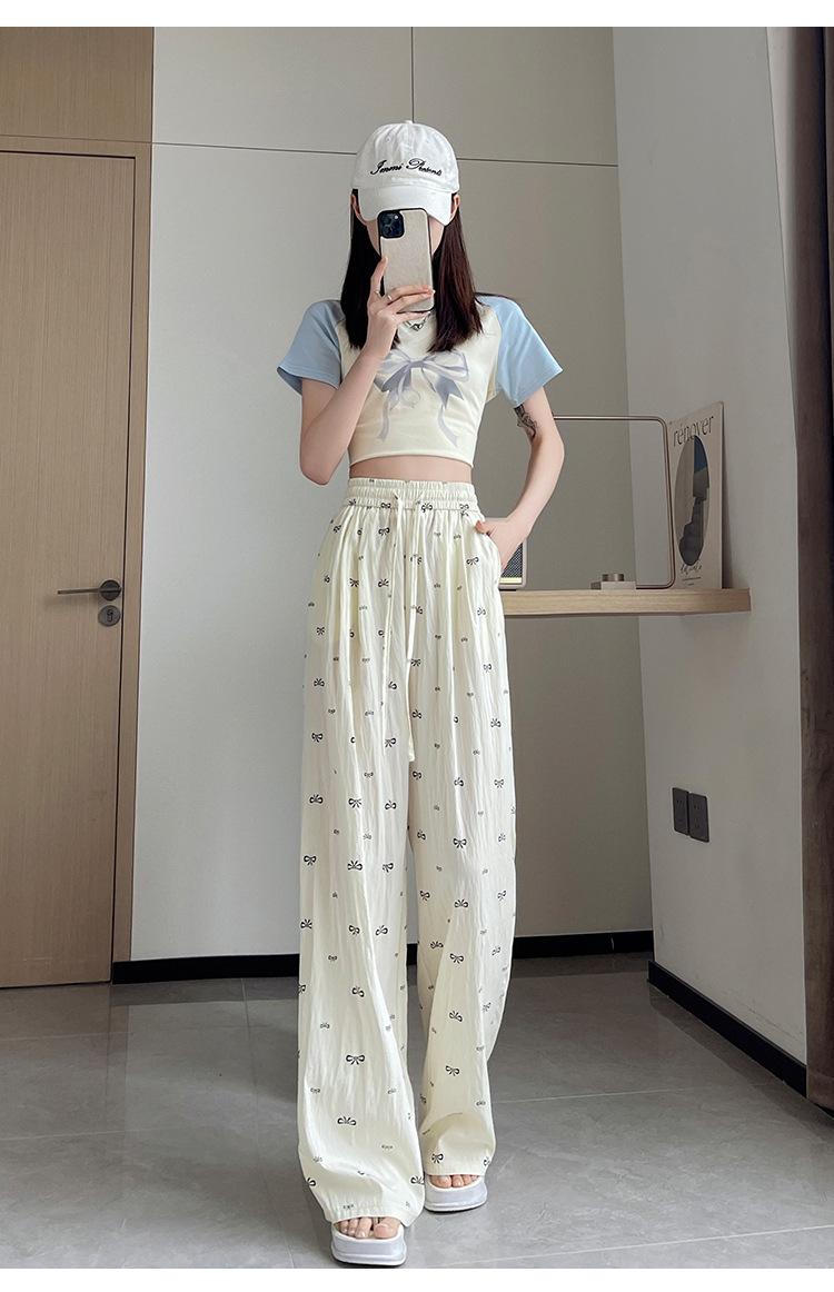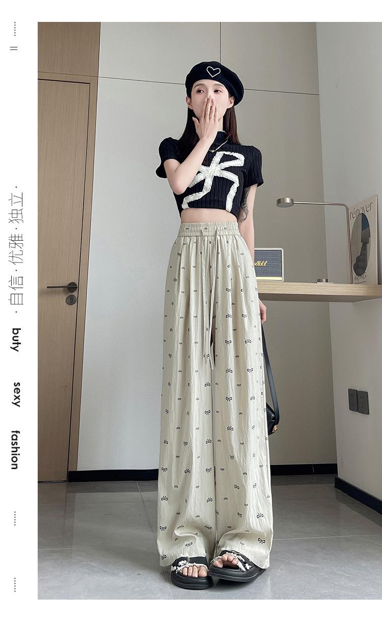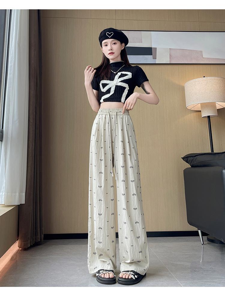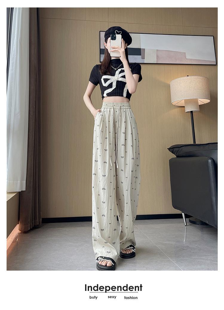 Pantalones de Pierna Ancha con Lazo Blanco Estilo Coreano para Mujer Verano Delgados Helados Cintura Alta Protección Solar Rectos