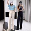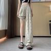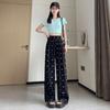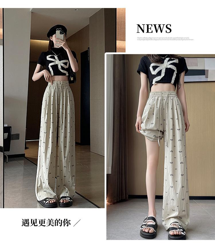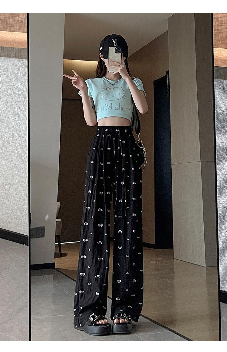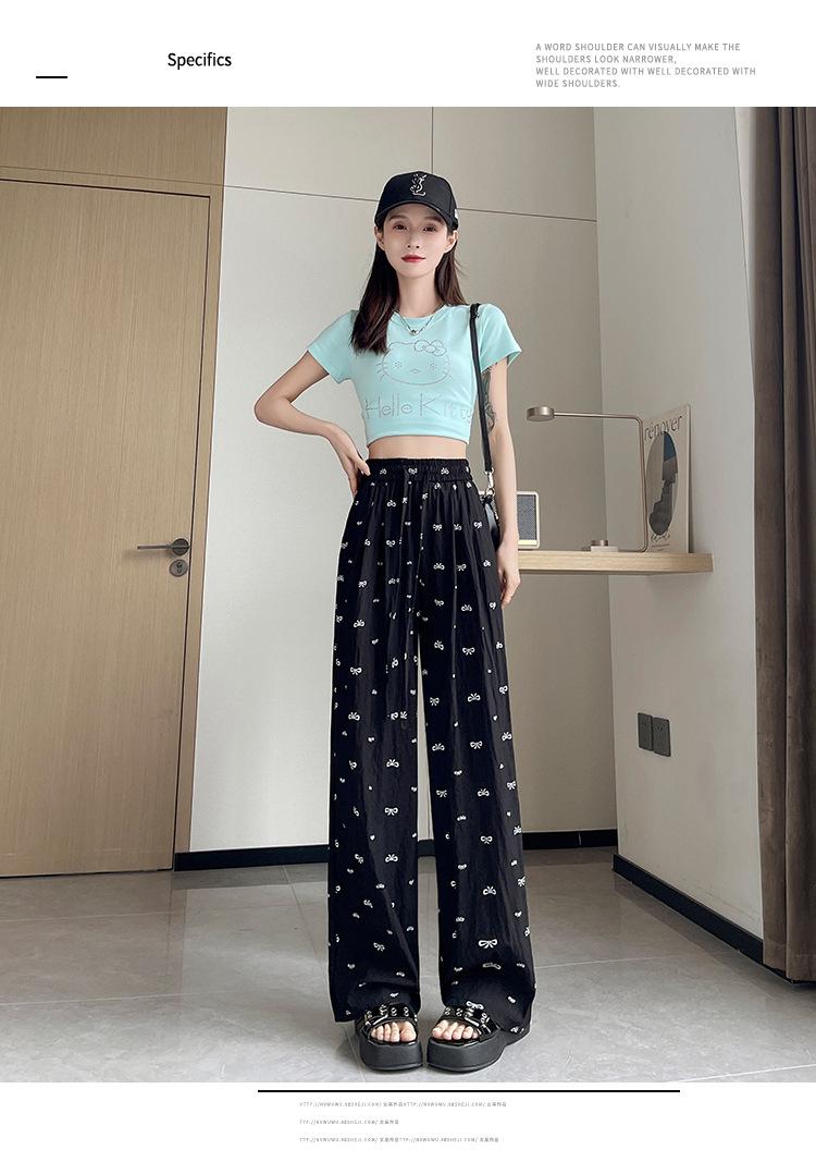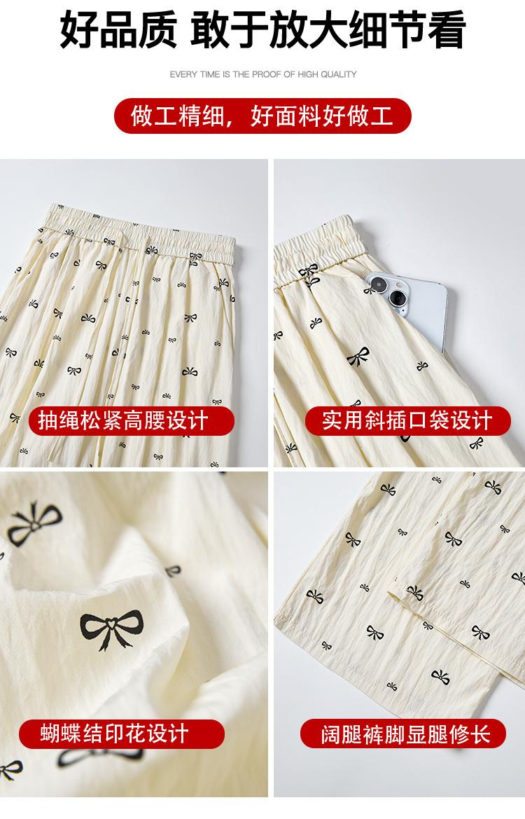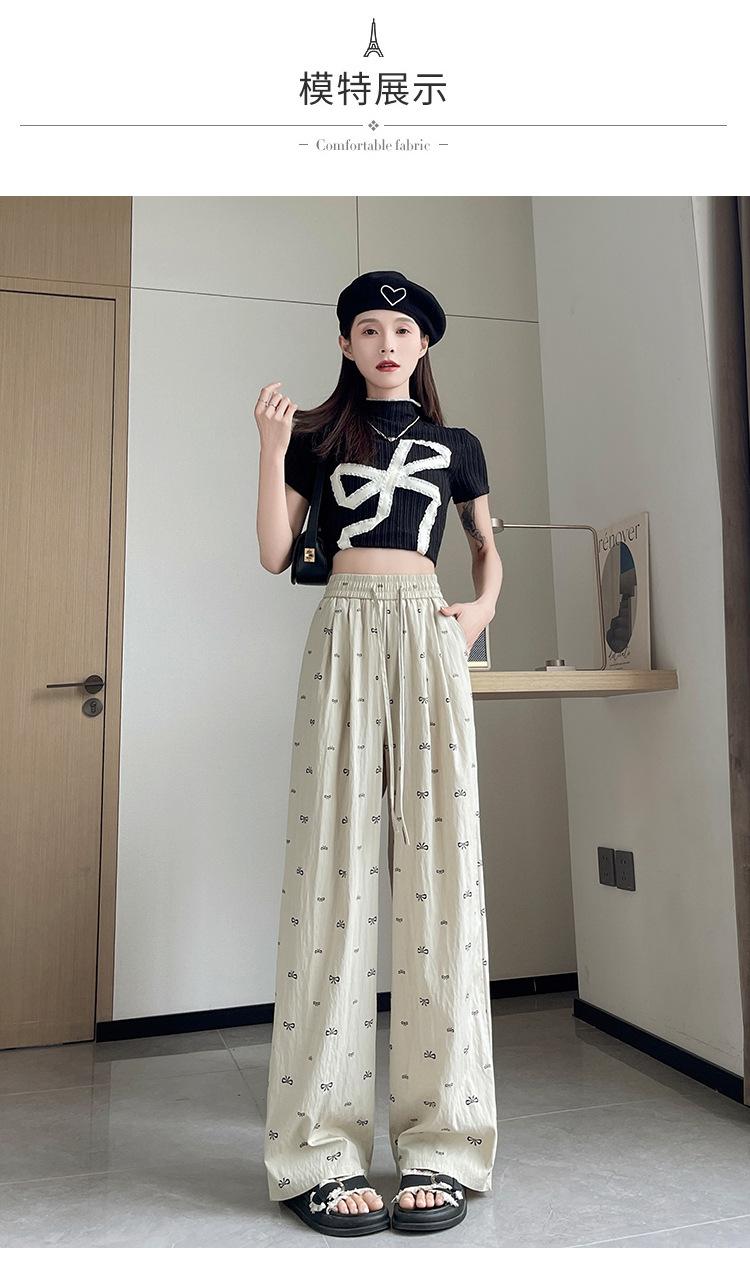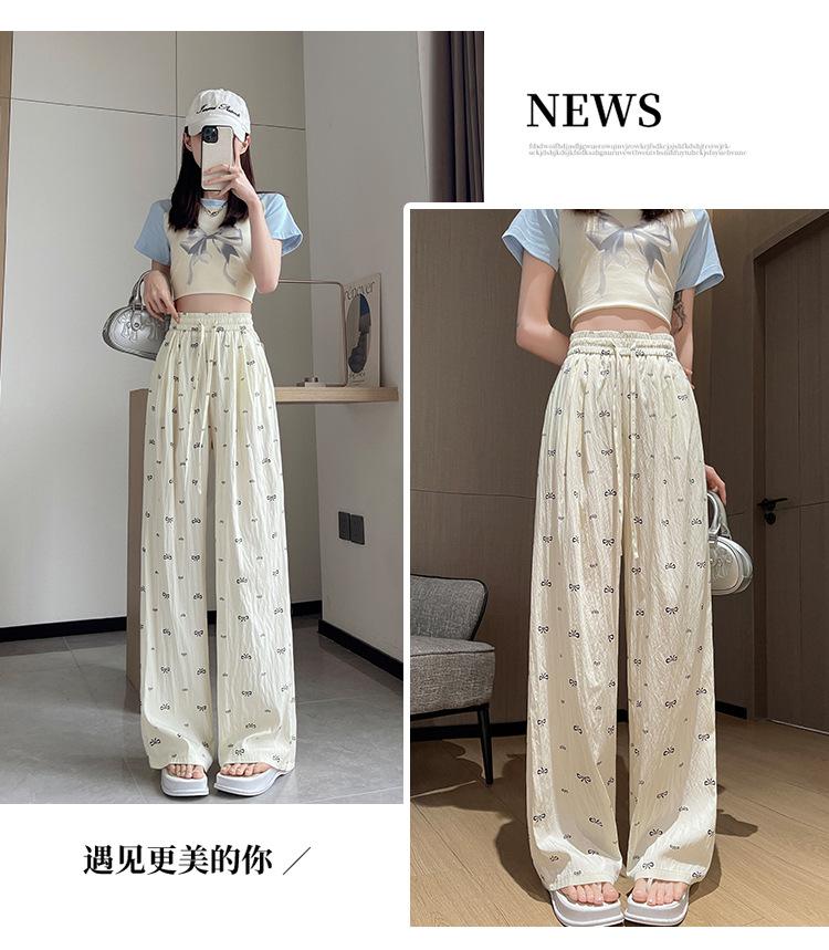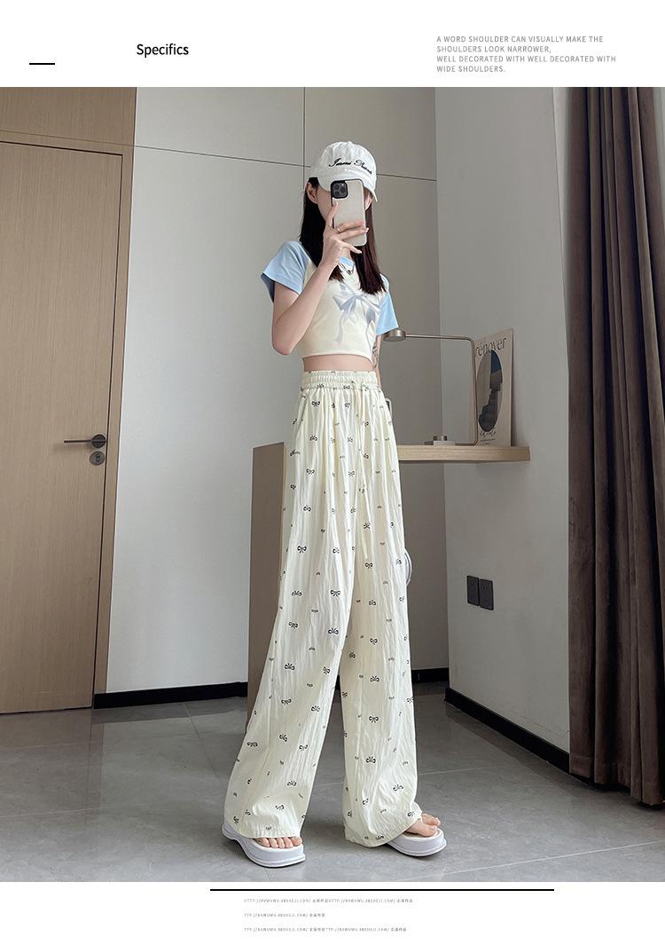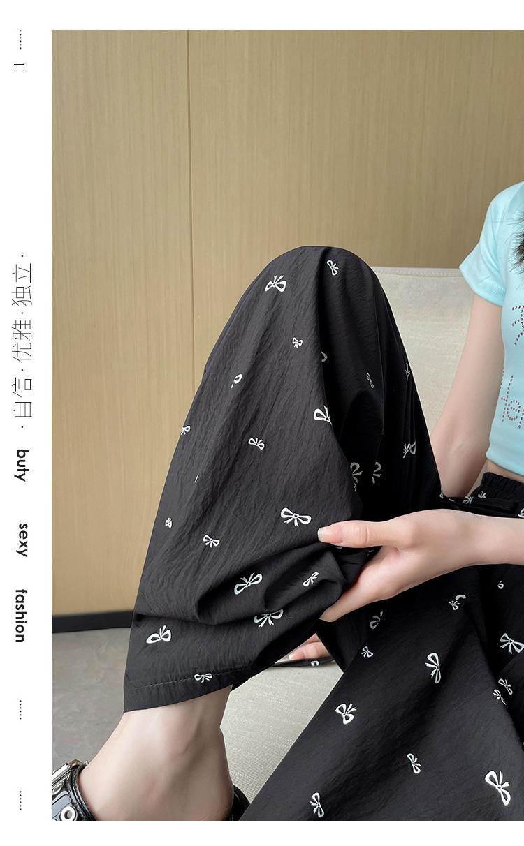 Pantalones de Pierna Ancha con Lazo Blanco Estilo Coreano para Mujer Verano Delgados Helados Cintura Alta Protección Solar Rectos