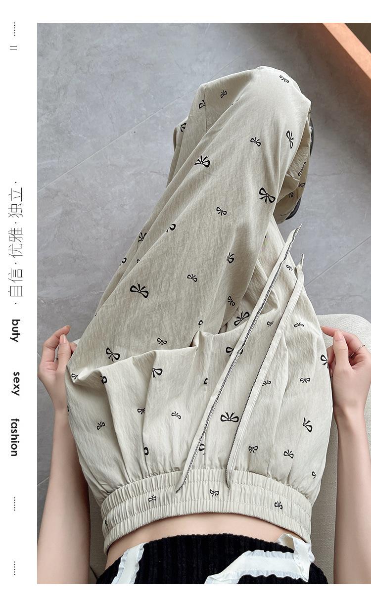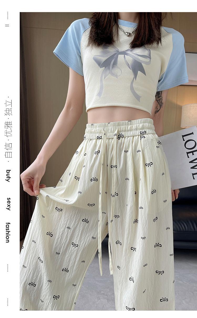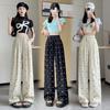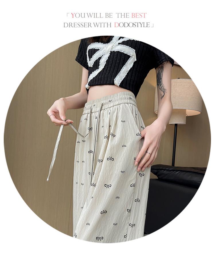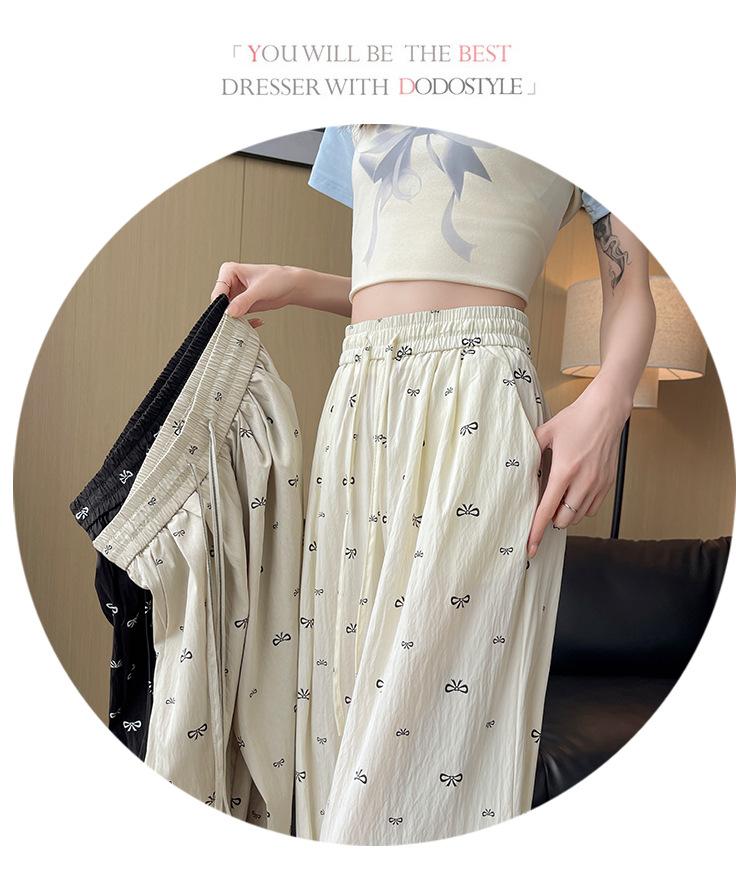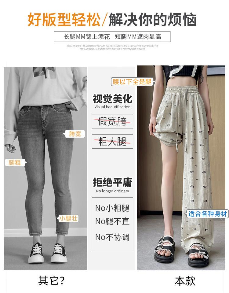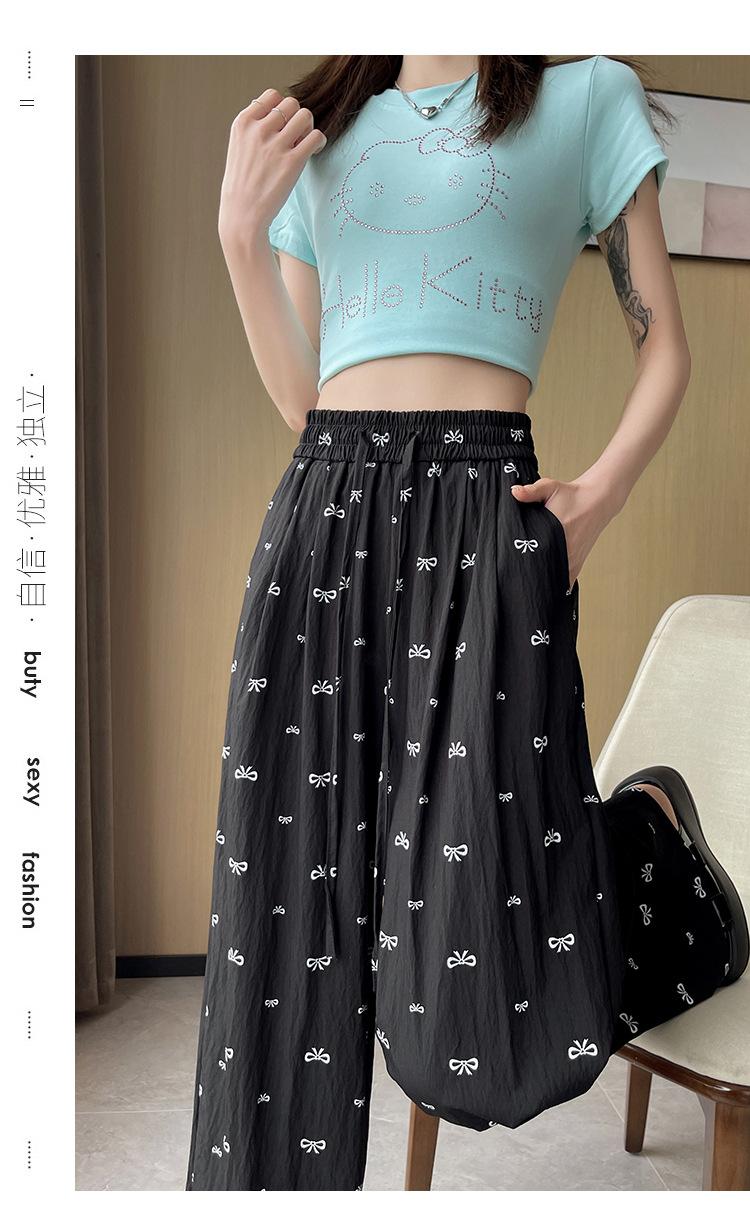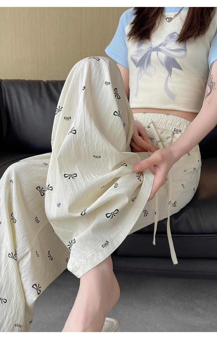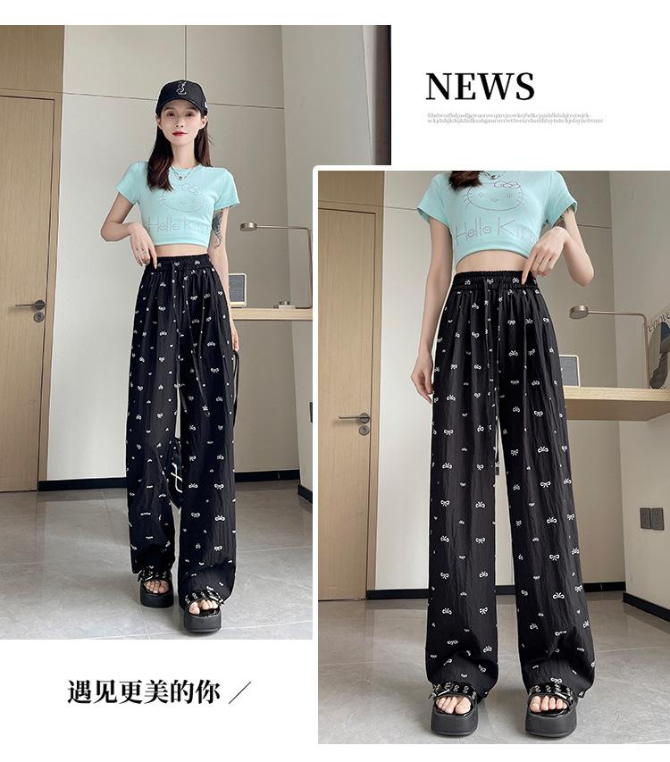 Pantalones de Pierna Ancha con Lazo Blanco Estilo Coreano para Mujer Verano Delgados Helados Cintura Alta Protección Solar Rectos
