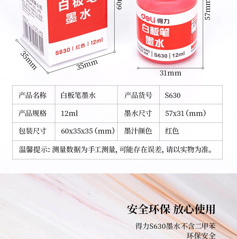 Plumón para pizarrón blanco Deli, pluma borrable que puede recargarse con tinta s630 rojo azul negro, recarga para plumón de pizarrón blanco