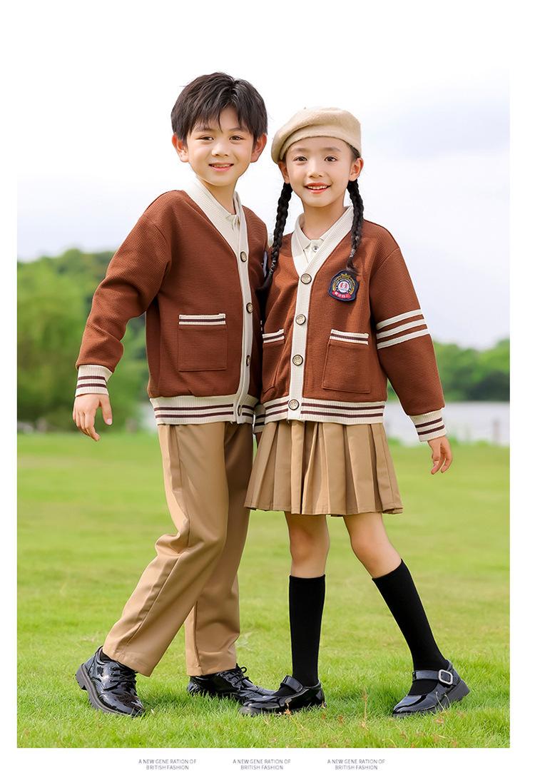 Uniforme escolar infantil estilo británico jardín de infancia ropa de jardín primavera y otoño tres piezas ropa de clase para estudiantes de primaria y secundaria traje deportivo de otoño