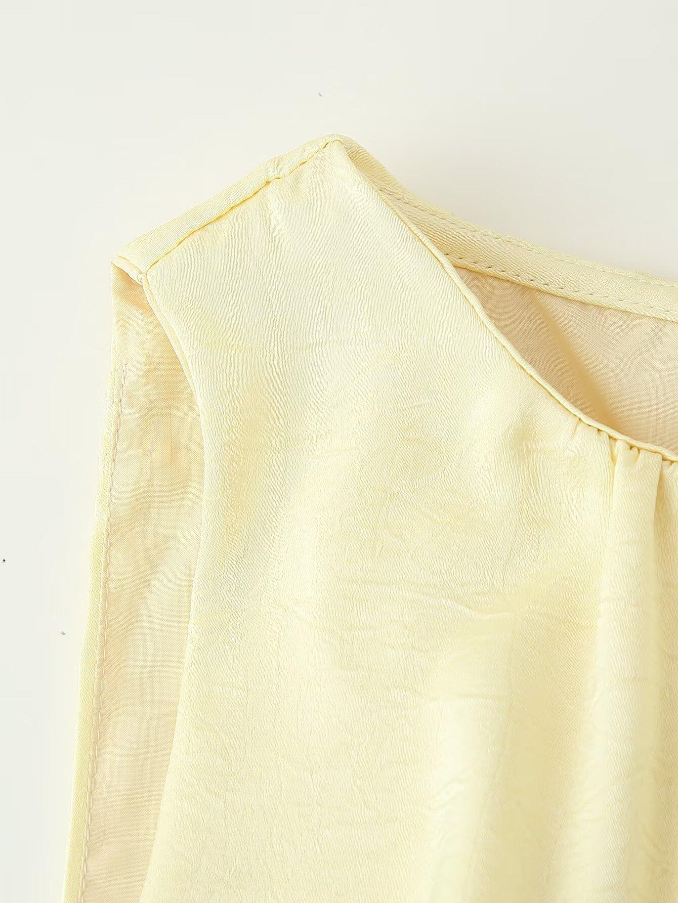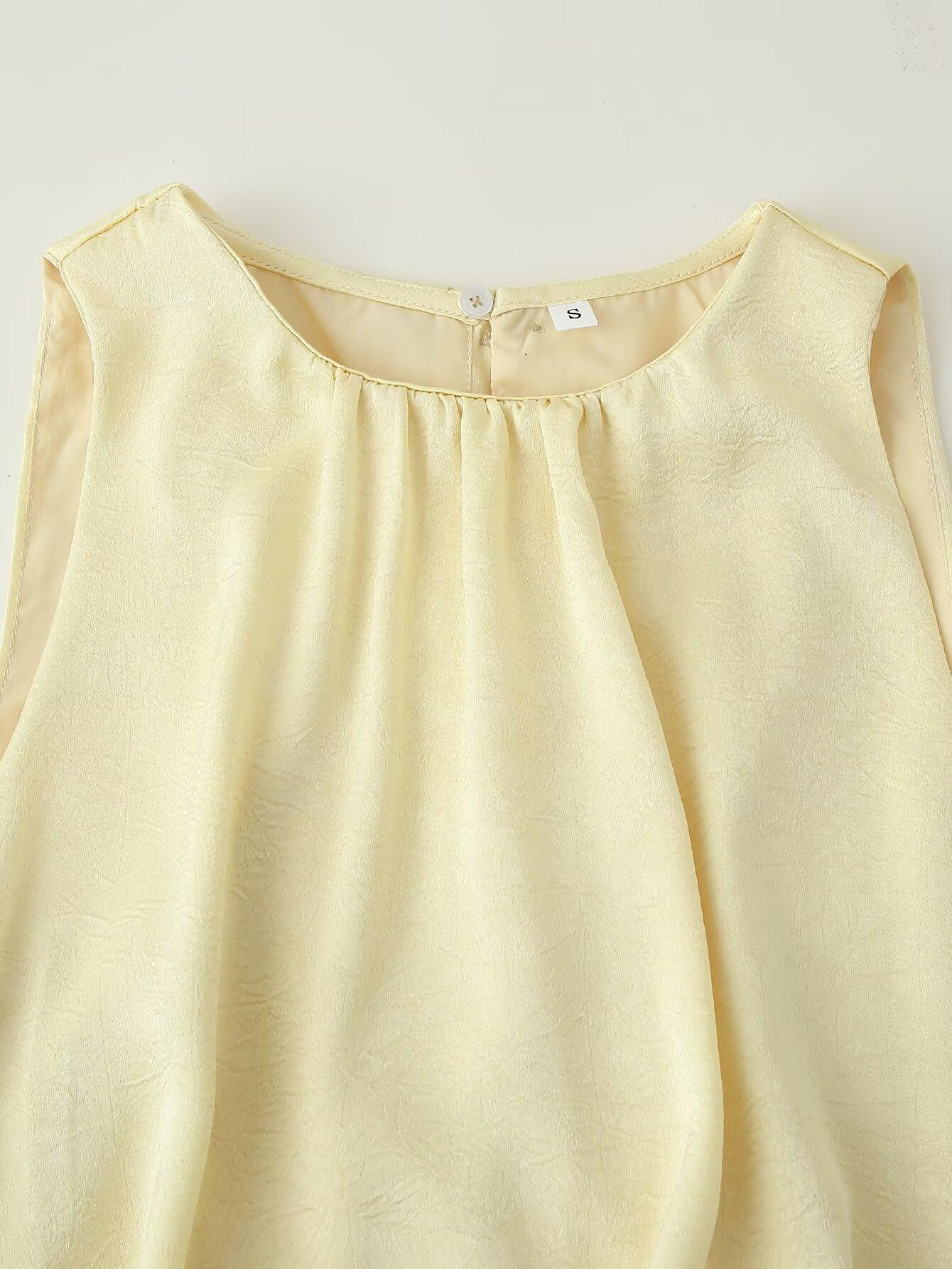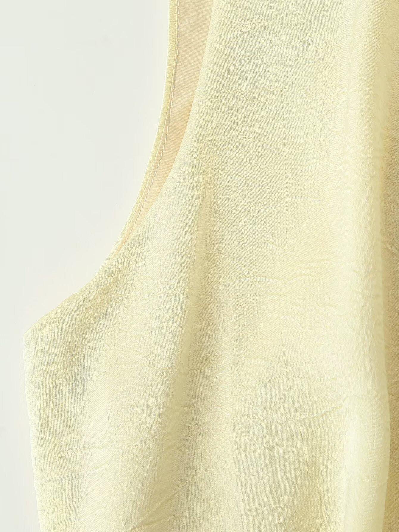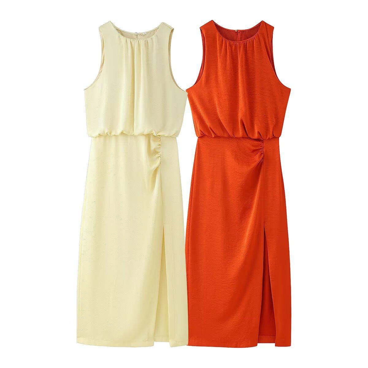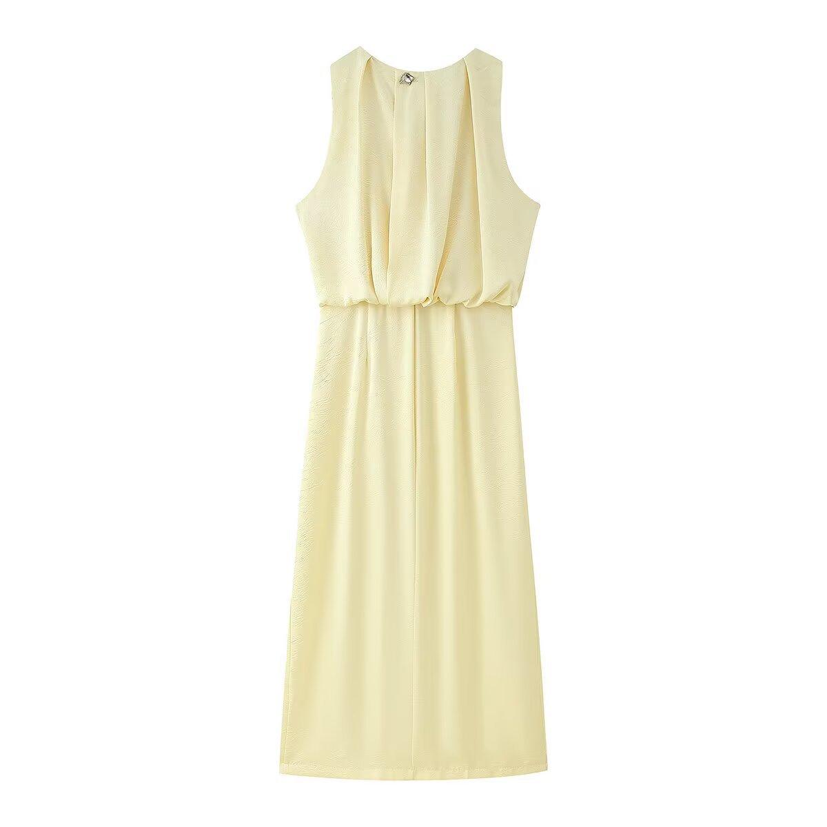 Vestido de Verano 2025 Nuevo Europeo y Americano Transfronterizo para Mujer Plisado Decorativo Textura Satén de Seda Sin Mangas W028 6951