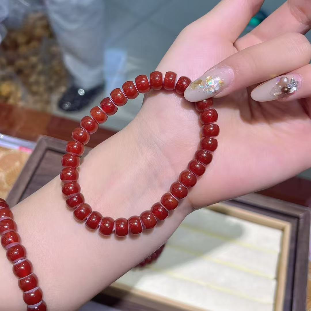 Pulsera Original de Ágata Roja Natural Corte Recto, Pulsera Elegante para Tocar Discos, Joyería de Moda Ty1671