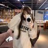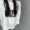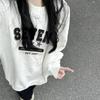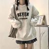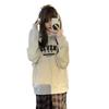Sudadera de Cuello Redondo con Letra Americana para Mujer Estudiante Holgada Otoño Invierno Forro Polar Engrosada Versátil Pareja Talla Extra Top Chaqueta Marea