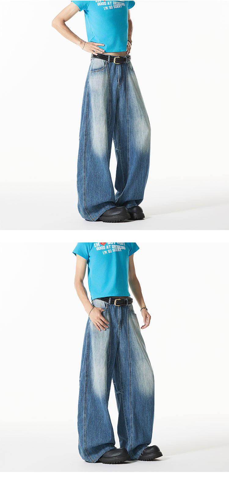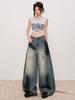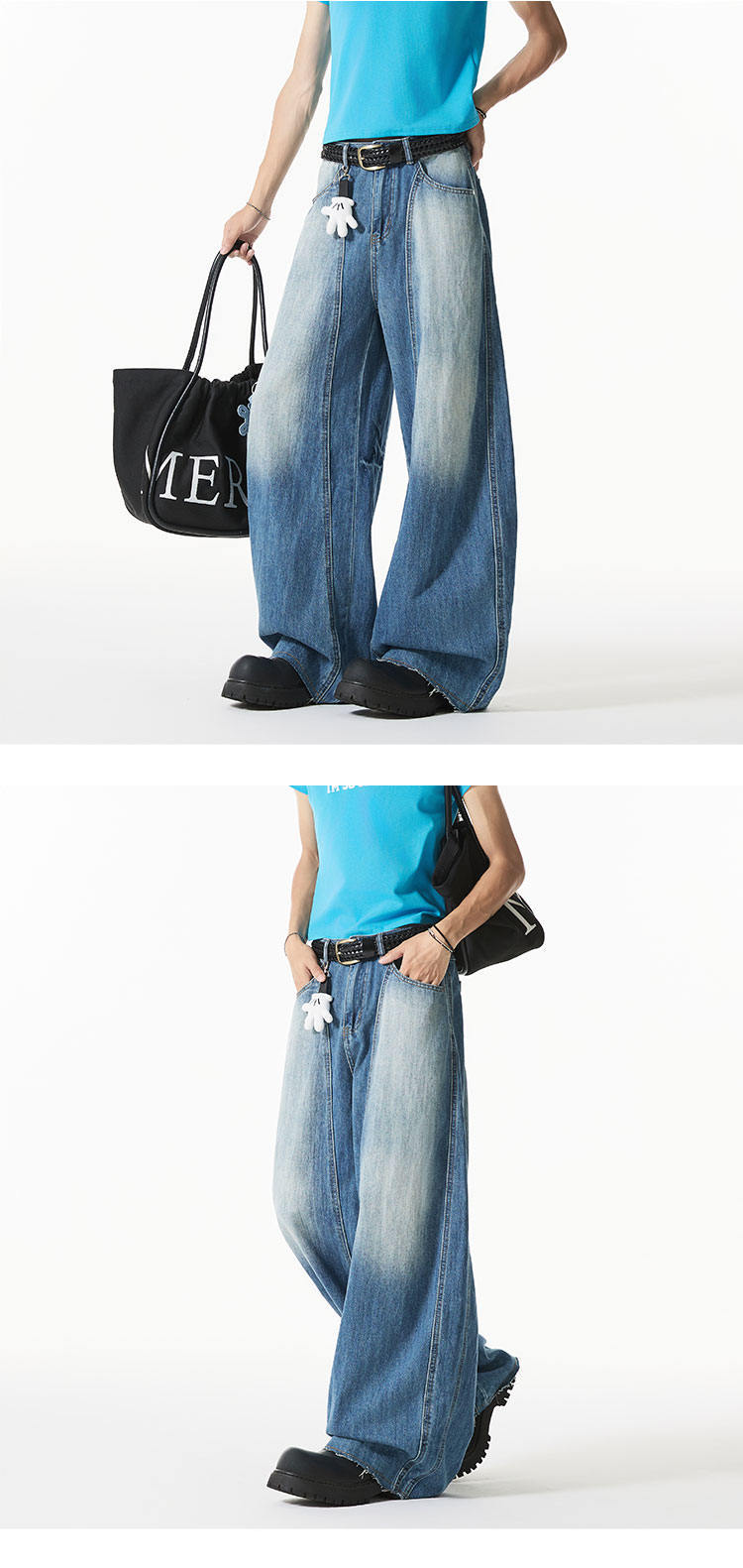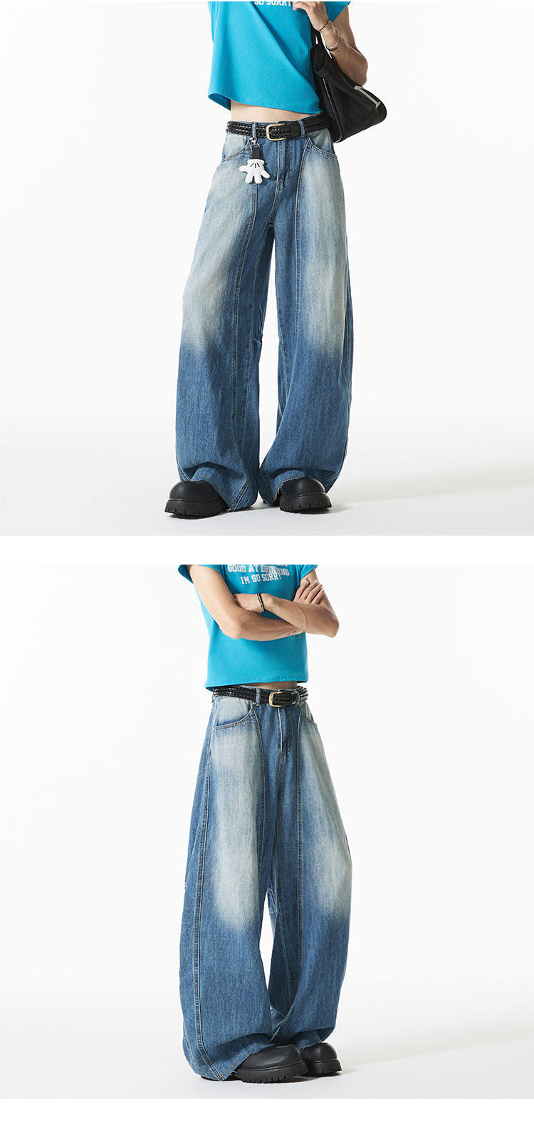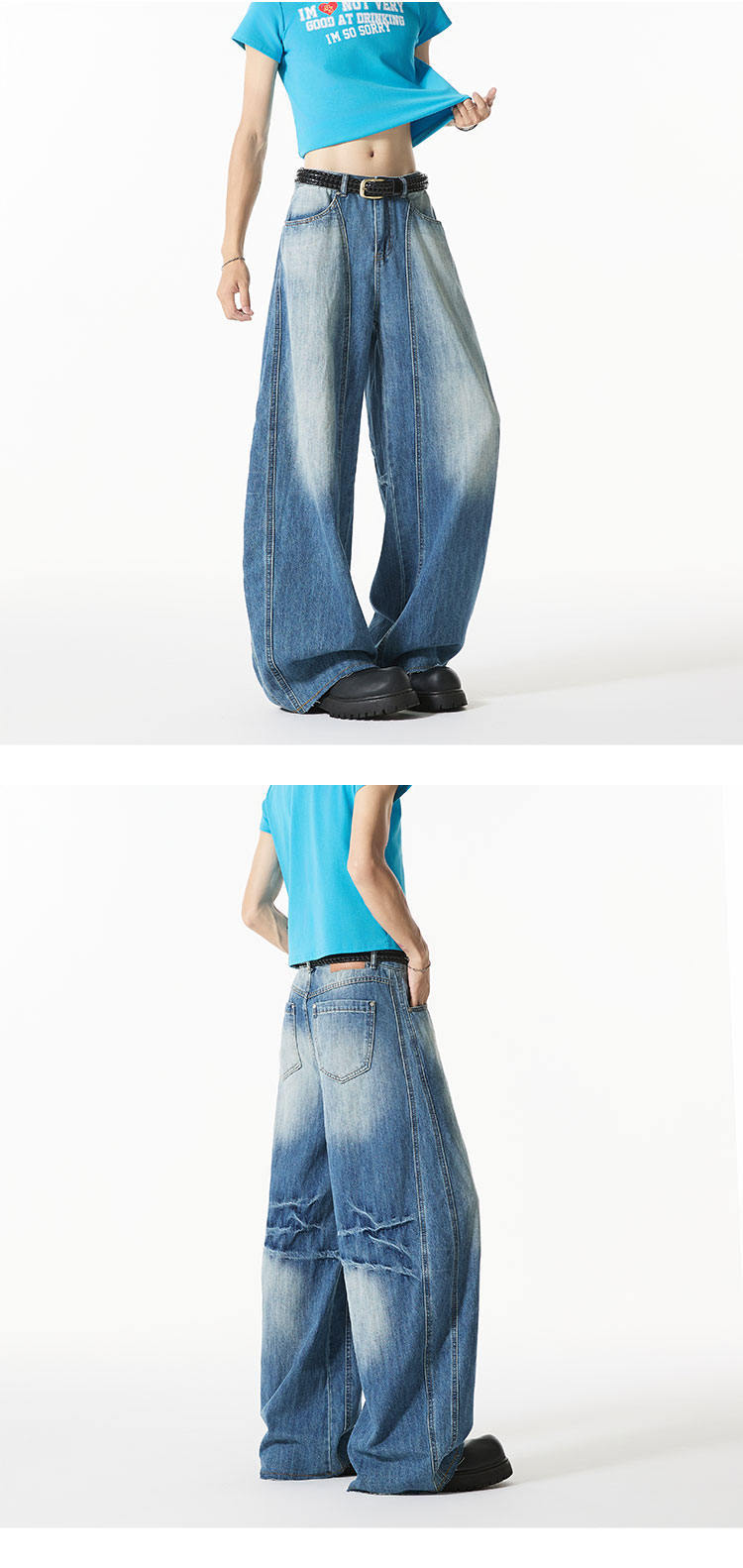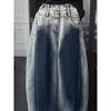 2025 Verano Nuevo Americano Retro Lavado Degradado Diseño Trendy Pierna Ancha Jeans Talla Extra Pantalones Largos Marea