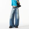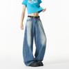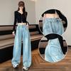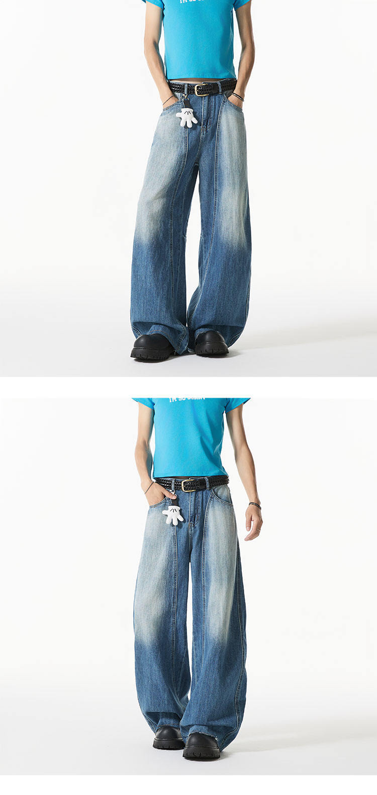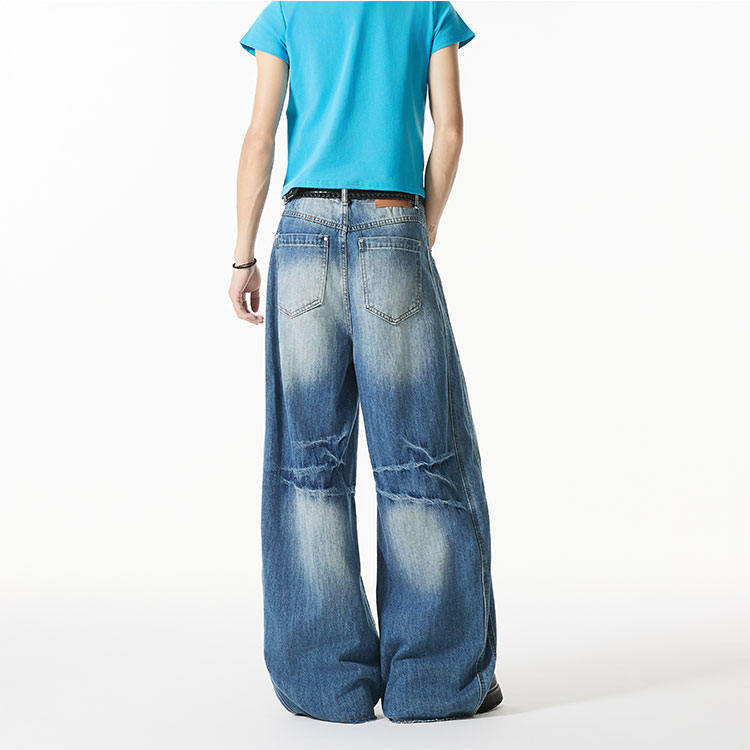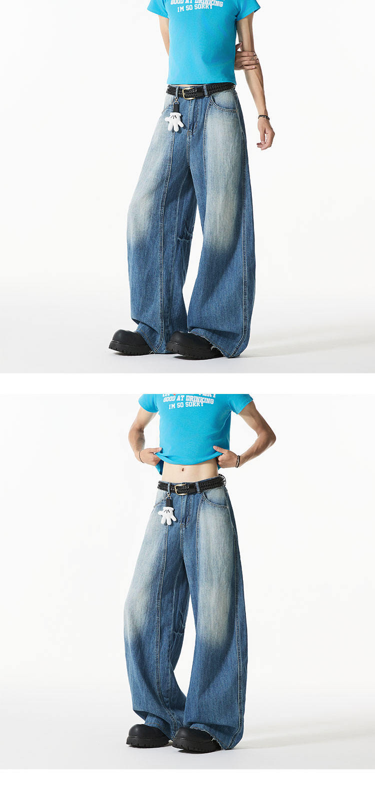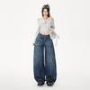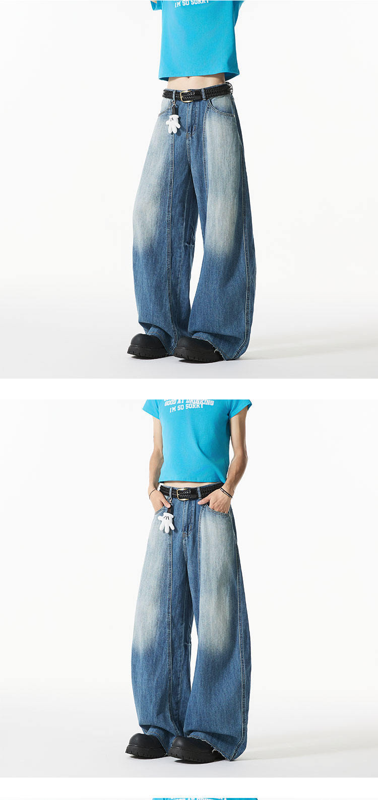 2025 Verano Nuevo Americano Retro Lavado Degradado Diseño Trendy Pierna Ancha Jeans Talla Extra Pantalones Largos Marea