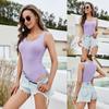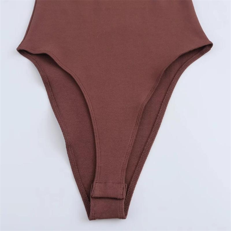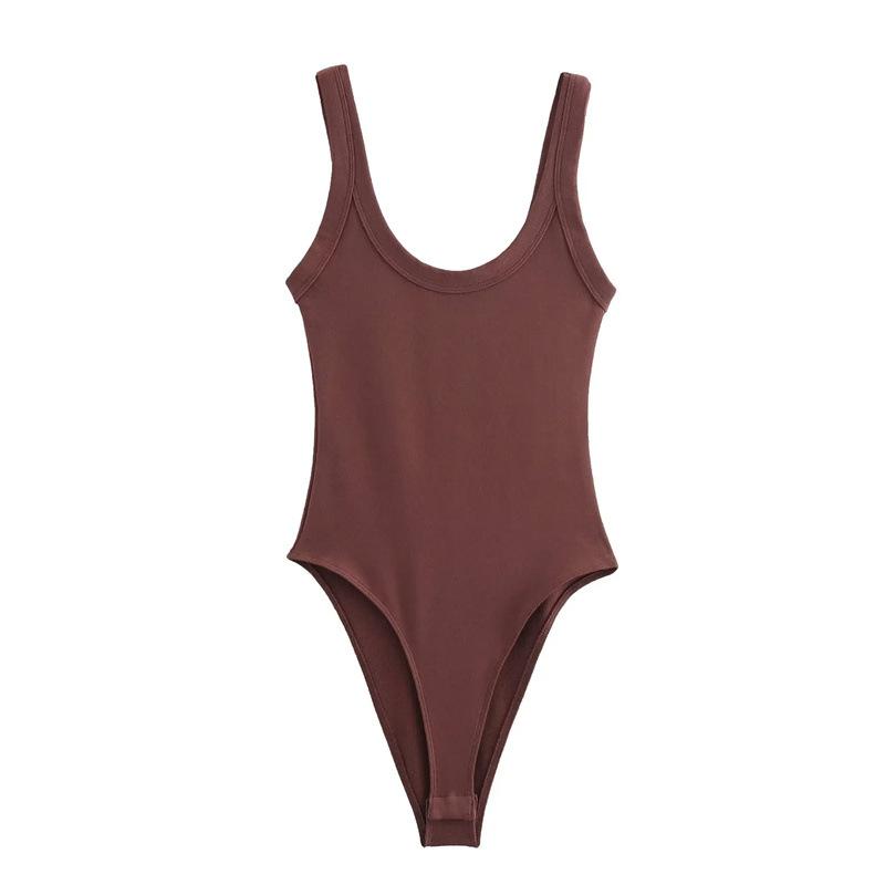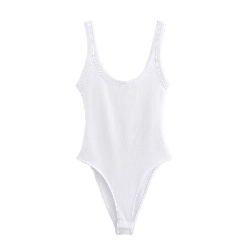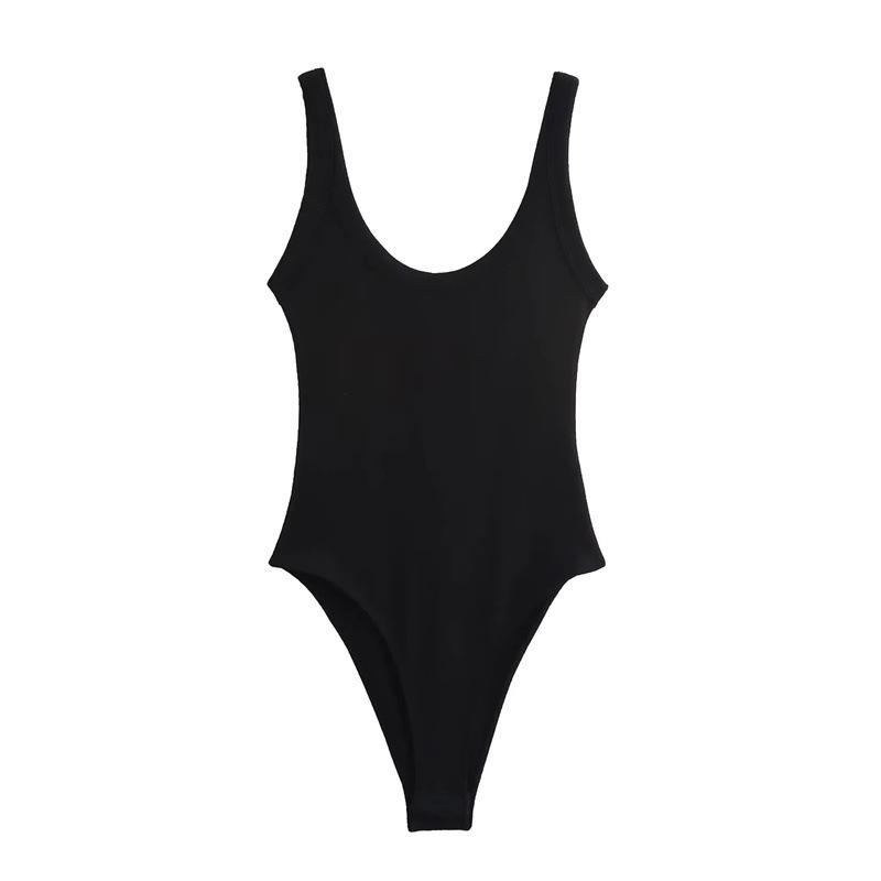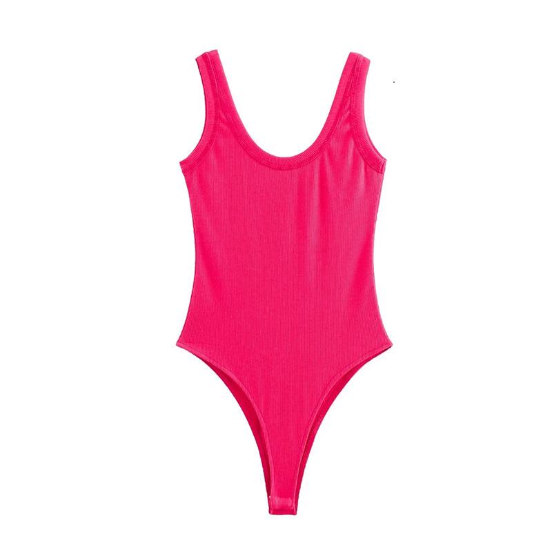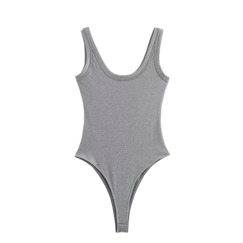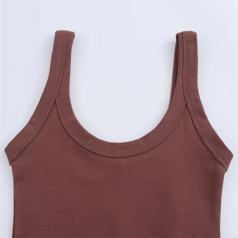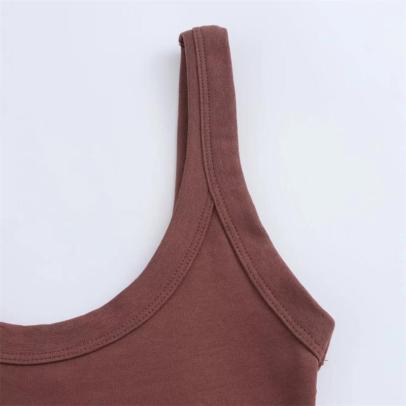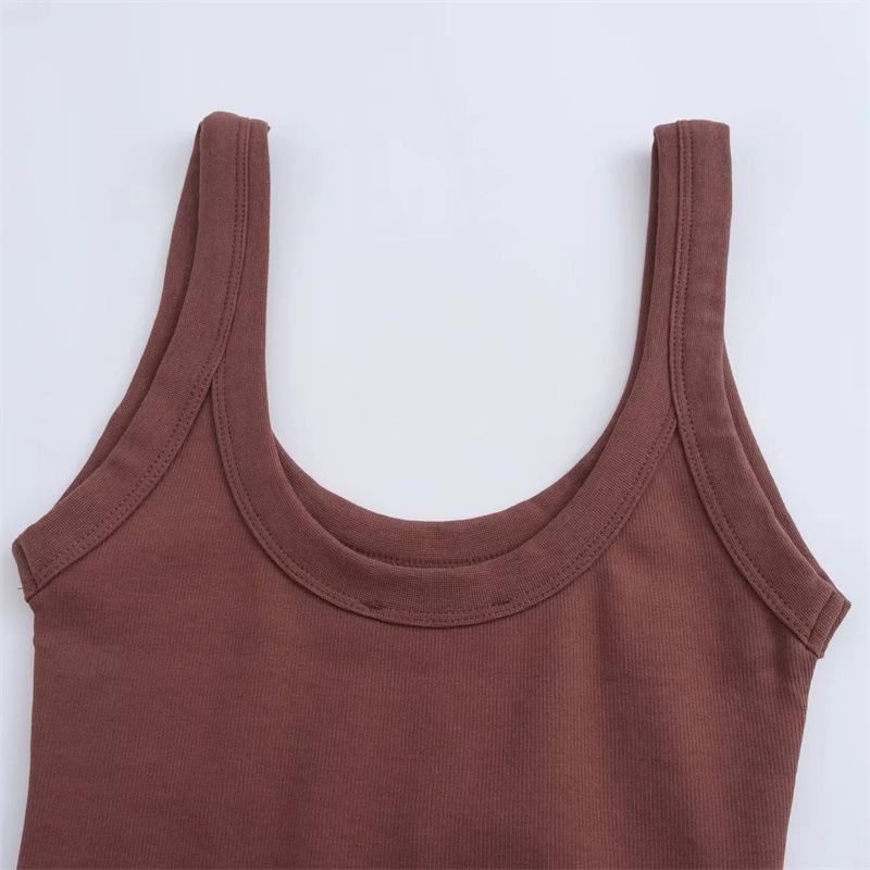 Mono europeo y americano de nicho, sexy, de deseo puro, con doble cuello redondo acanalado, cintura alta, parte inferior ajustada, chaleco sexy para mujer