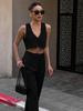 2025 Primavera Nuevo Estilo Europeo y Americano Top sin Mangas con Solapa + Culottes Traje de Moda para el Trabajo para Mujer