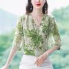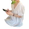 Verano 2025 Camisa Holgada de Manga Corta para Combinar con Todo para Mujer Camisa de Manga Abullonada Blanca con Diseño Sensual Top de Encaje Calado