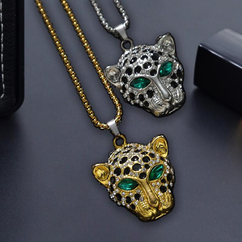 Europa y Estados Unidos joyería transfronteriza al por mayor animal bosque verde ojo cabeza de tigre collar lleno de diamantes amantes moda personalidad