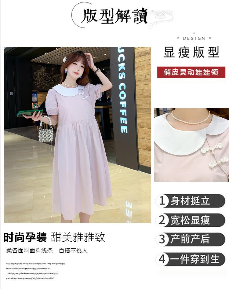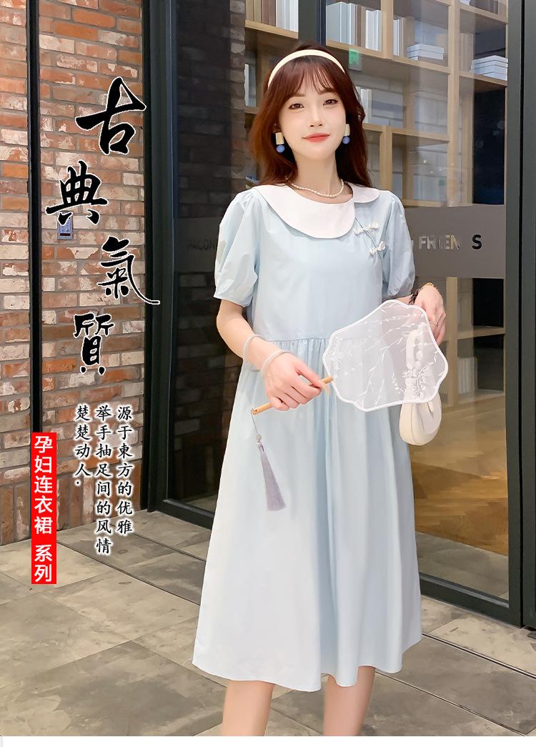 Maternidad 2024 Verano Nuevo Dulce Moda Reductor de Edad Vestido de Muñeca Nuevo Guofeng Suelto Talla Grande Vestido para Mujeres Embarazadas