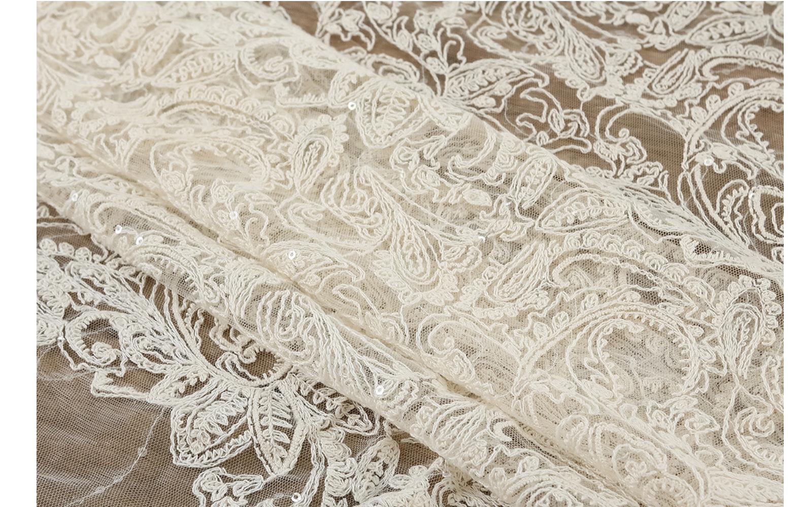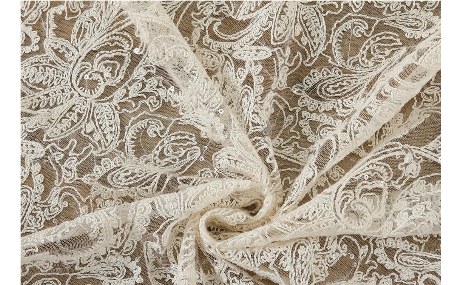 Fabricante Venta al por Mayor Encaje de Poliéster Aplicado Lentejuelas Bordado Tela Estilo Europeo y Americano Malla Vestido Trenzado Lentejuelas Tela