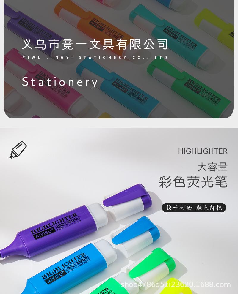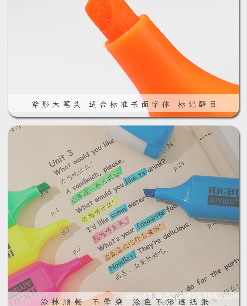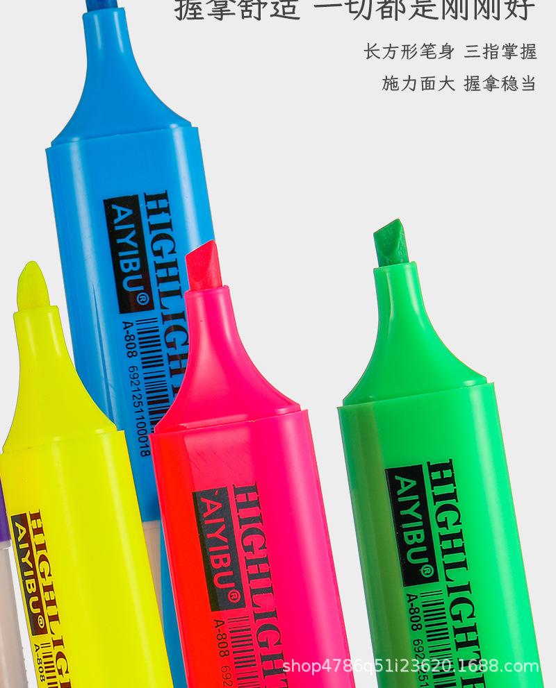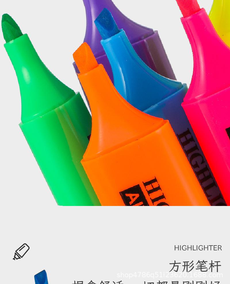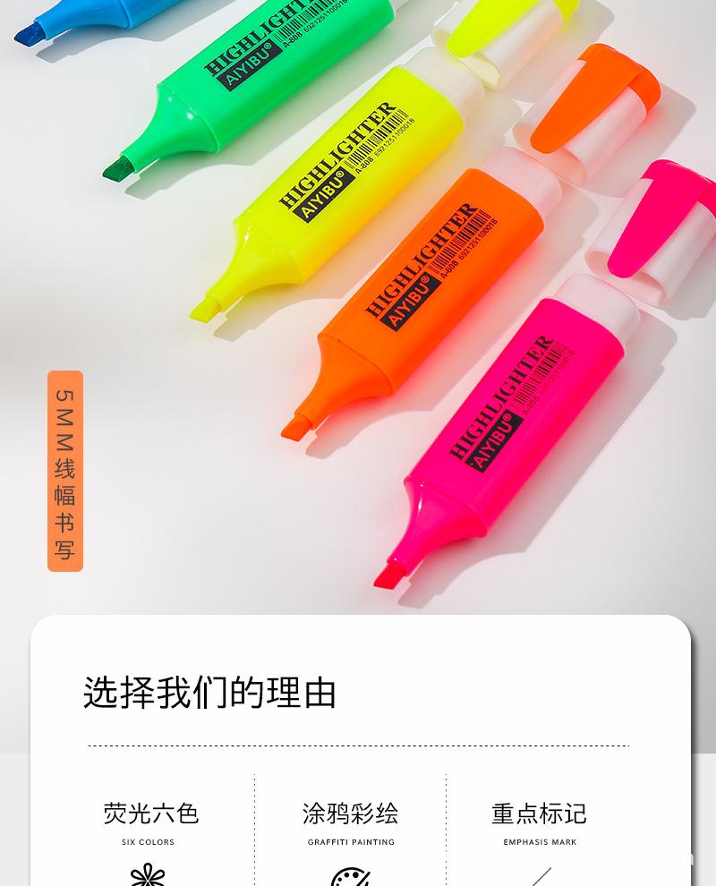 Pluma fluorescente de un solo cabezal, marcador de gran venta transfronterizo, marcador resaltador de color, juego de 6 colores, color de mano de gran capacidad