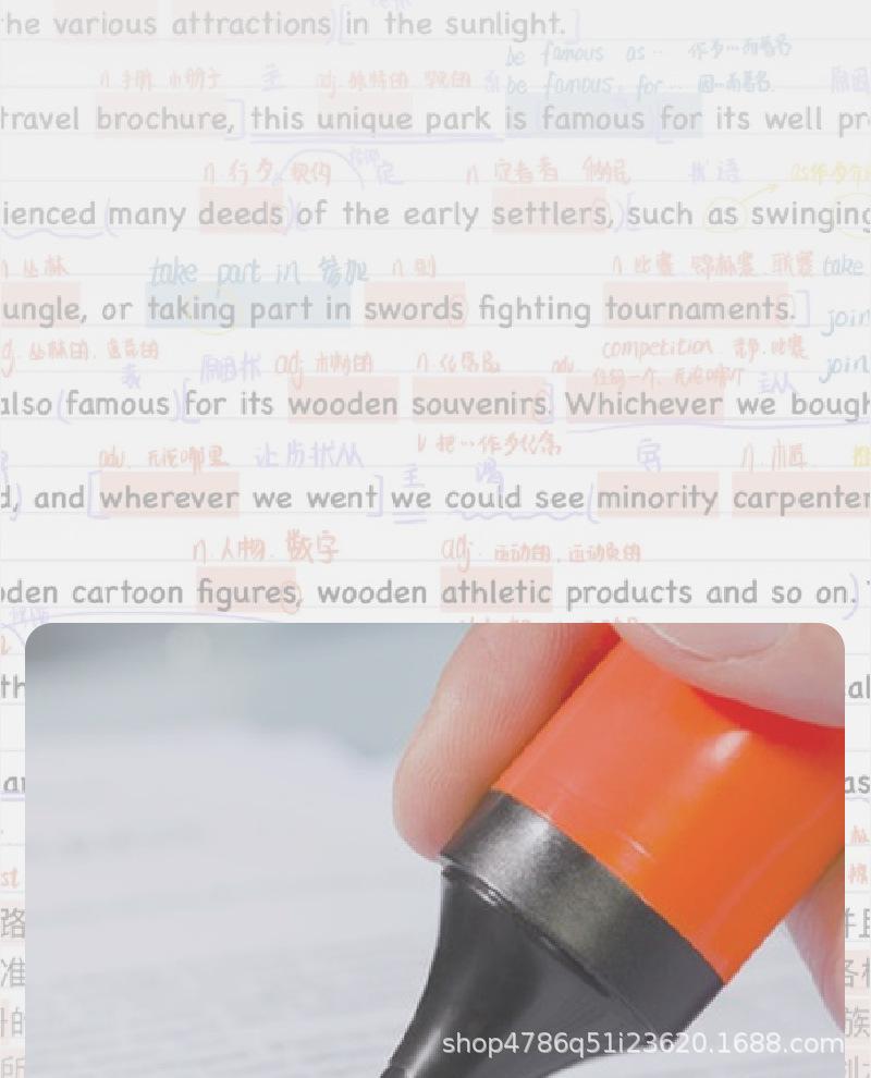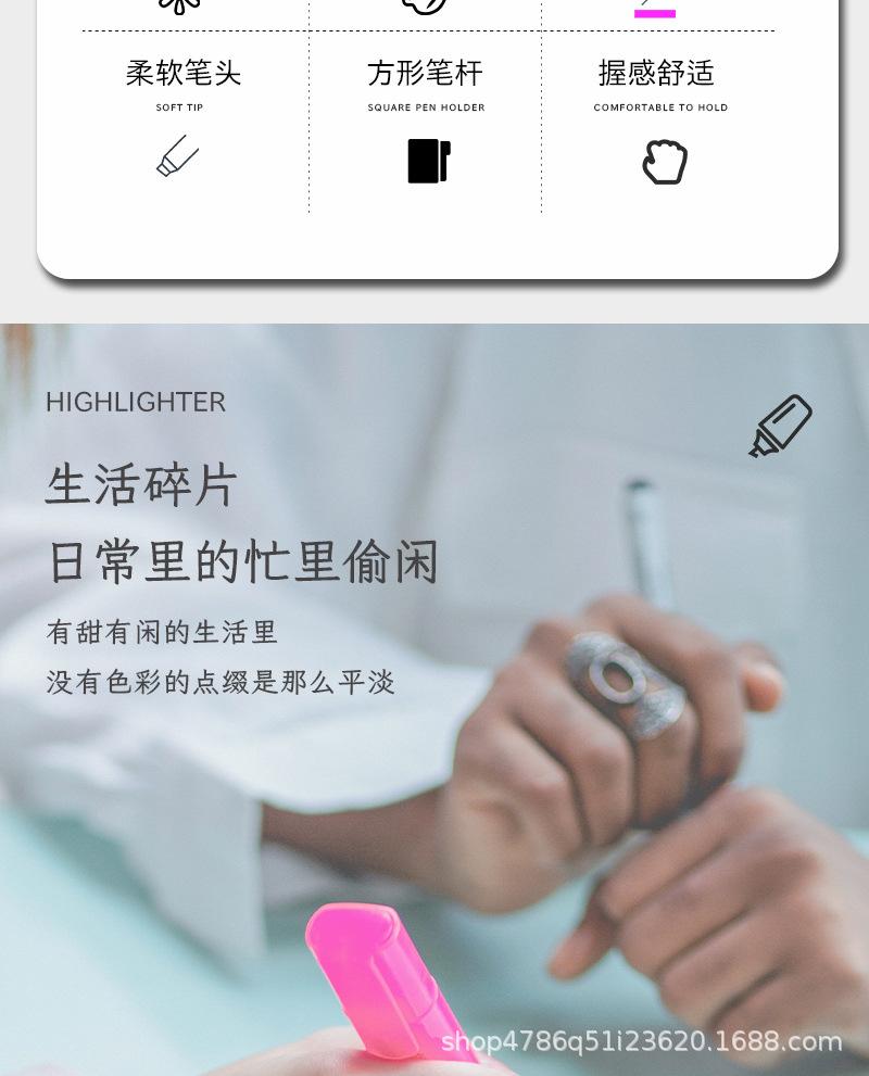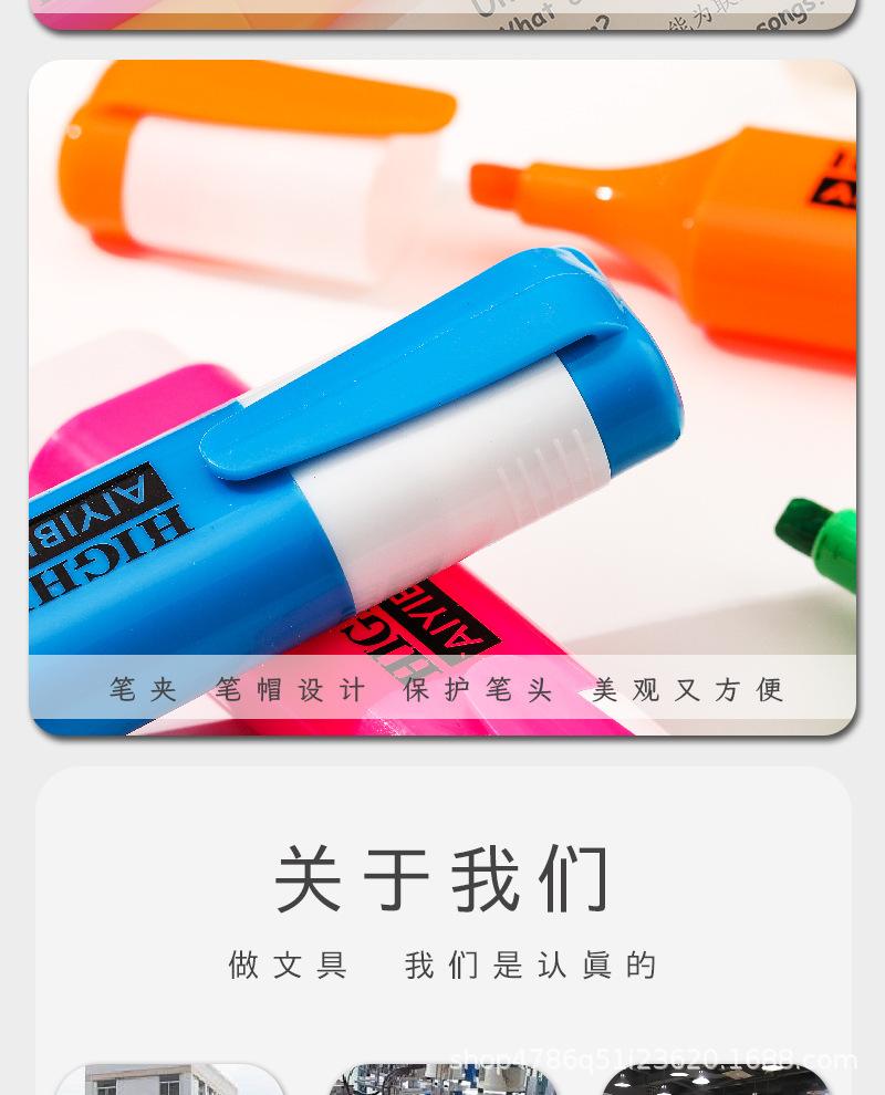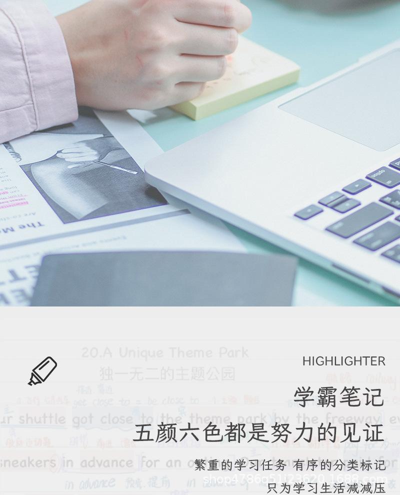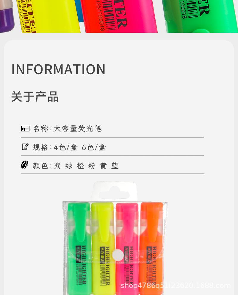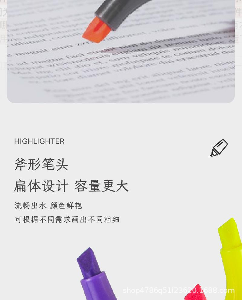 Pluma fluorescente de un solo cabezal, marcador de gran venta transfronterizo, marcador resaltador de color, juego de 6 colores, color de mano de gran capacidad